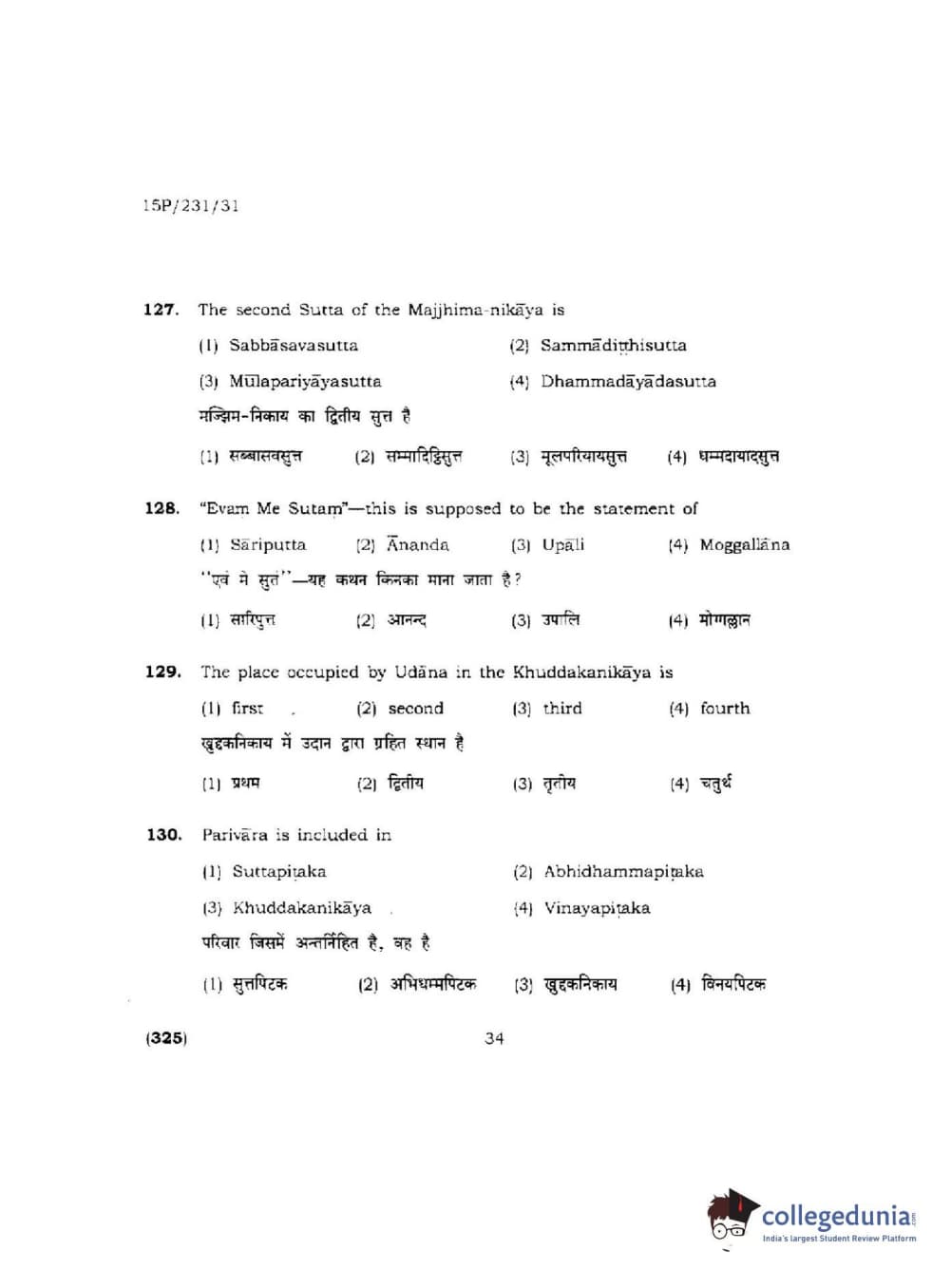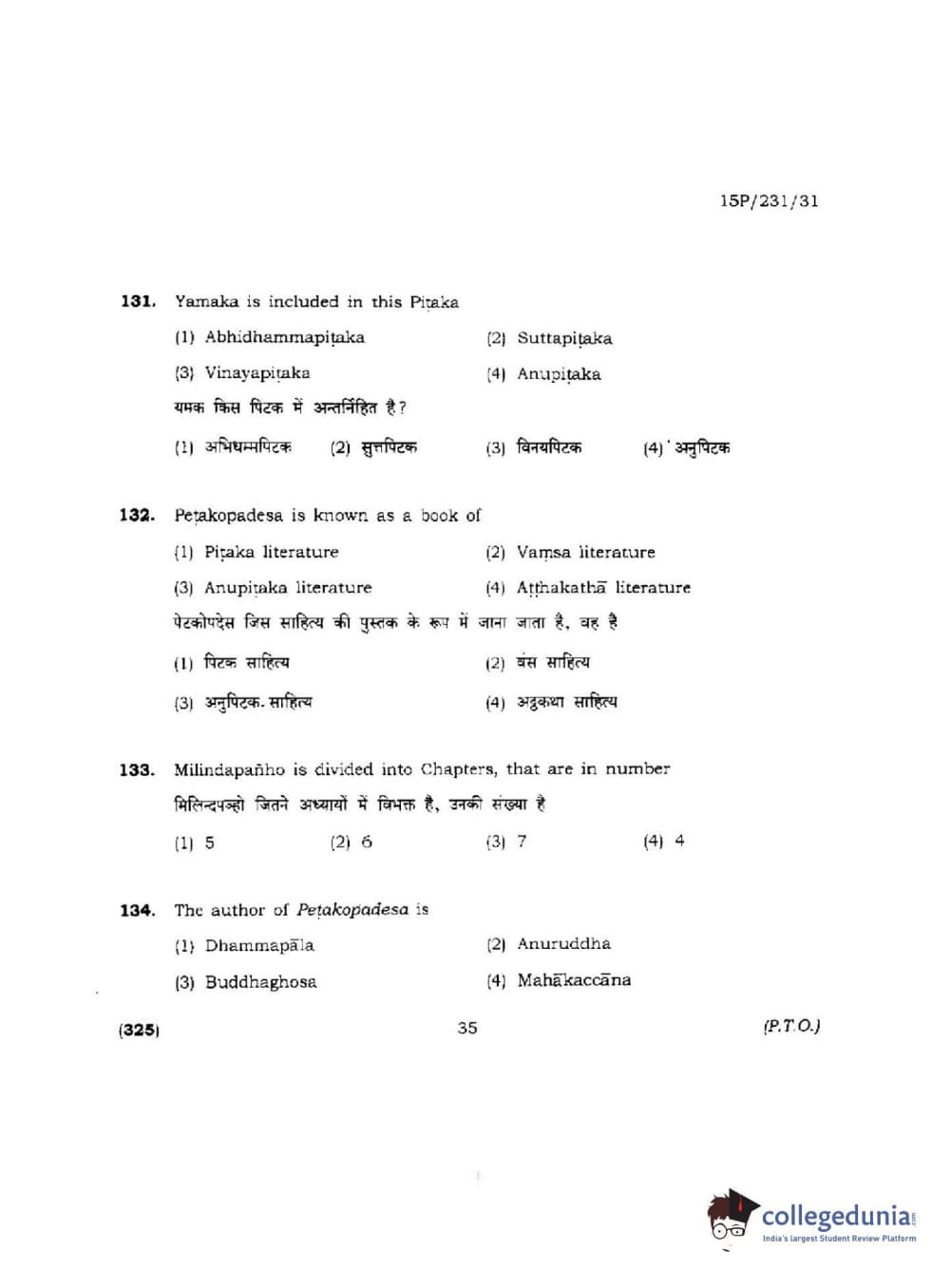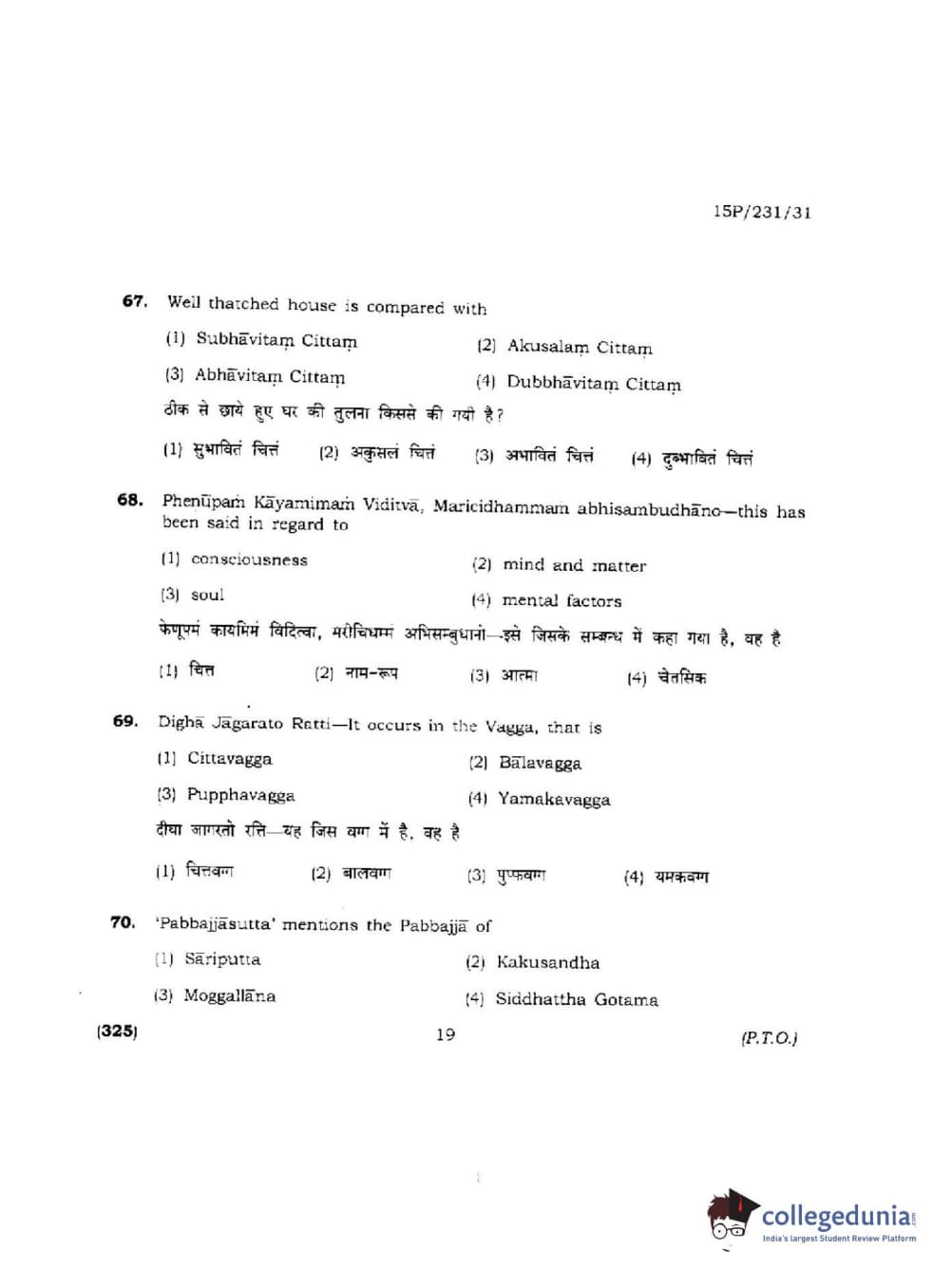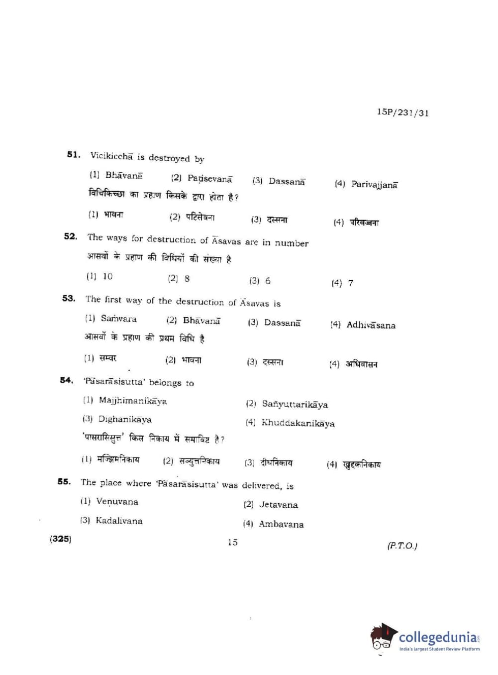 BHU PET 2015 M.A.Pali Question paper with answer key pdf is available for download. The exam was successfully organized by Banaras Hindu University (BHU). The question paper comprised a total of 150 questions.