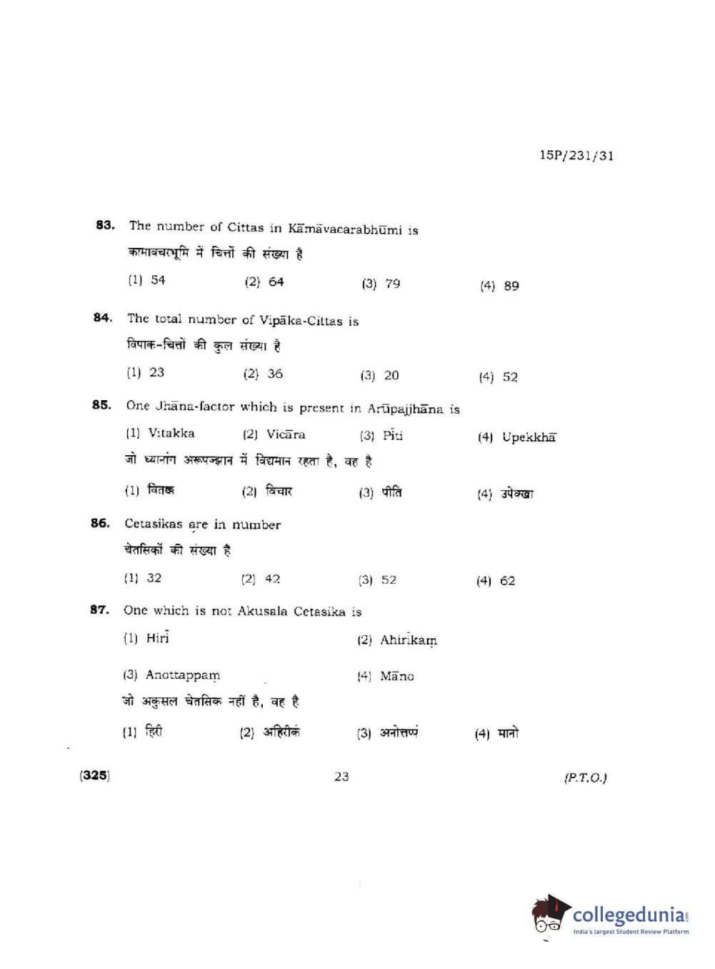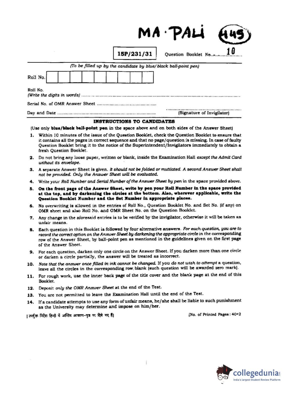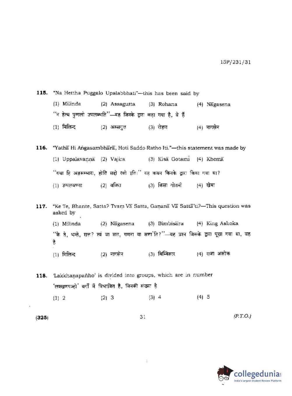 BHU PET 2015 M.A.Pali Question paper with answer key pdf is available for download. The exam was successfully organized by Banaras Hindu University (BHU). The question paper comprised a total of 150 questions.