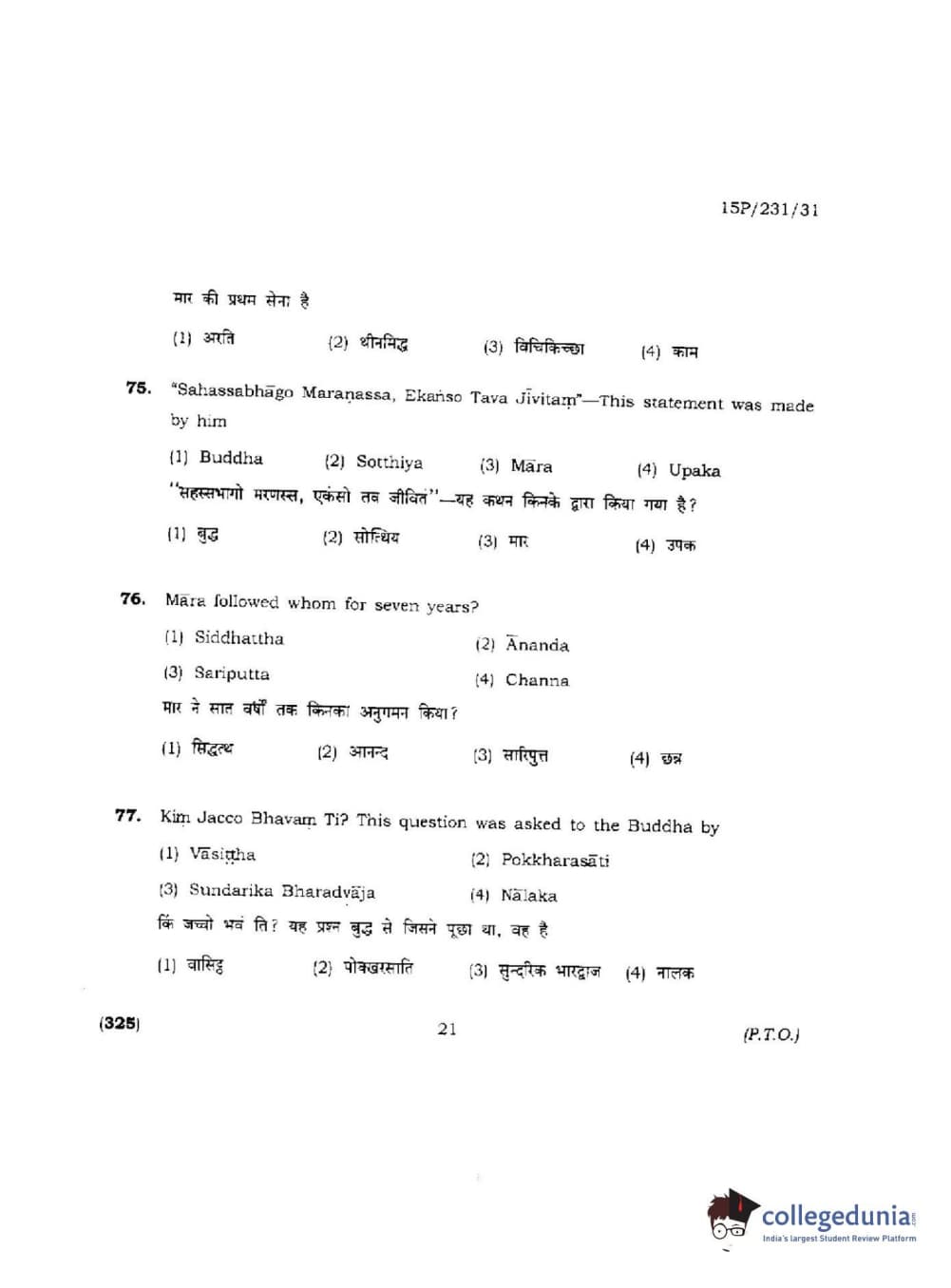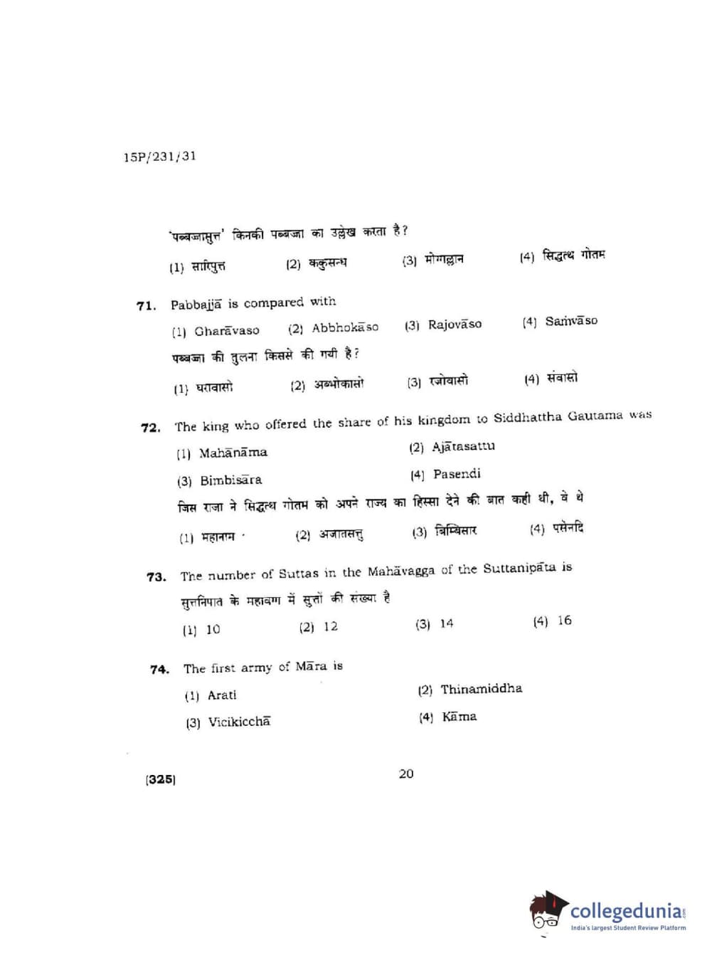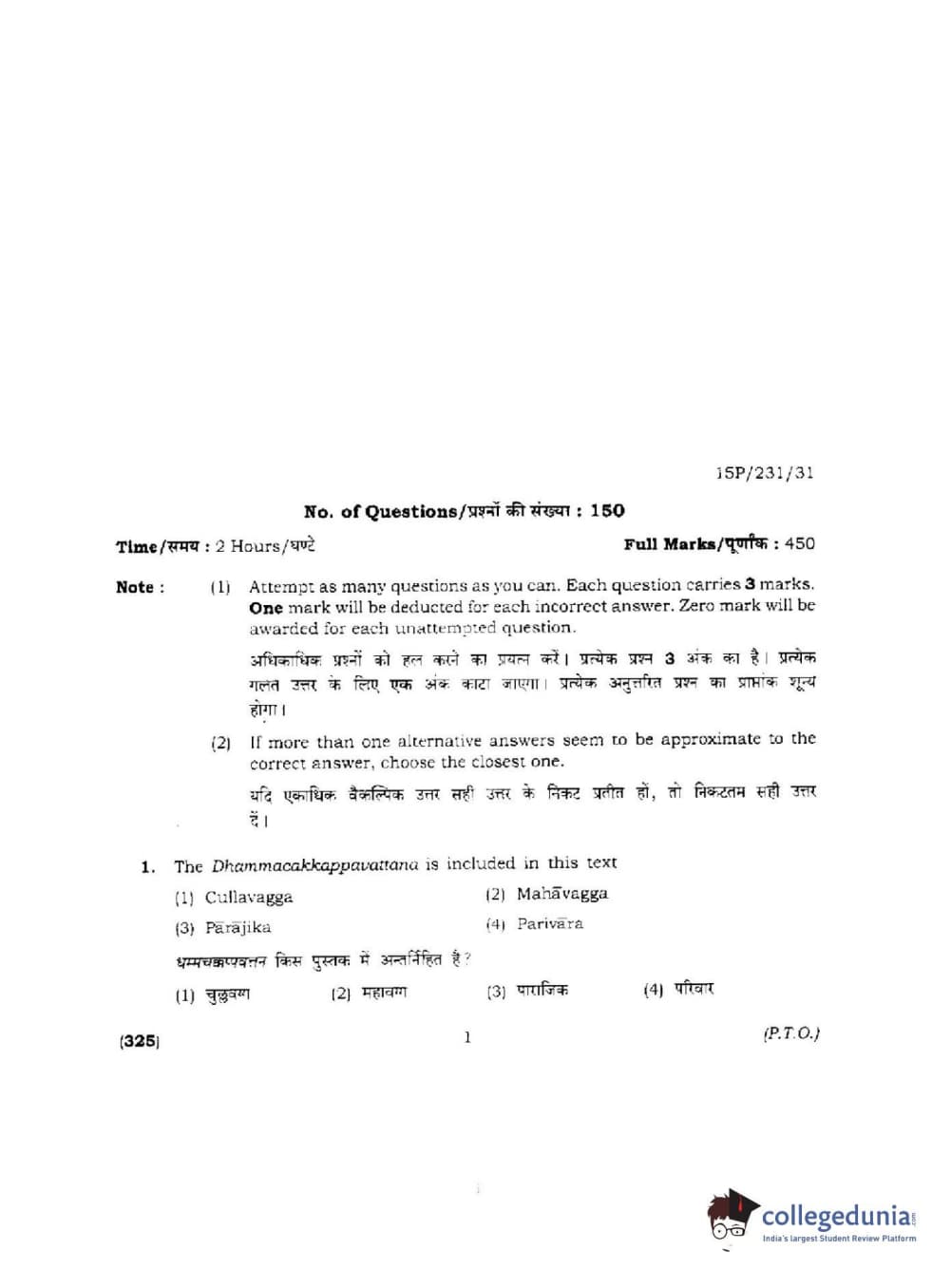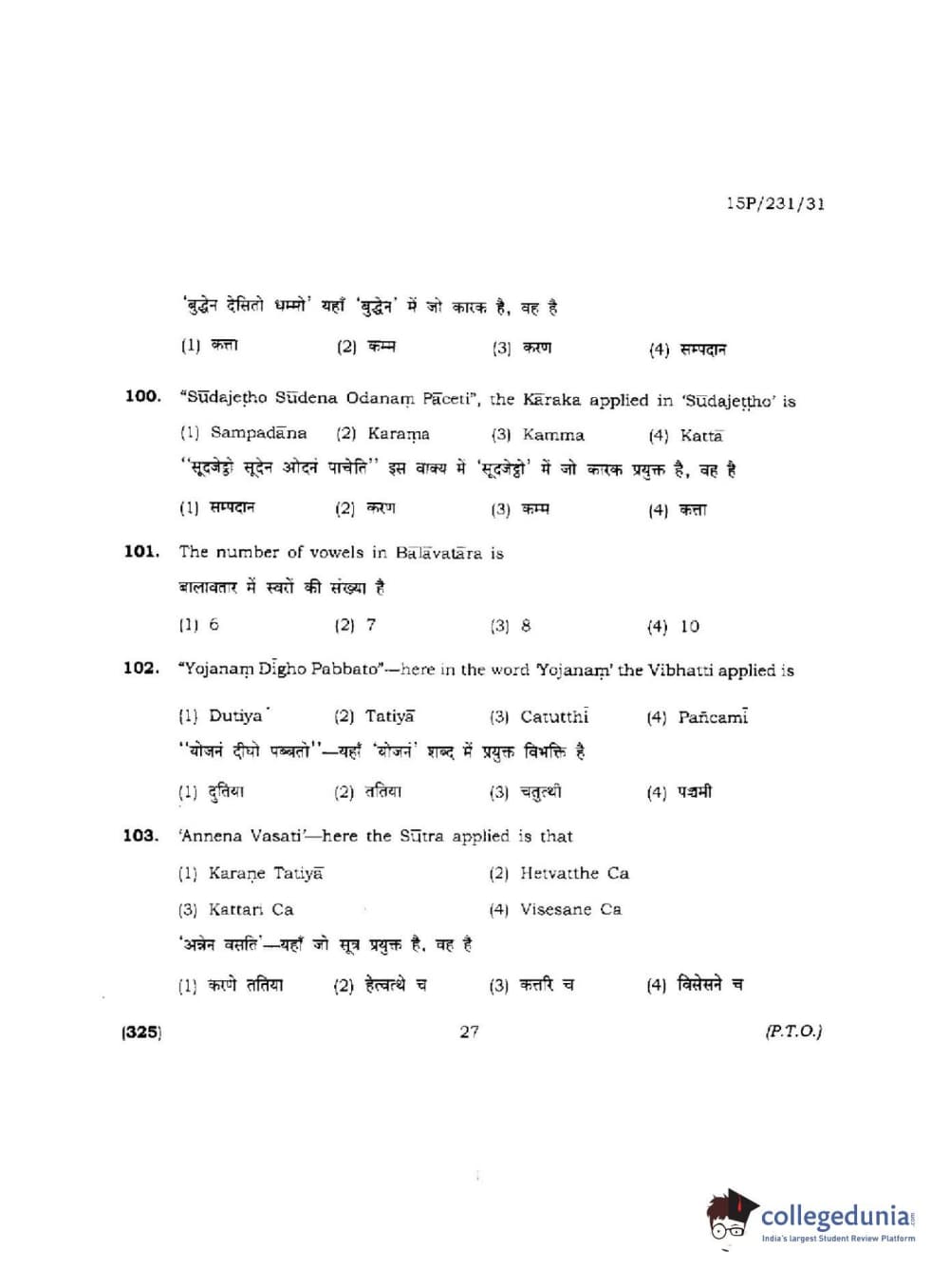 BHU PET 2015 M.A.Pali Question paper with answer key pdf is available for download. The exam was successfully organized by Banaras Hindu University (BHU). The question paper comprised a total of 150 questions.