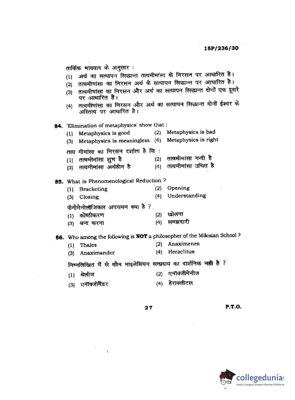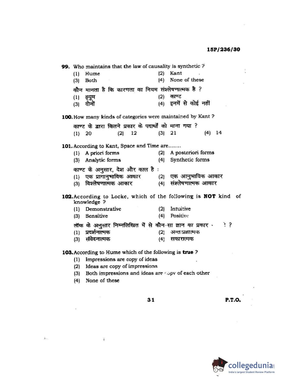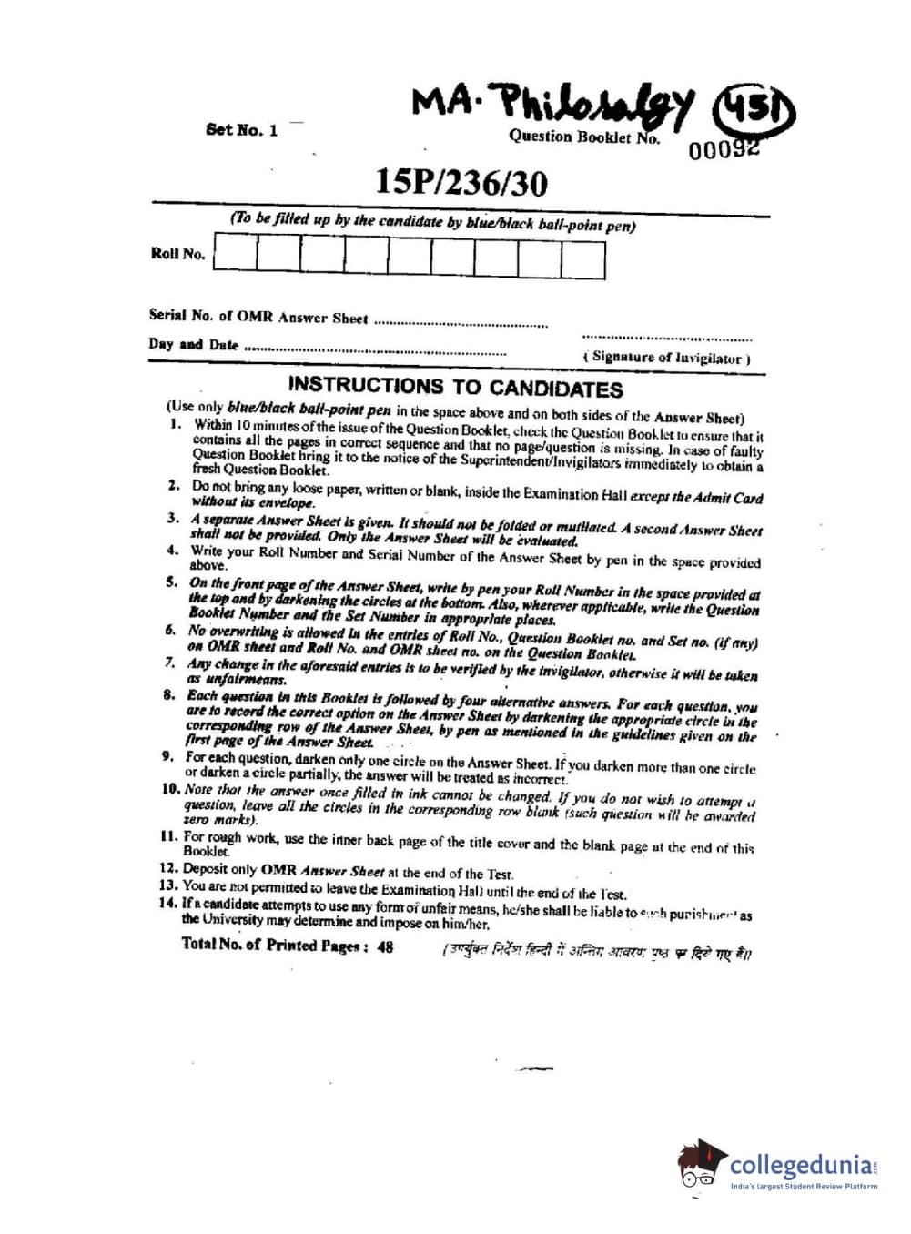 BHU PET 2015 M.A.-Philosophy Question paper with answer key pdf is available for download. The exam was successfully organized by Banaras Hindu University (BHU). The question paper comprised a total of 150 questions.