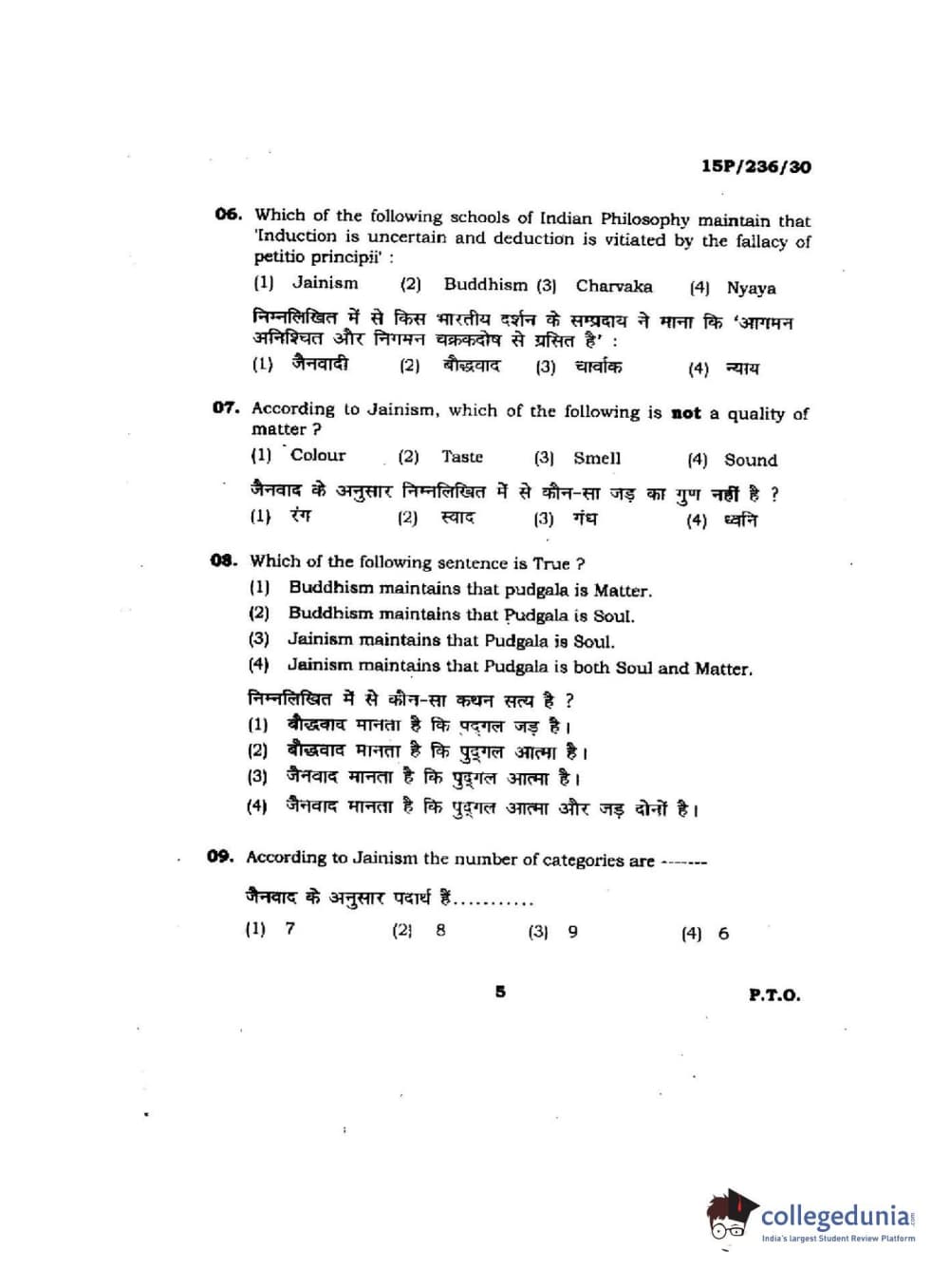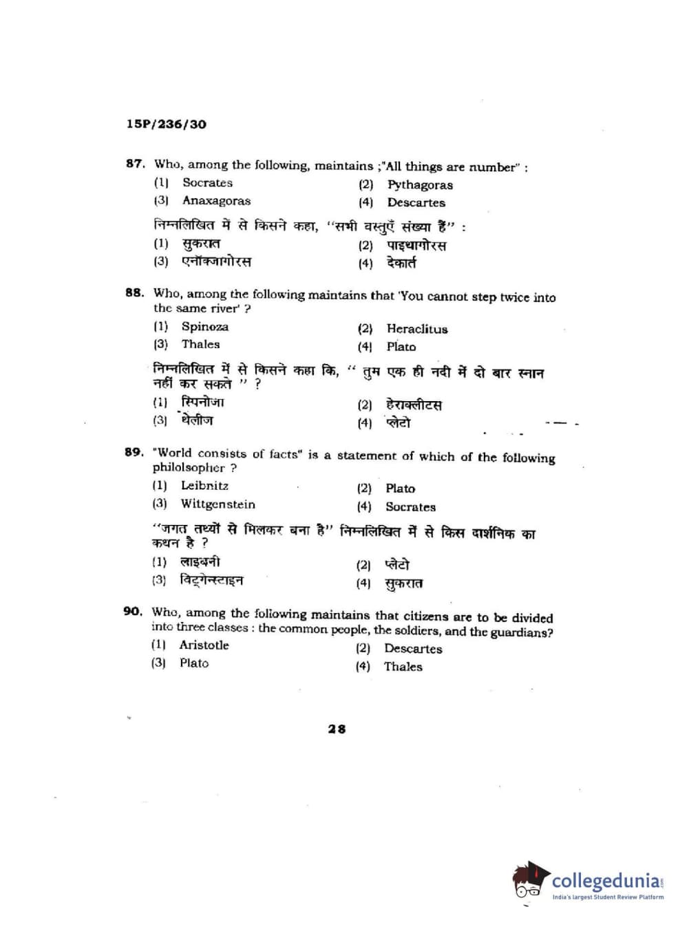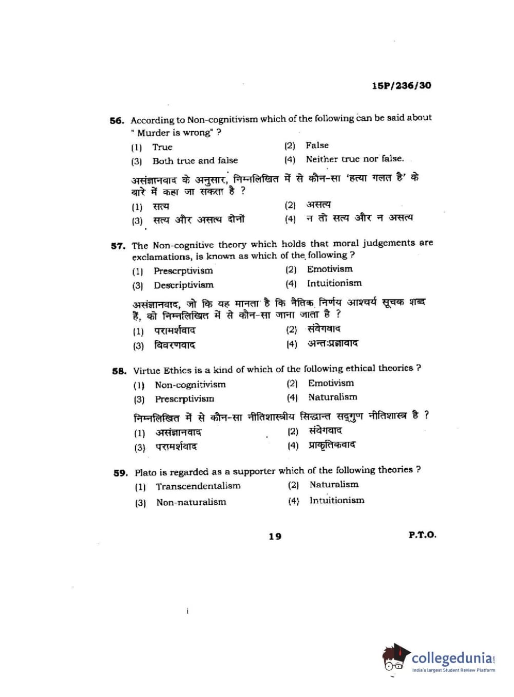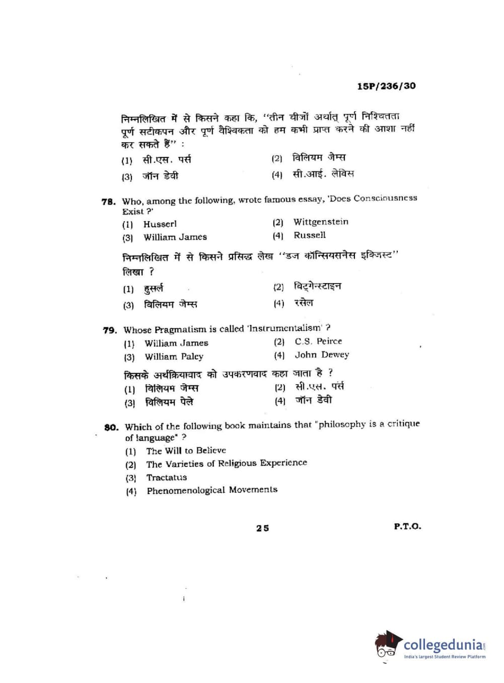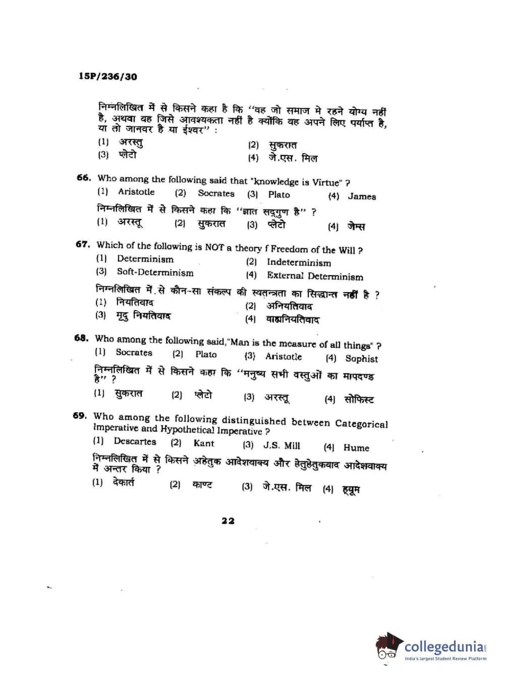 BHU PET 2015 M.A.-Philosophy Question Paper with Answer Key PDFs