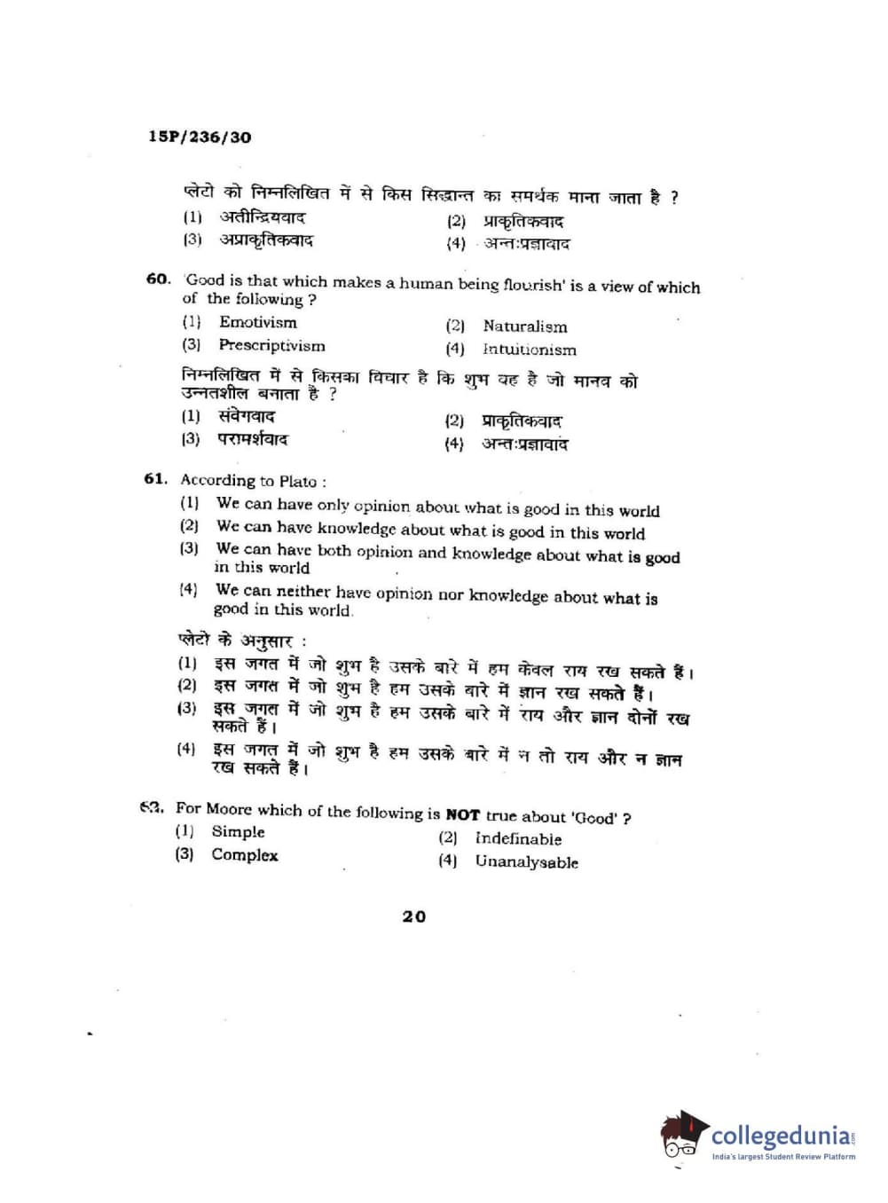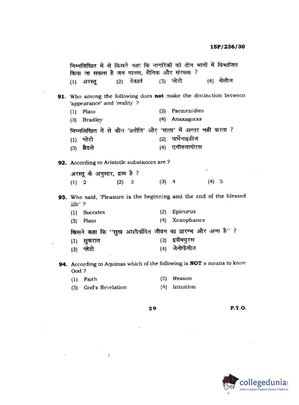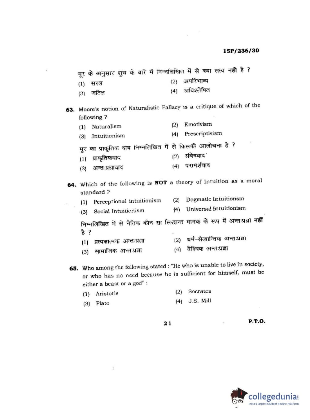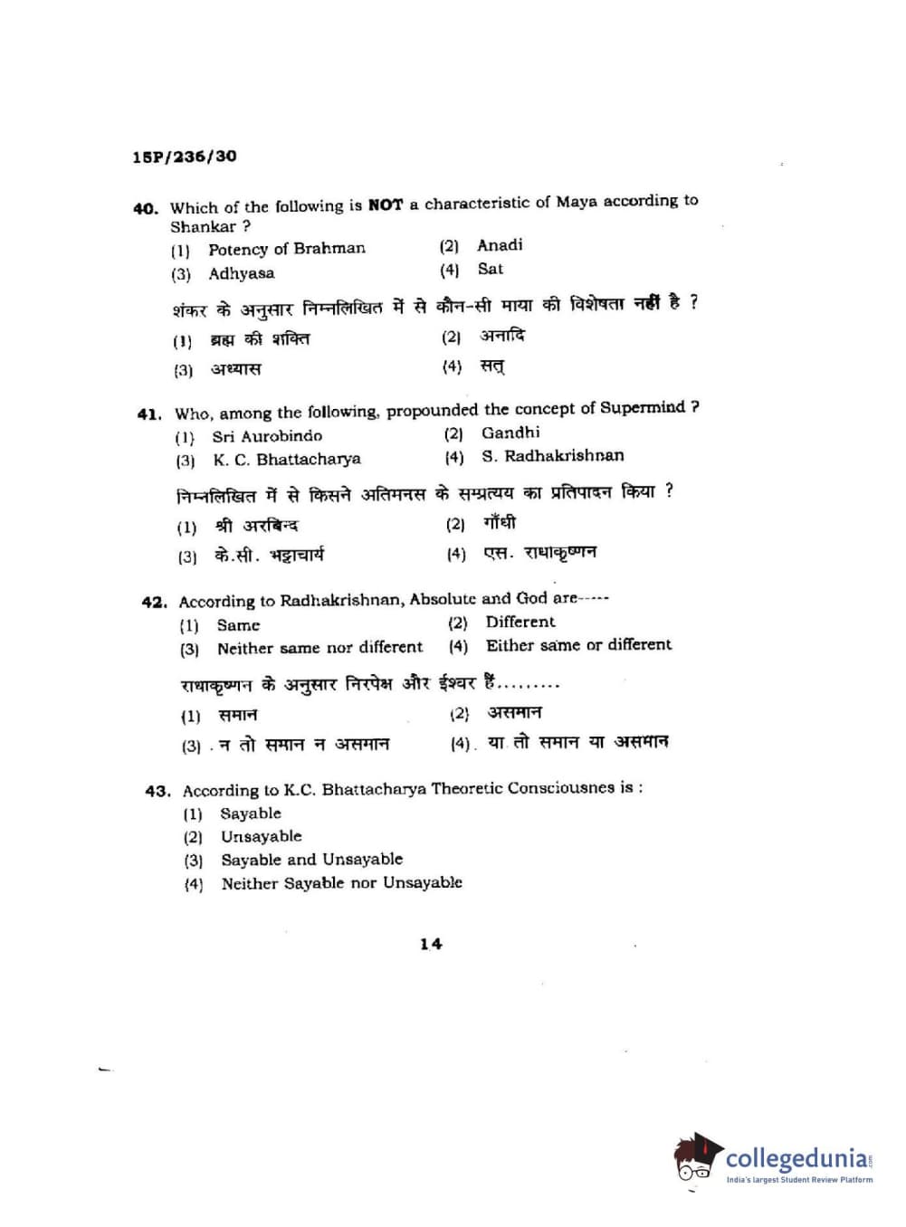 BHU PET 2015 M.A.-Philosophy Question Paper with Answer Key PDFs