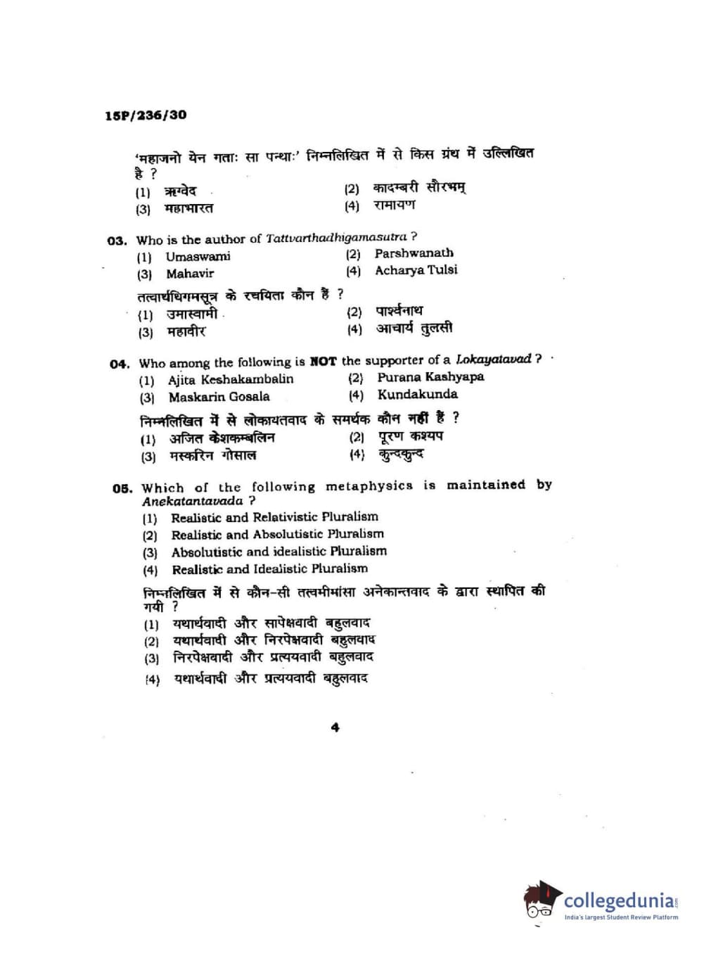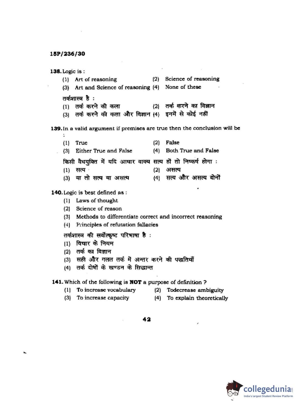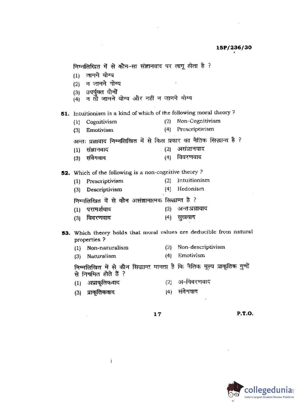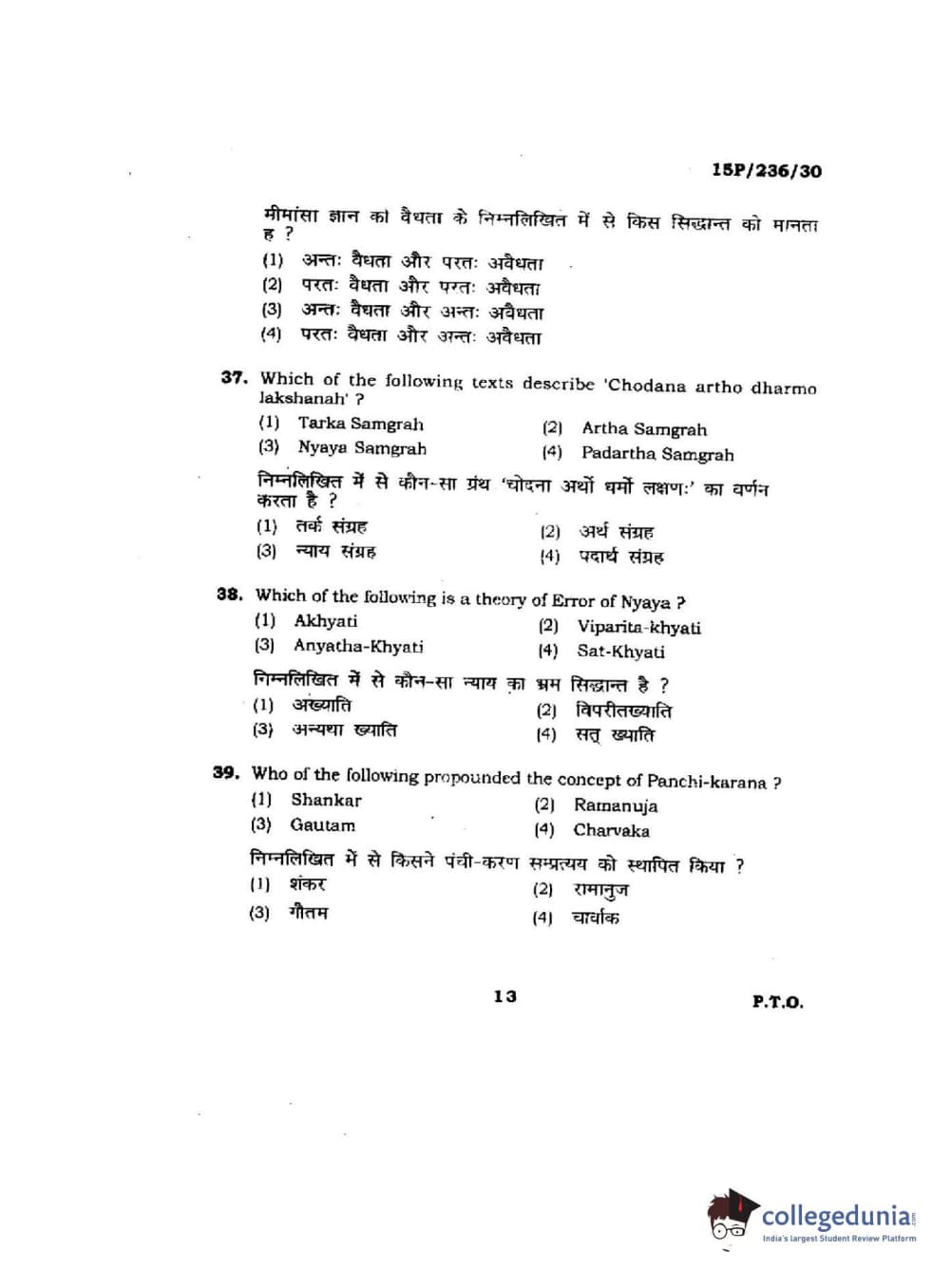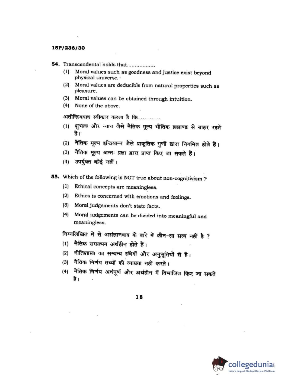 BHU PET 2015 M.A.-Philosophy Question Paper with Answer Key PDFs