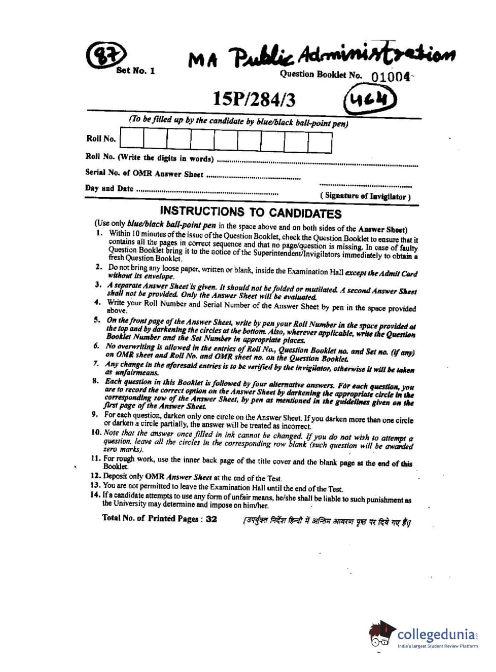| BHU PET 2015 M.A. - Public Administration Question Paper PDF | BHU PET 2015 M.A. - Public Administration Answer Key PDF |