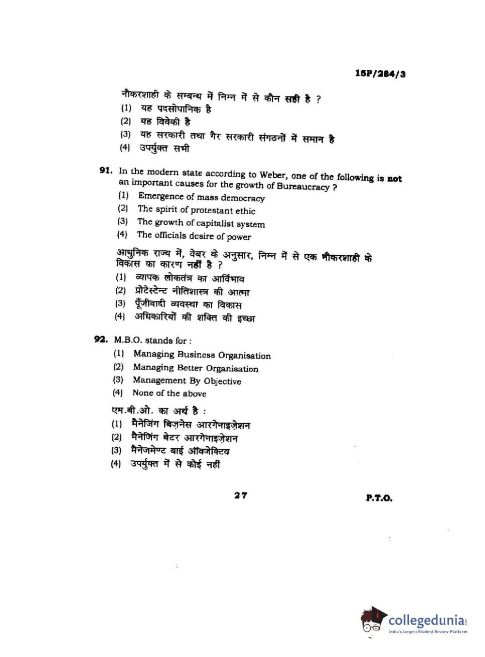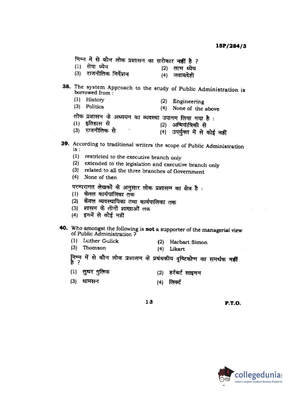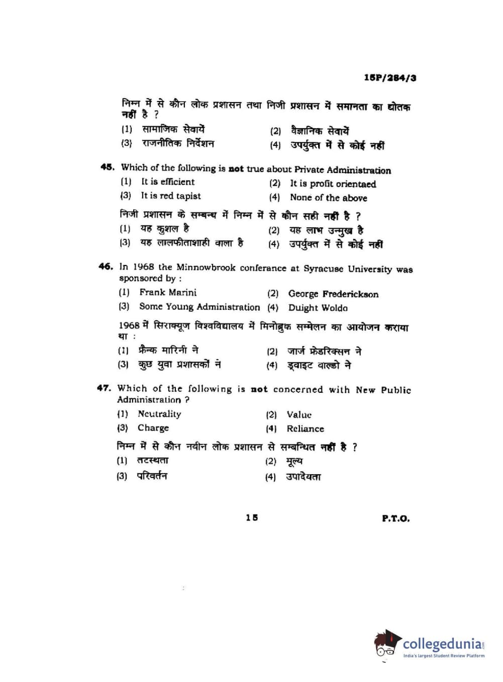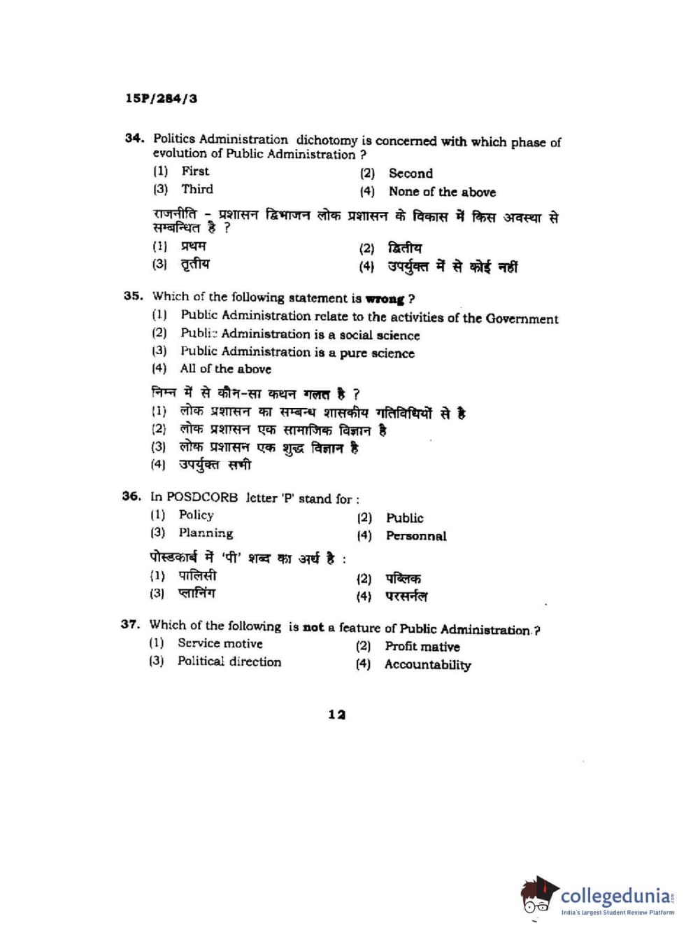 BHU PET 2015 M.A. - Public Administration Question Paper with Answer Key PDFs