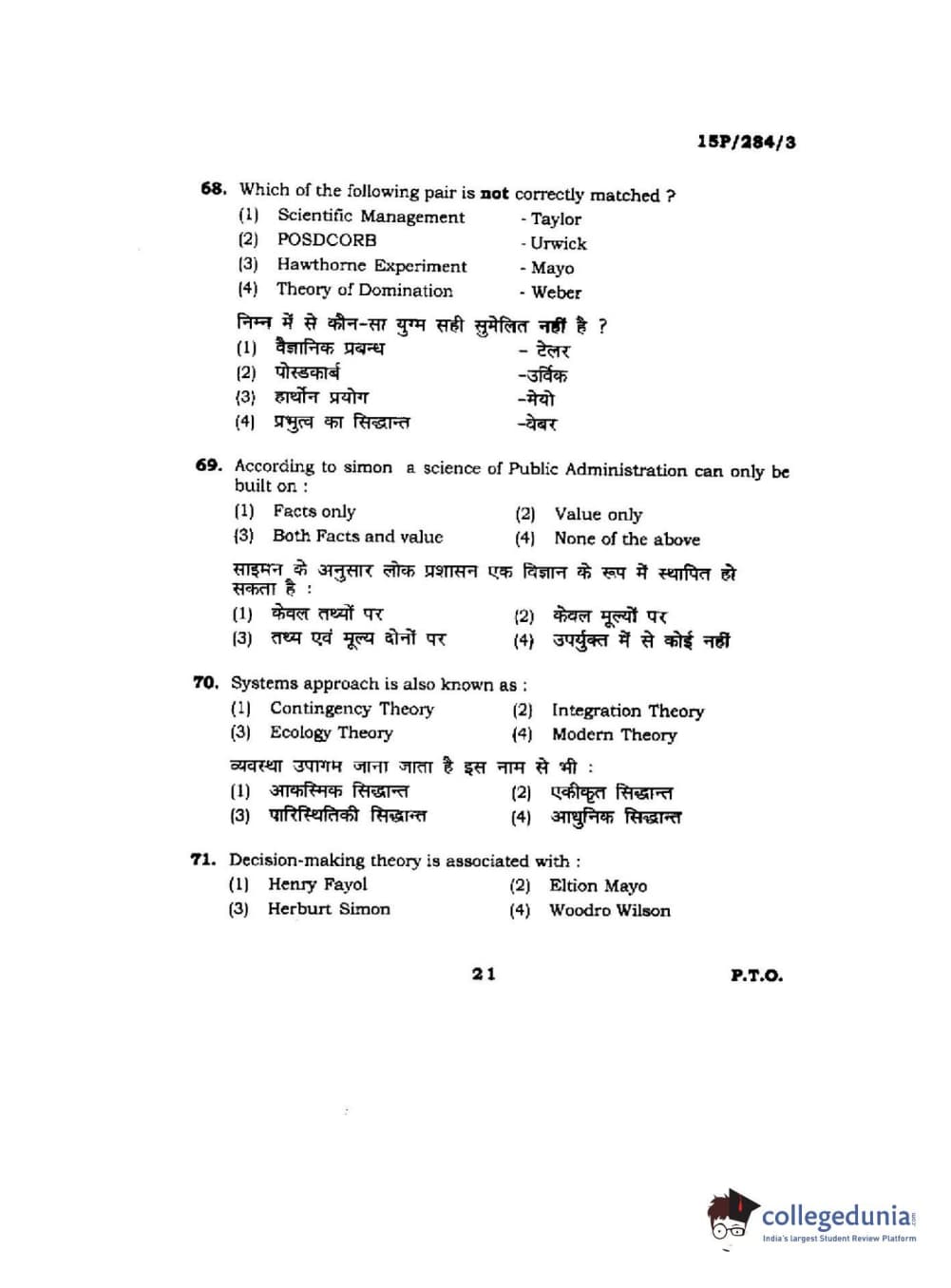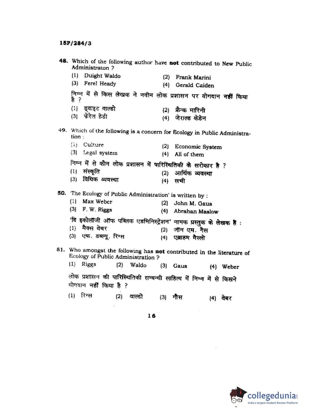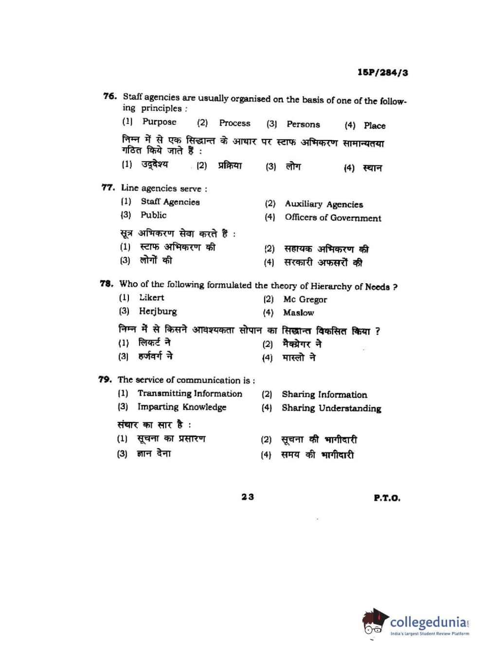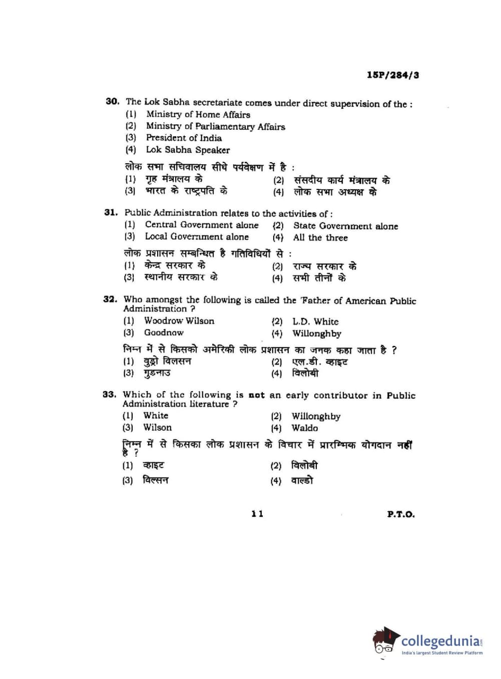 BHU PET 2015 M.A. - Public Administration Question Paper with Answer Key PDFs