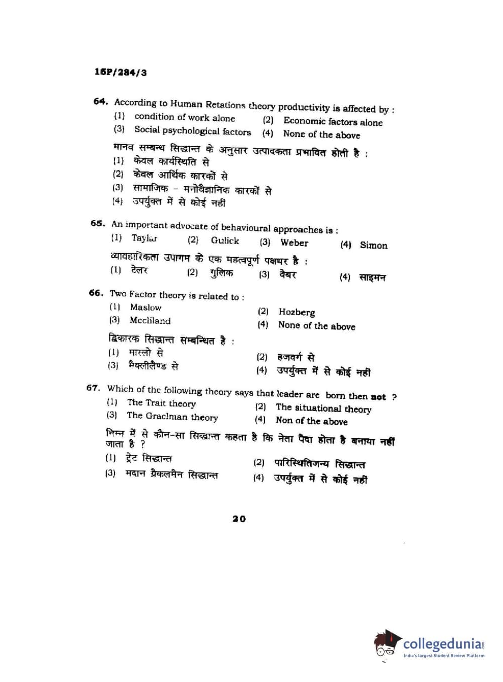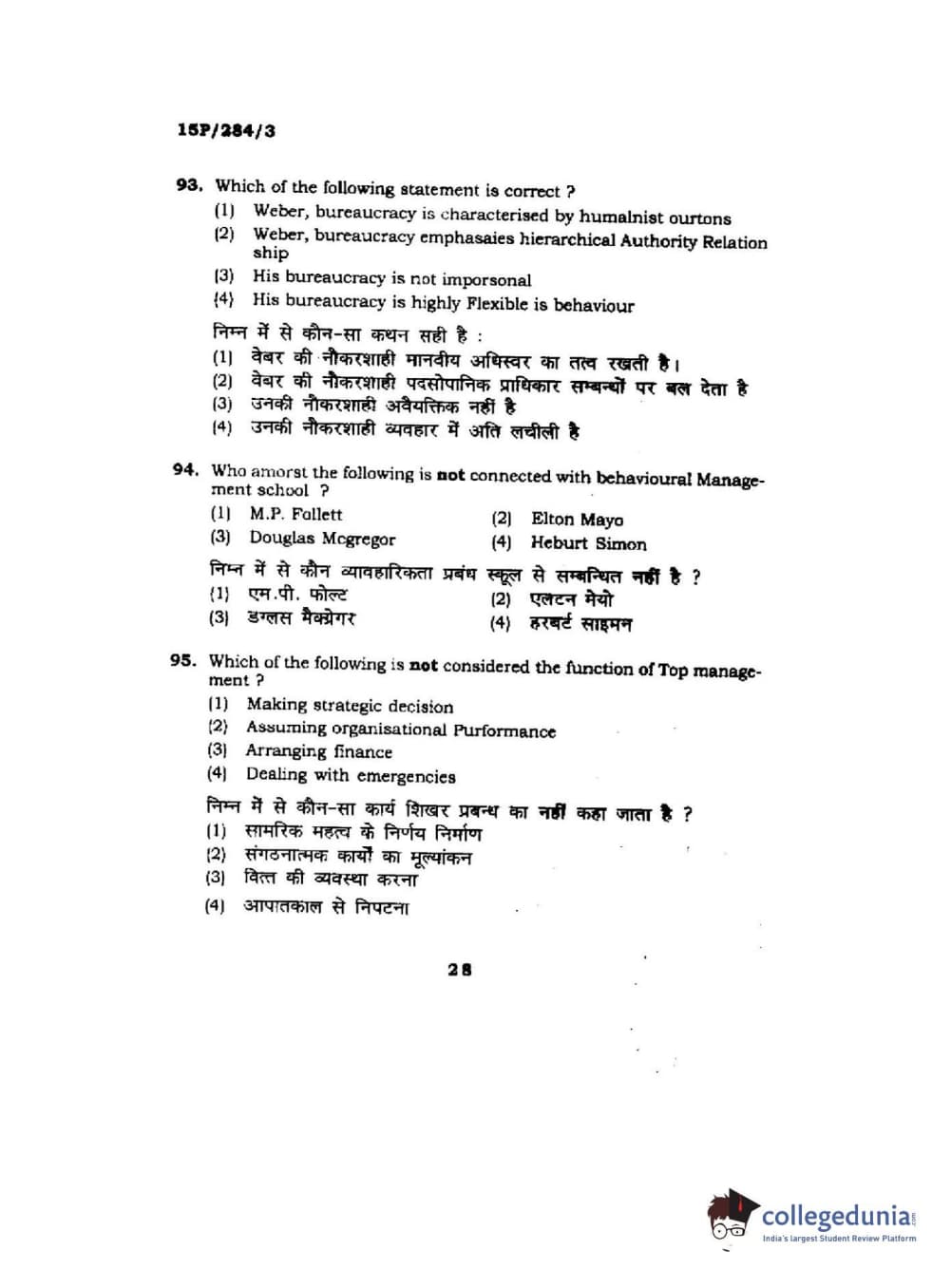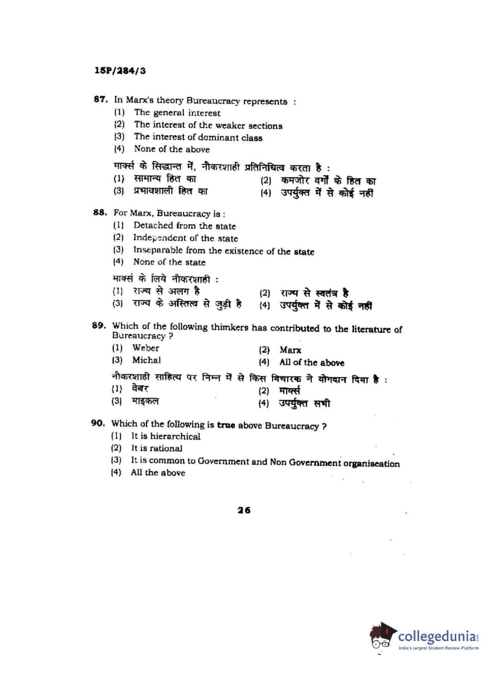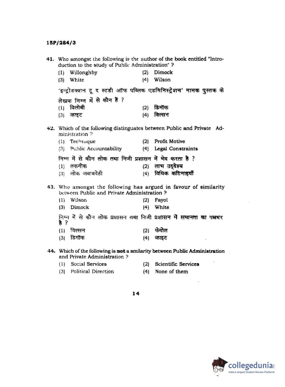 BHU PET 2015 M.A. - Public Administration Question Paper with Answer Key PDFs