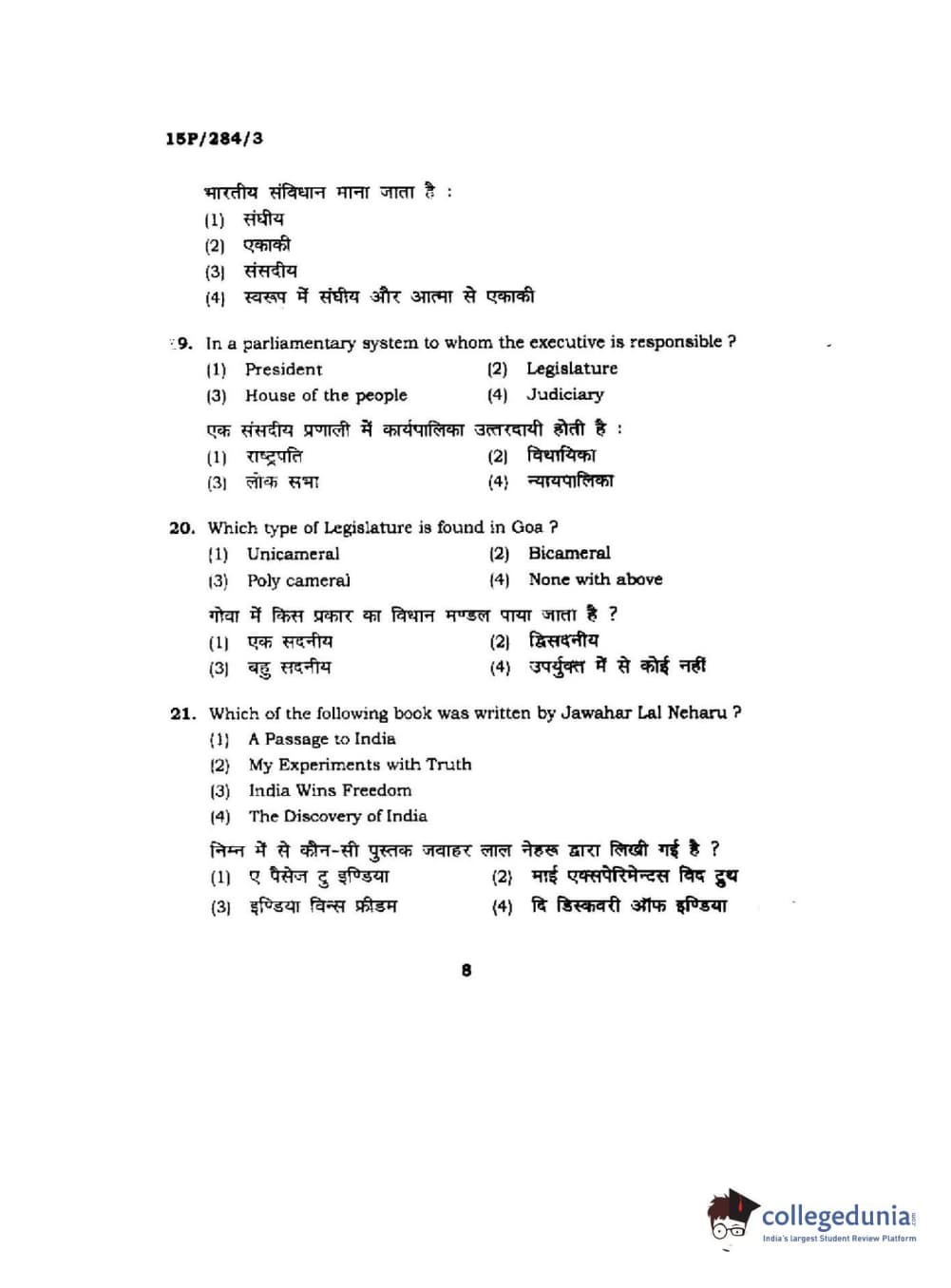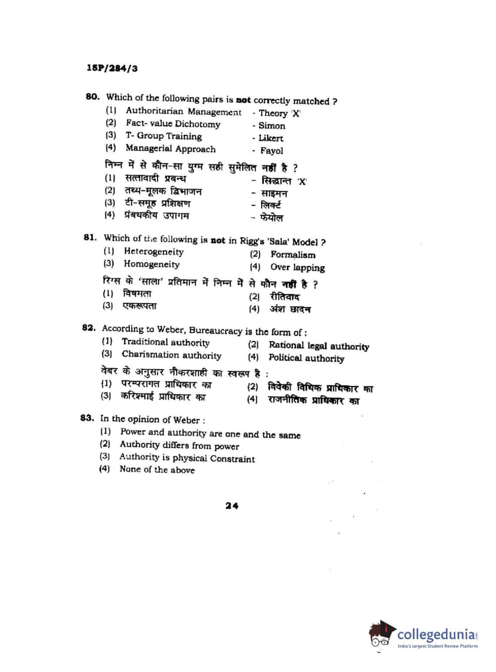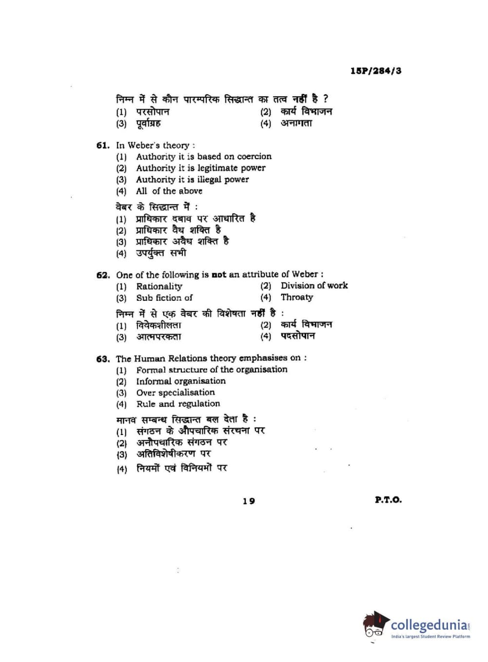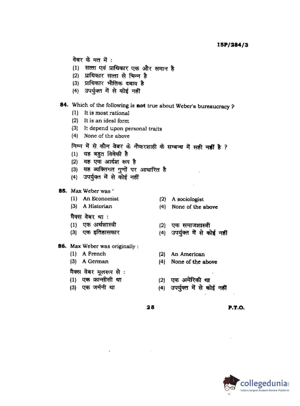 BHU PET 2015 M.A. - Public Administration Question Paper with Answer Key PDFs