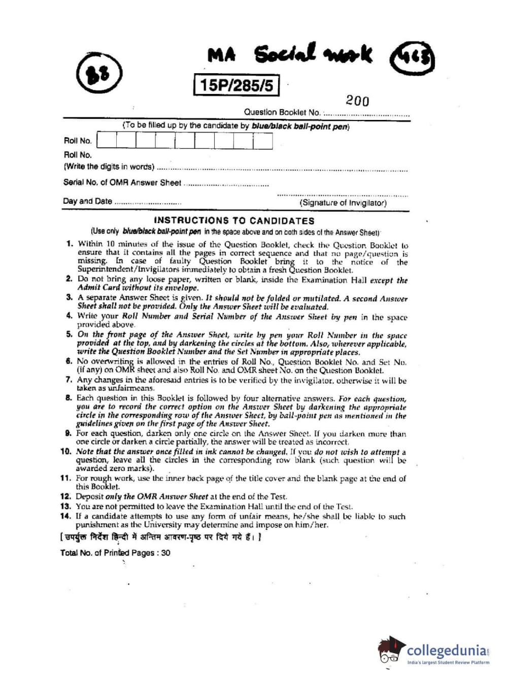 BHU PET 2015 M.A. Social Work Question paper with answer key pdf is available for download. The exam was successfully organized by Banaras Hindu University (BHU). The question paper comprised a total of 100 questions.
