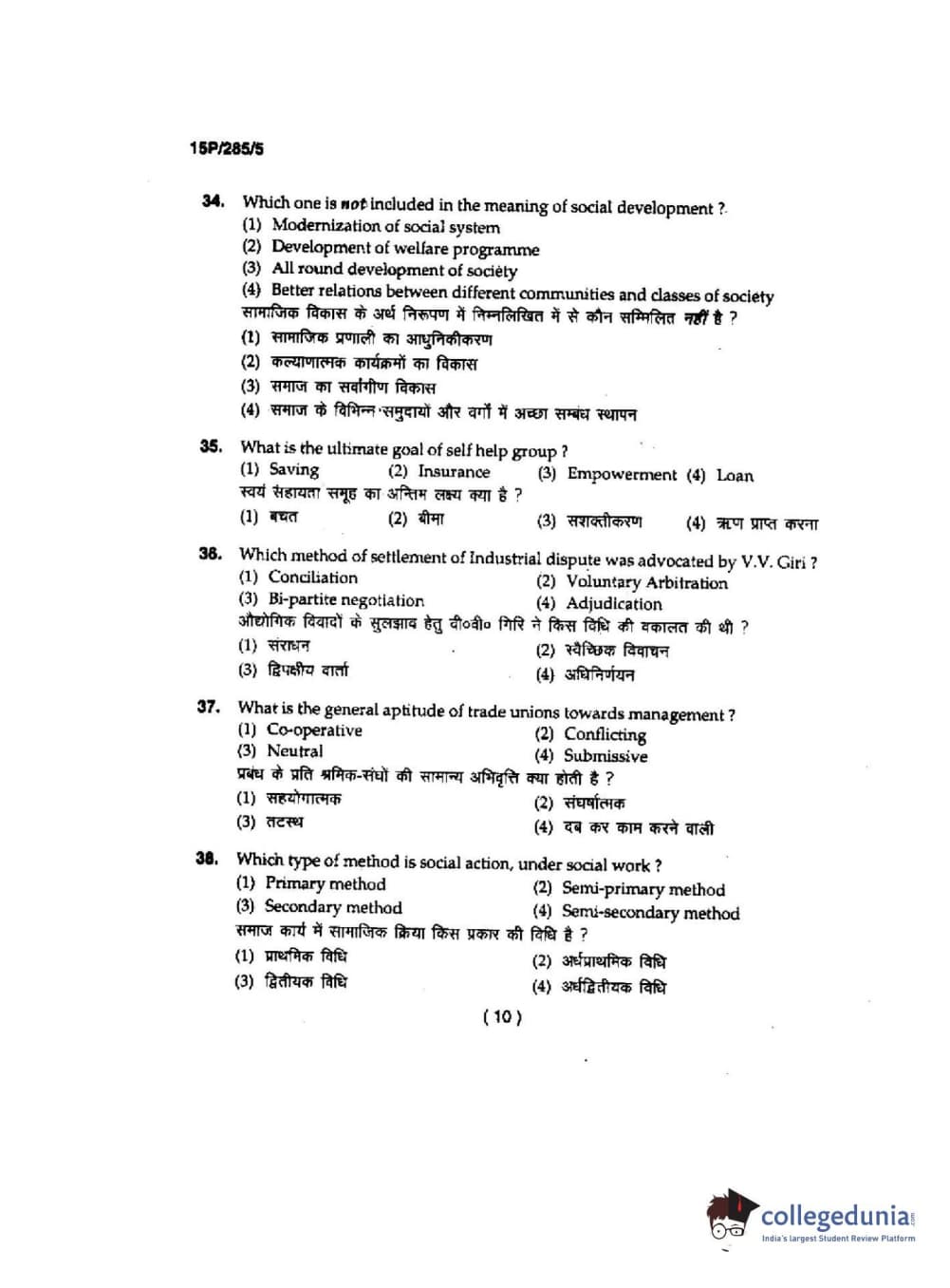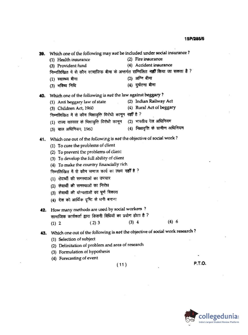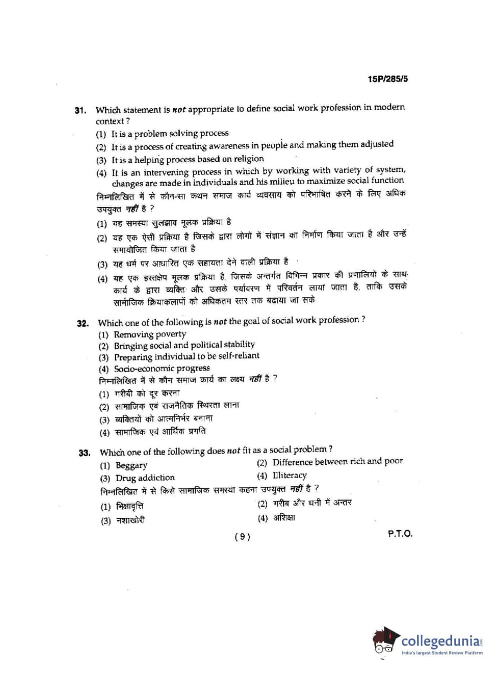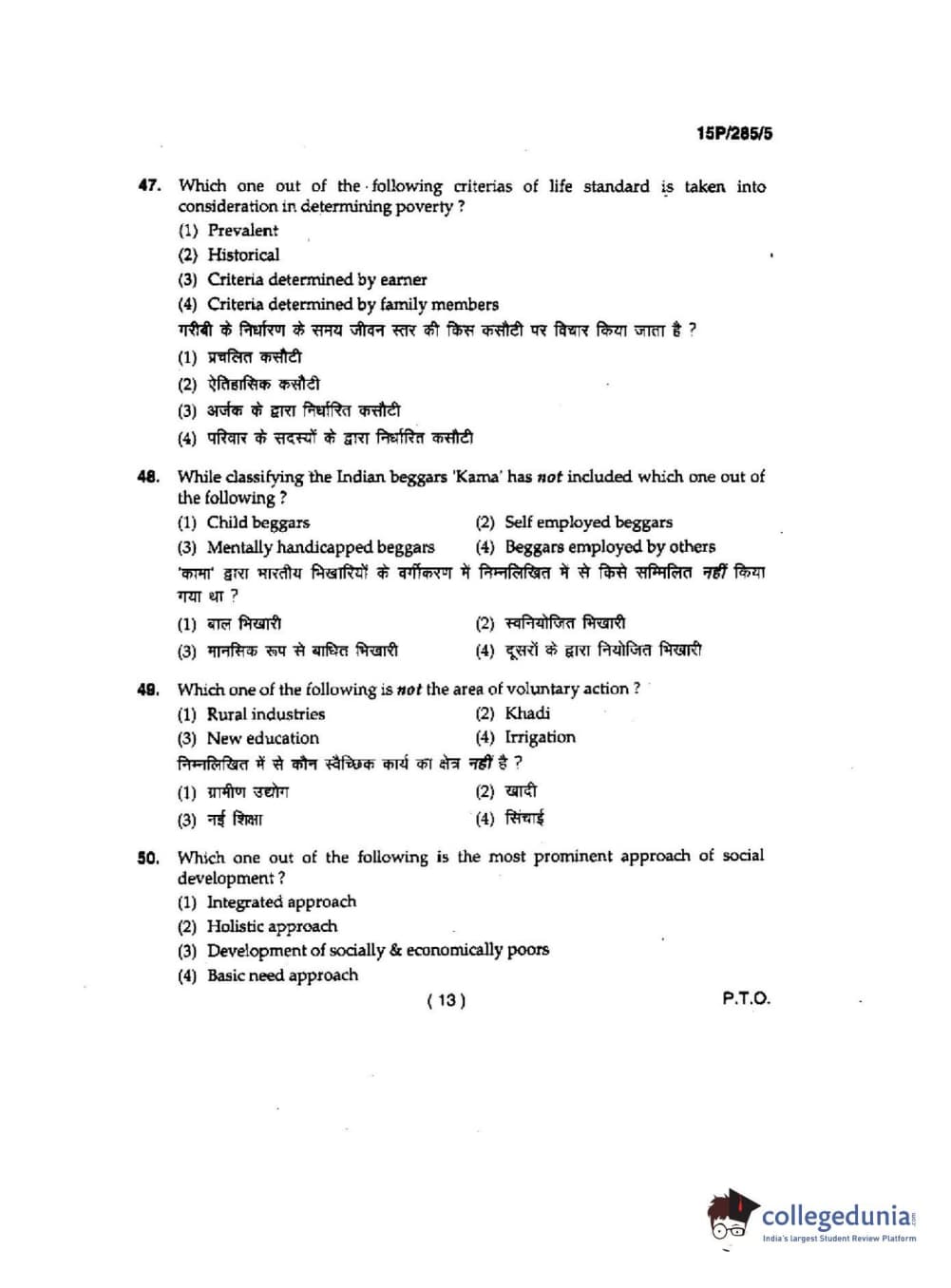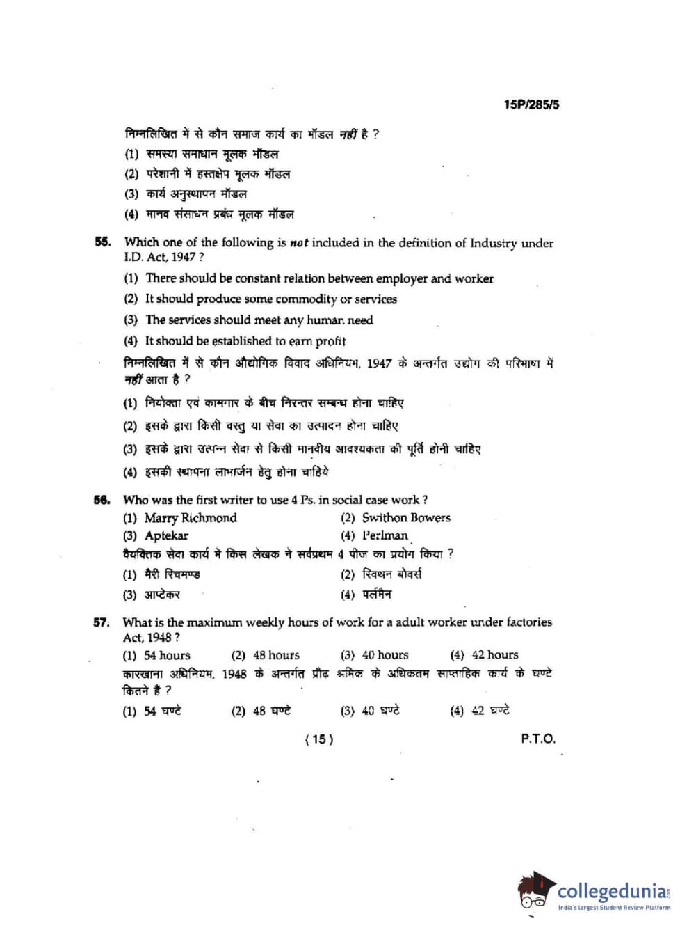 BHU PET 2015 M.A. Social Work Question Paper with Answer Key PDFs