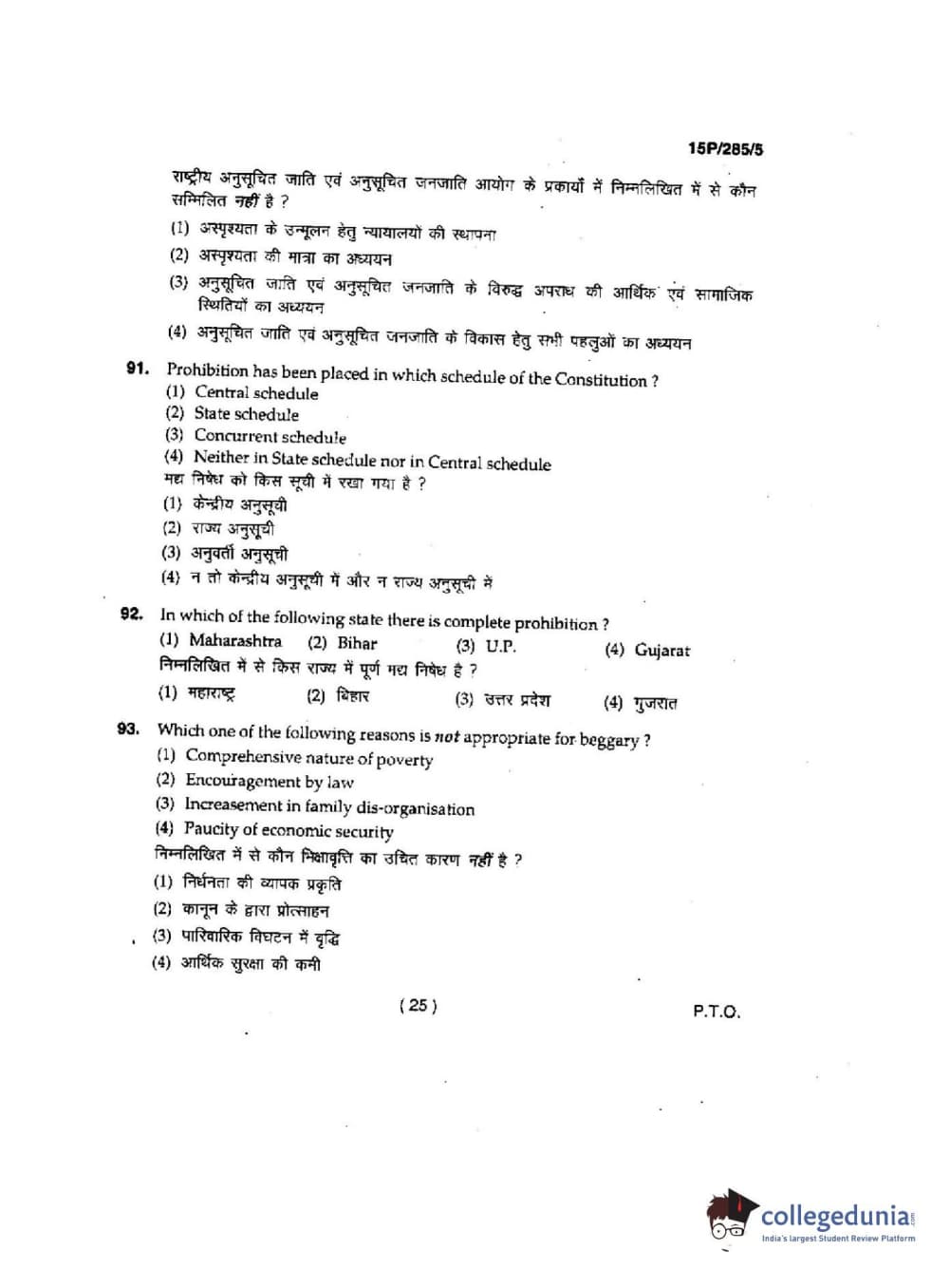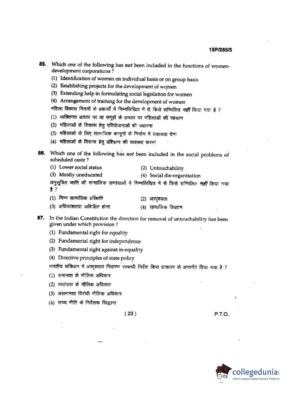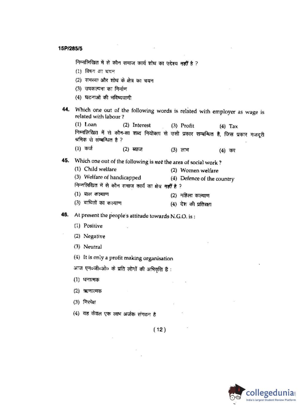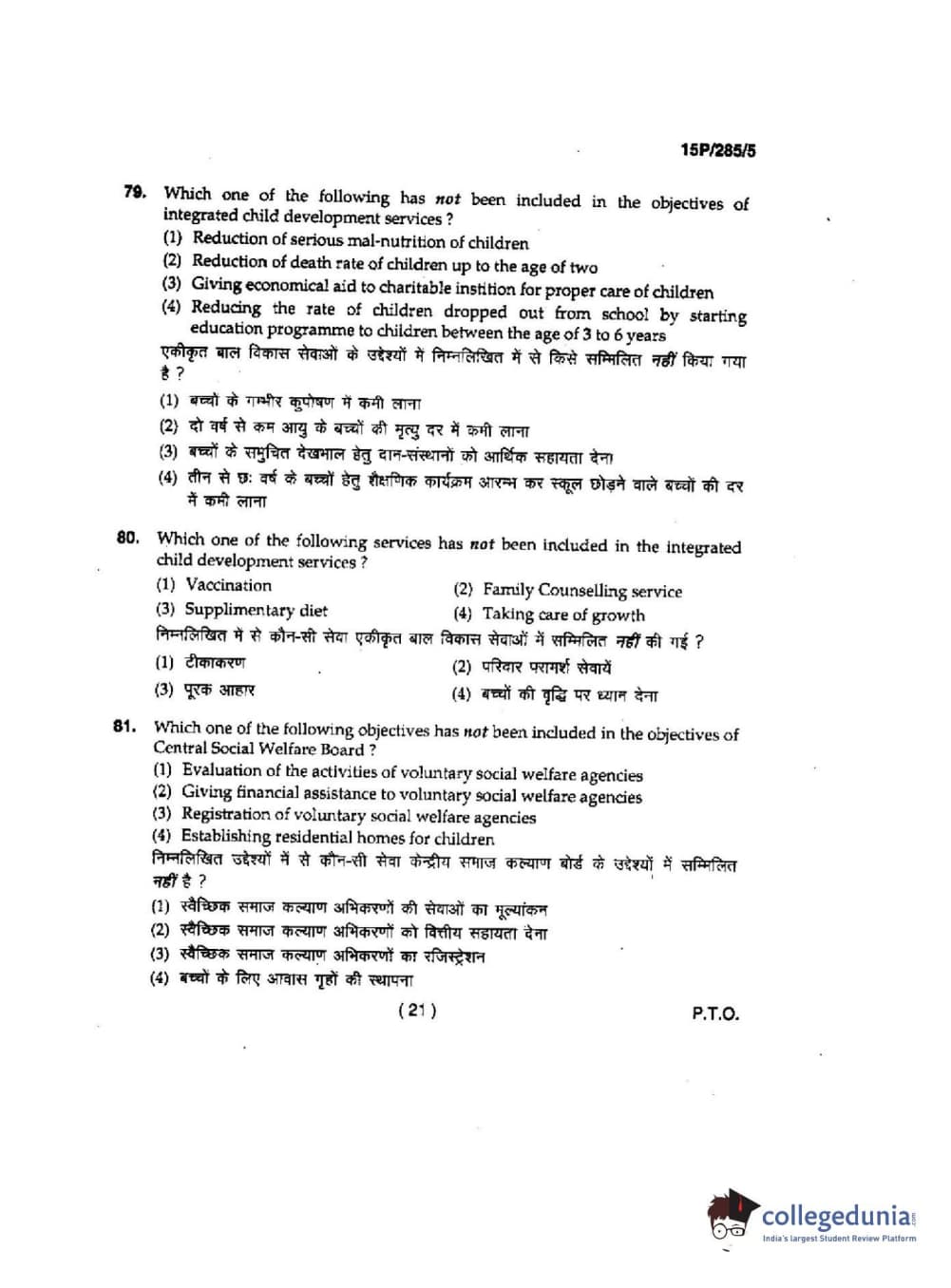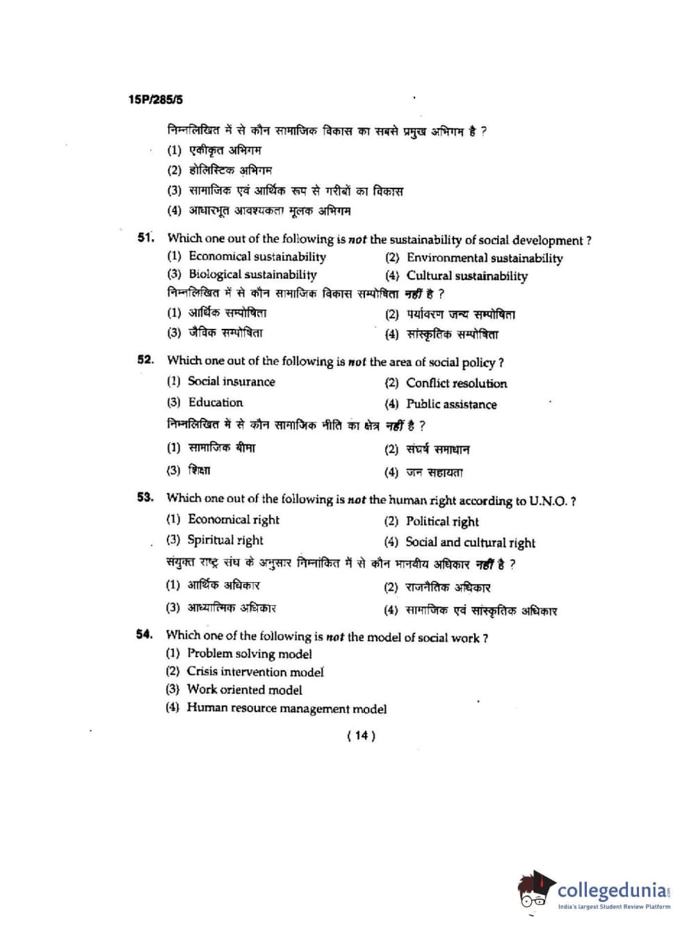 BHU PET 2015 M.A. Social Work Question Paper with Answer Key PDFs