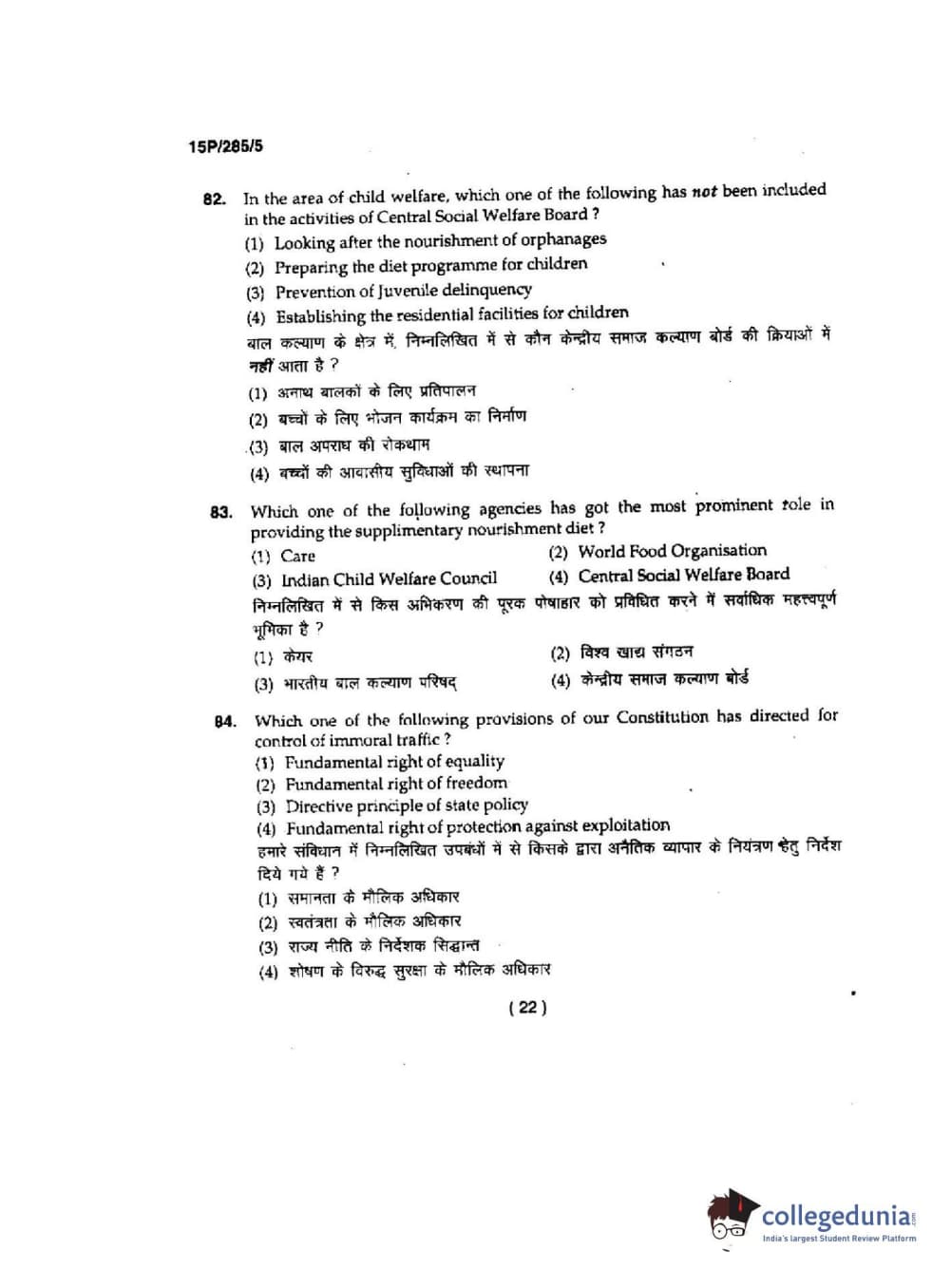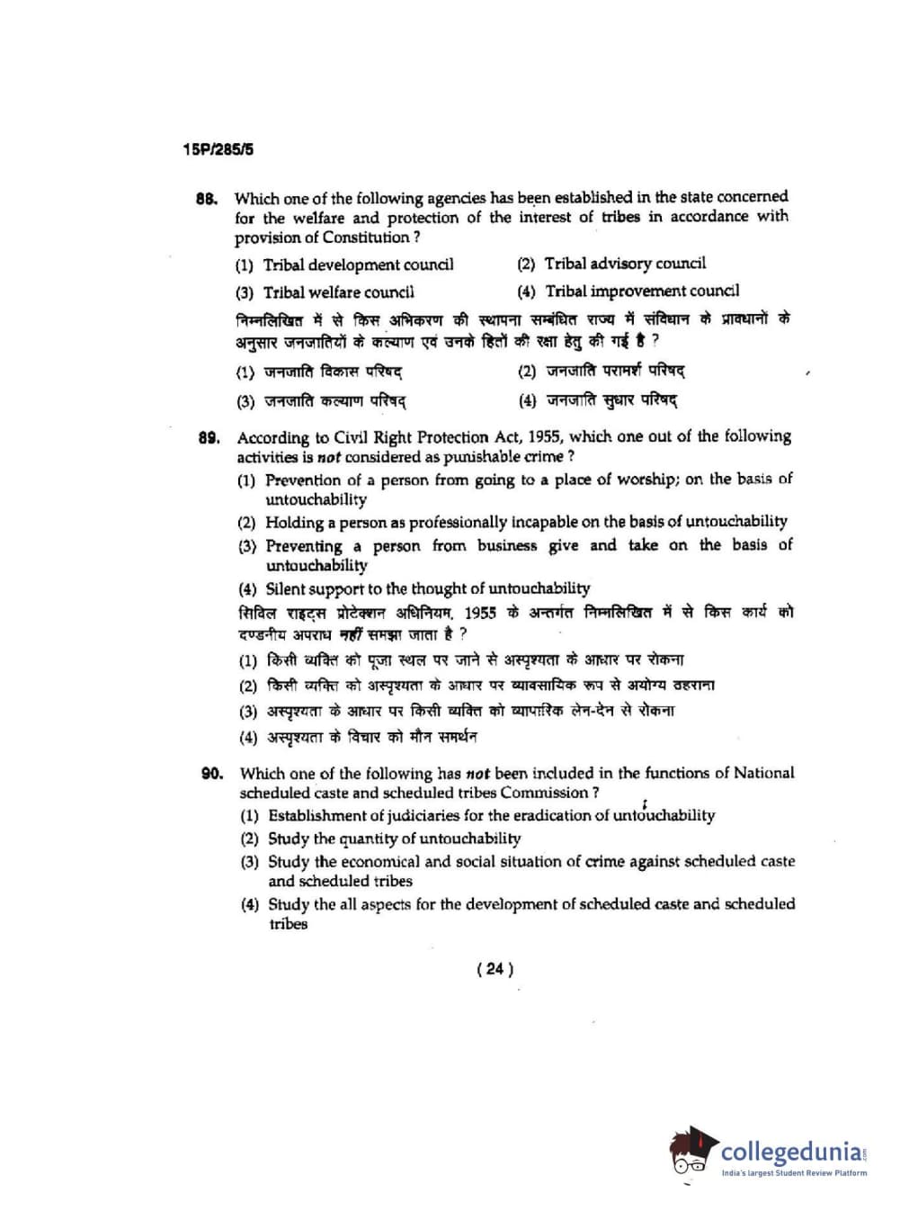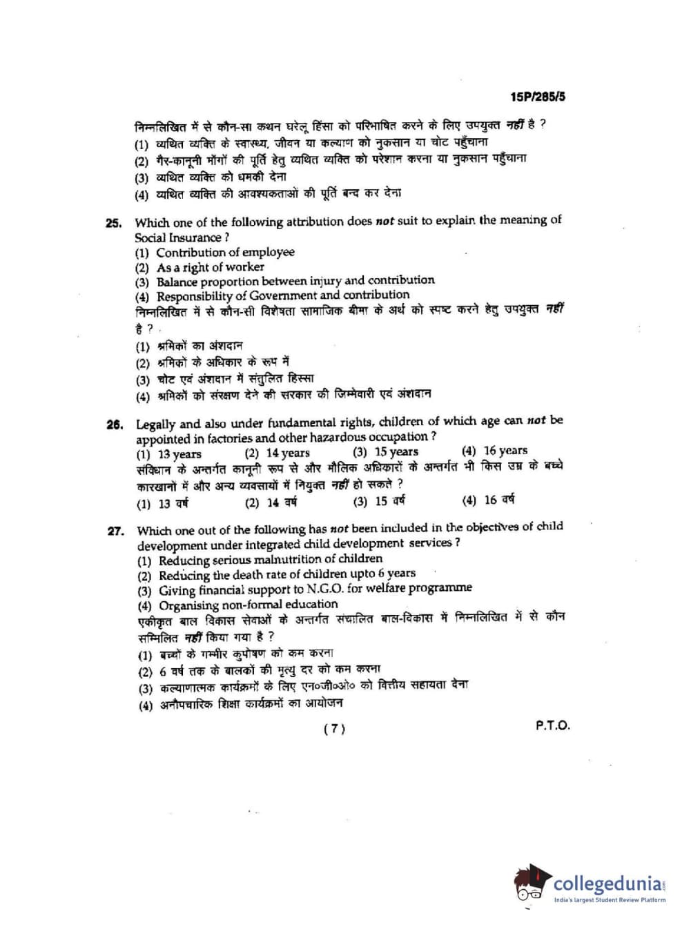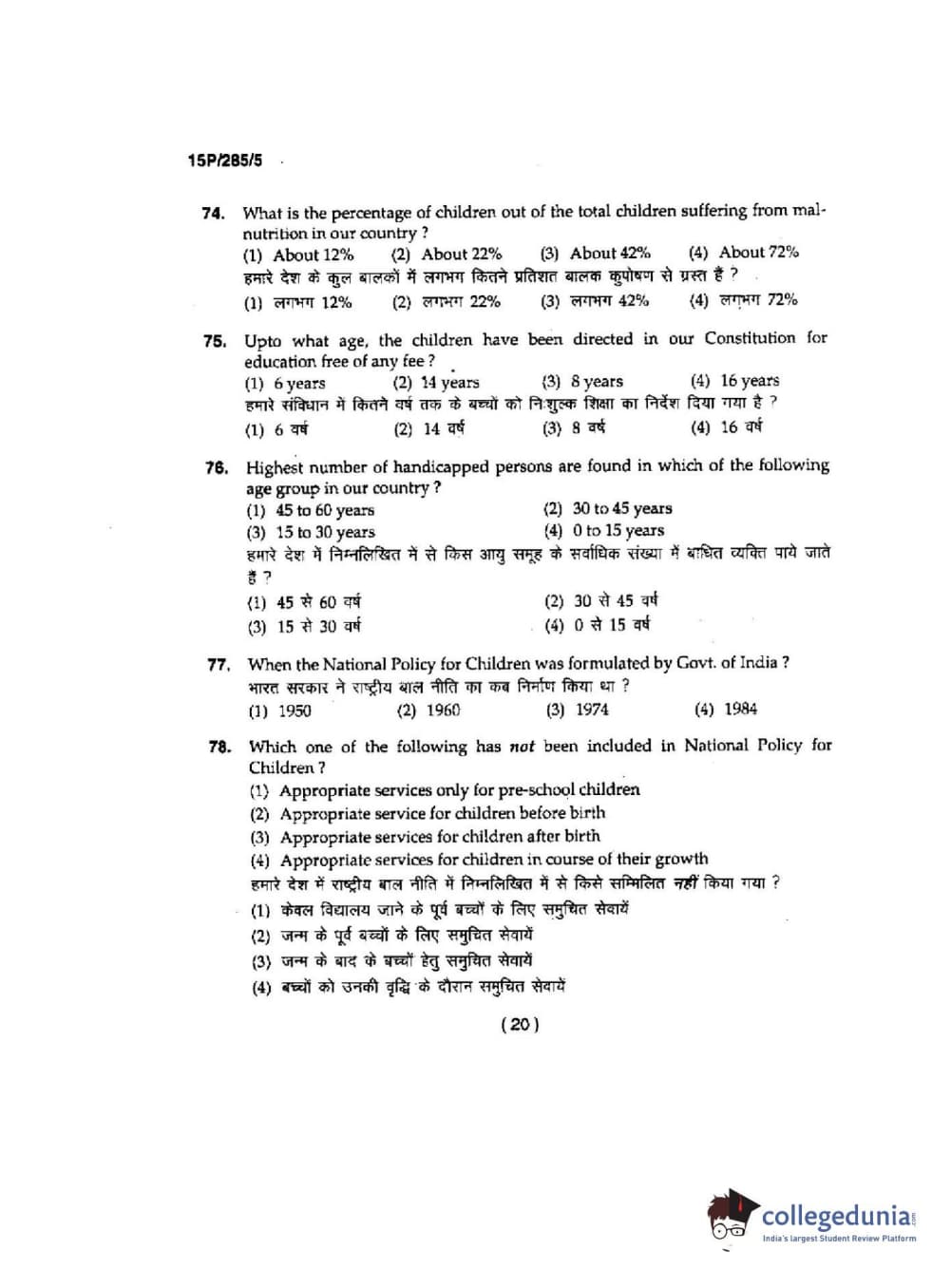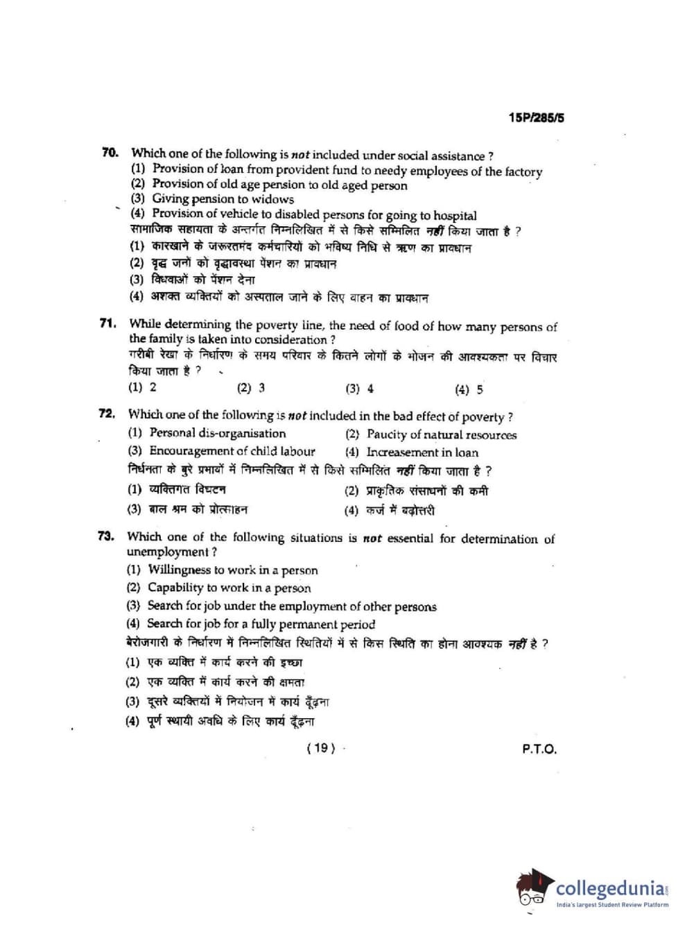 BHU PET 2015 M.A. Social Work Question Paper with Answer Key PDFs