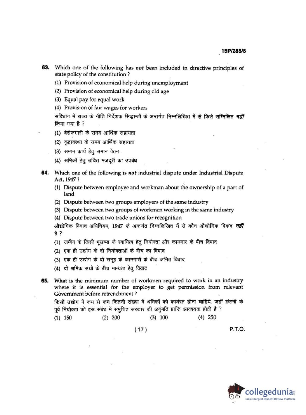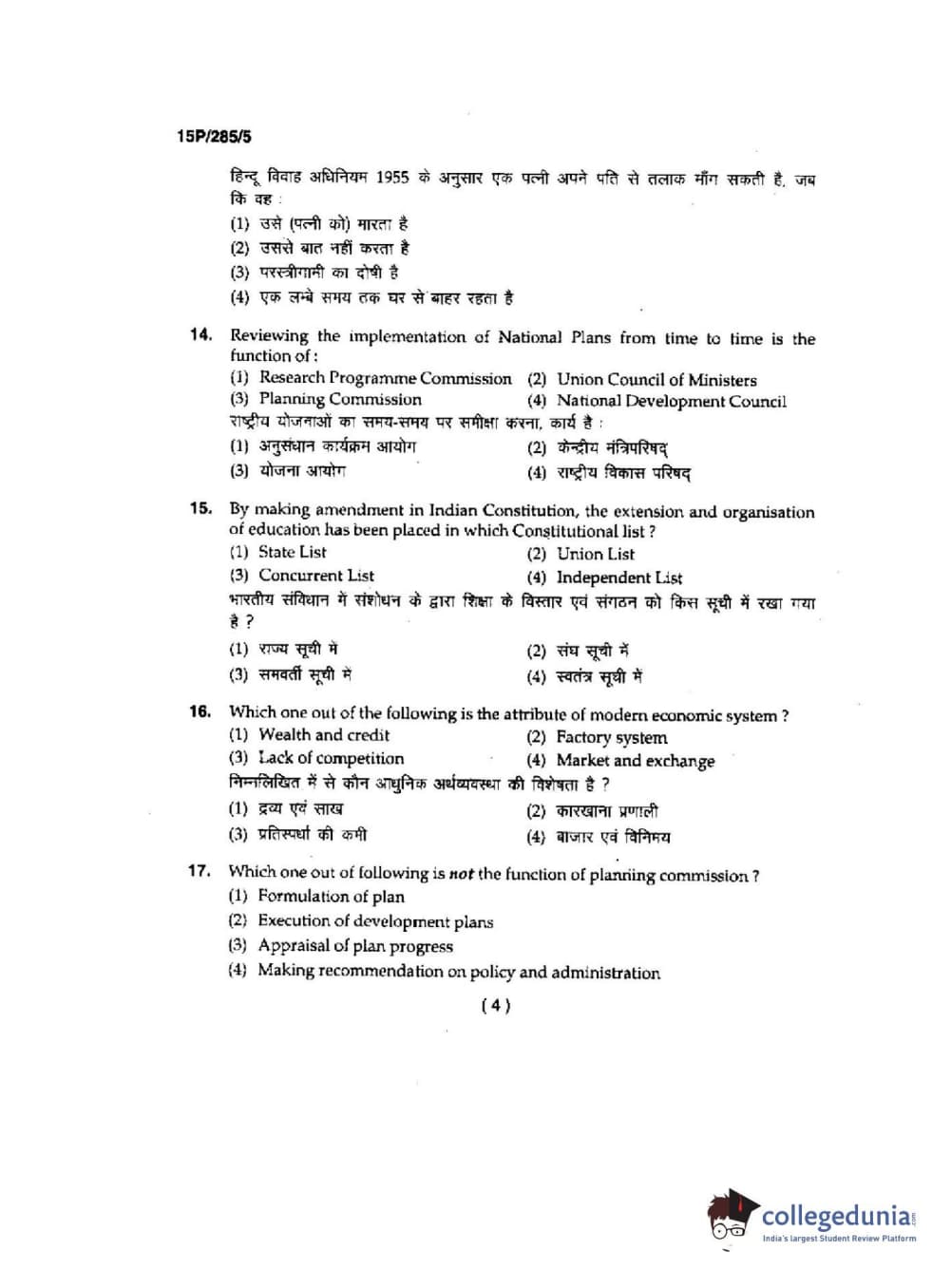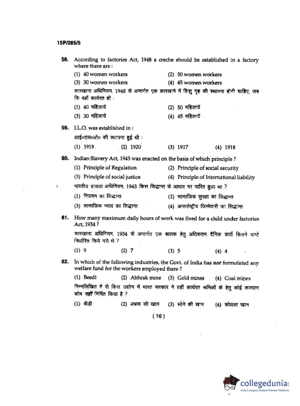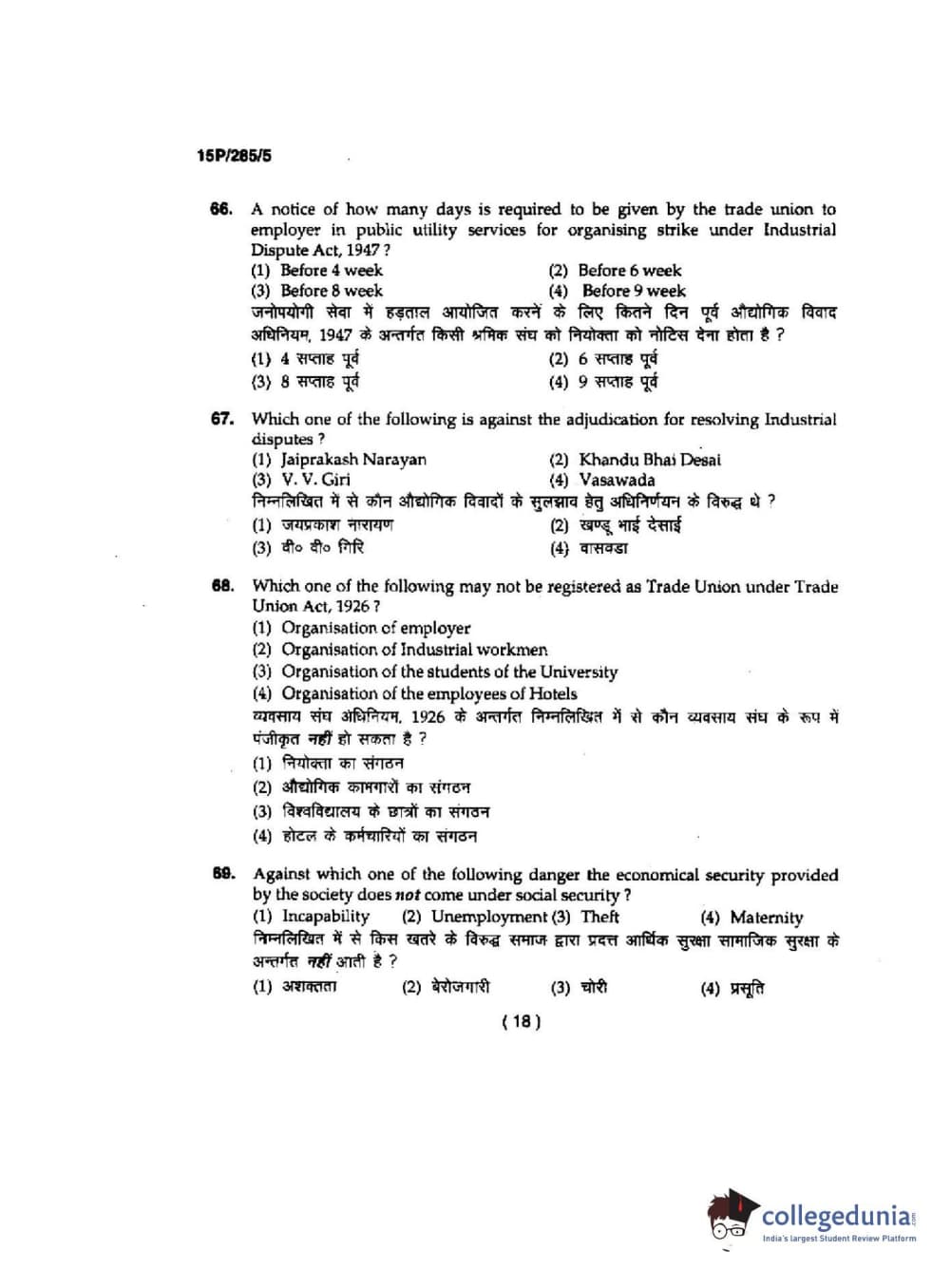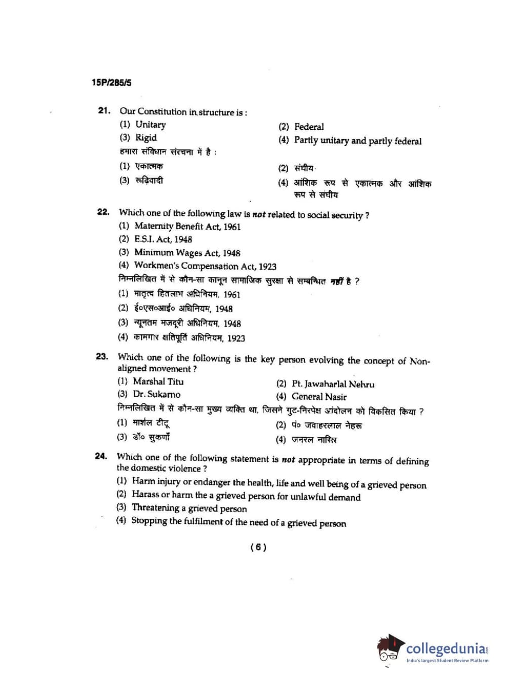 BHU PET 2015 M.A. Social Work Question Paper with Answer Key PDFs