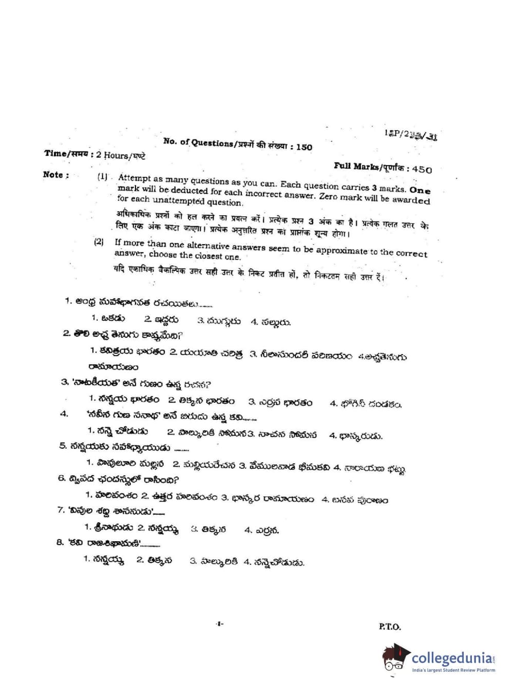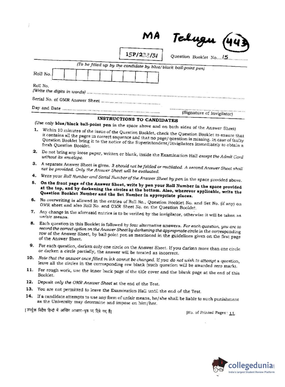 BHU PET 2015 M.A.Telugu Question paper with answer key pdf is available for download. The exam was successfully organized by Banaras Hindu University (BHU). The question paper comprised a total of 150 questions.