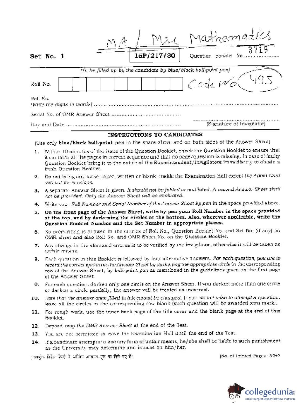 BHU PET 2015 Mathematics Question paper with answer key pdf is available for download. The exam was successfully organized by Banaras Hindu University (BHU). The question paper comprised a total of 150 questions.