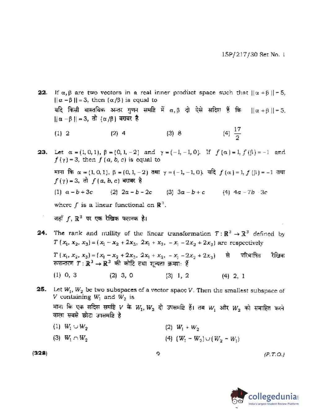 BHU PET 2015 Mathematics Question Paper with Answer Key PDFs