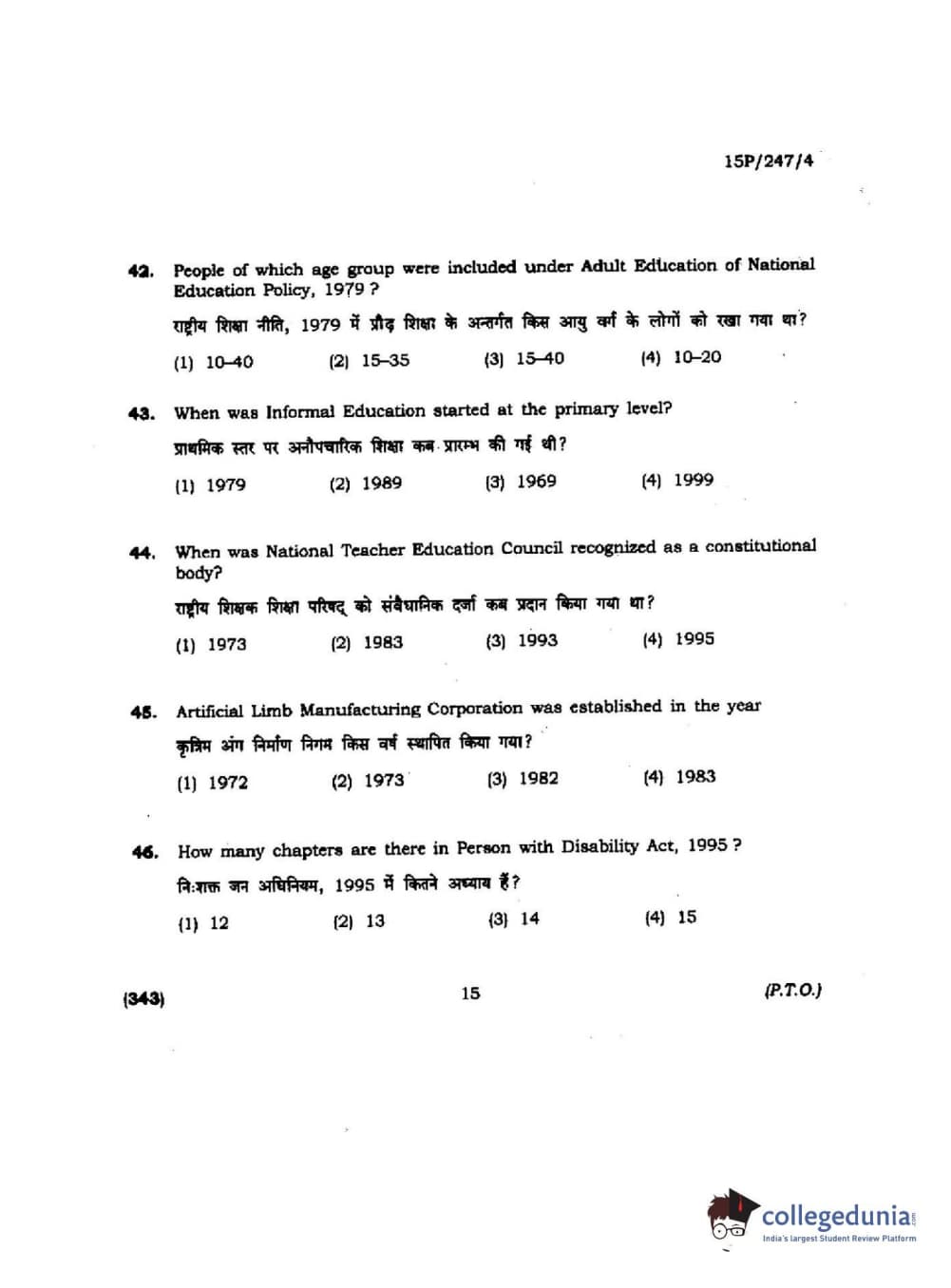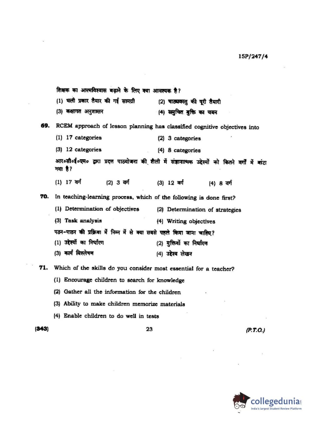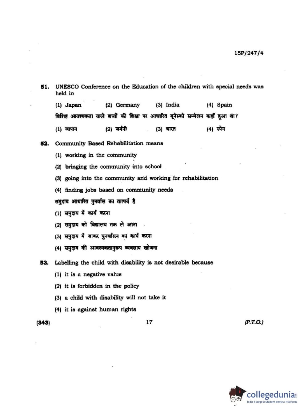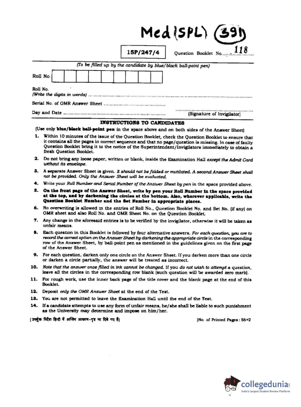 BHU PET 2015 M.Ed. (spl) Question paper with answer key pdf is available for download. The exam was successfully organized by Banaras Hindu University (BHU). The question paper comprised a total of 150 questions.