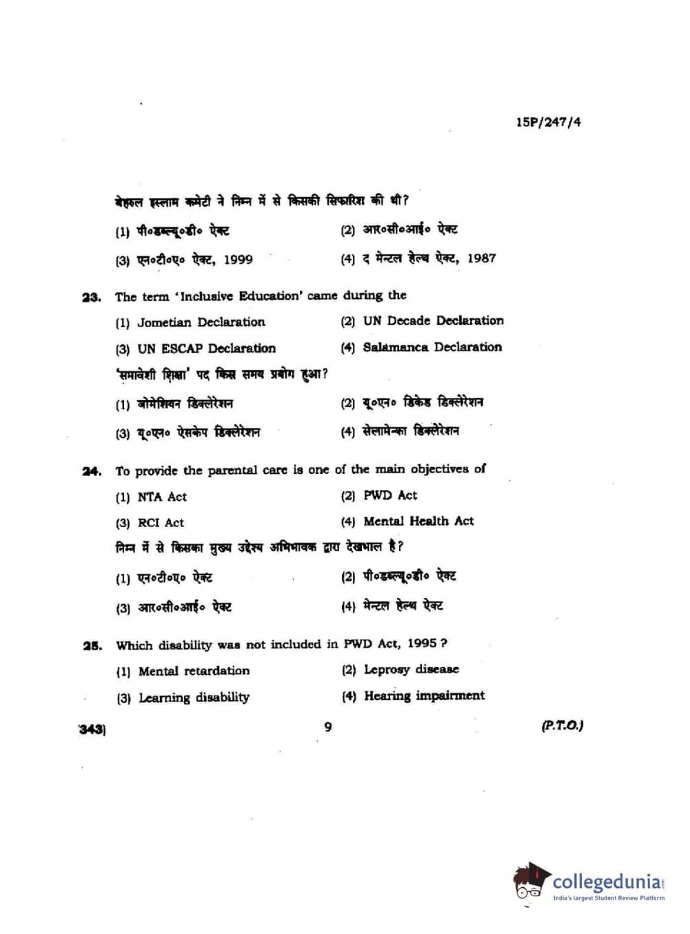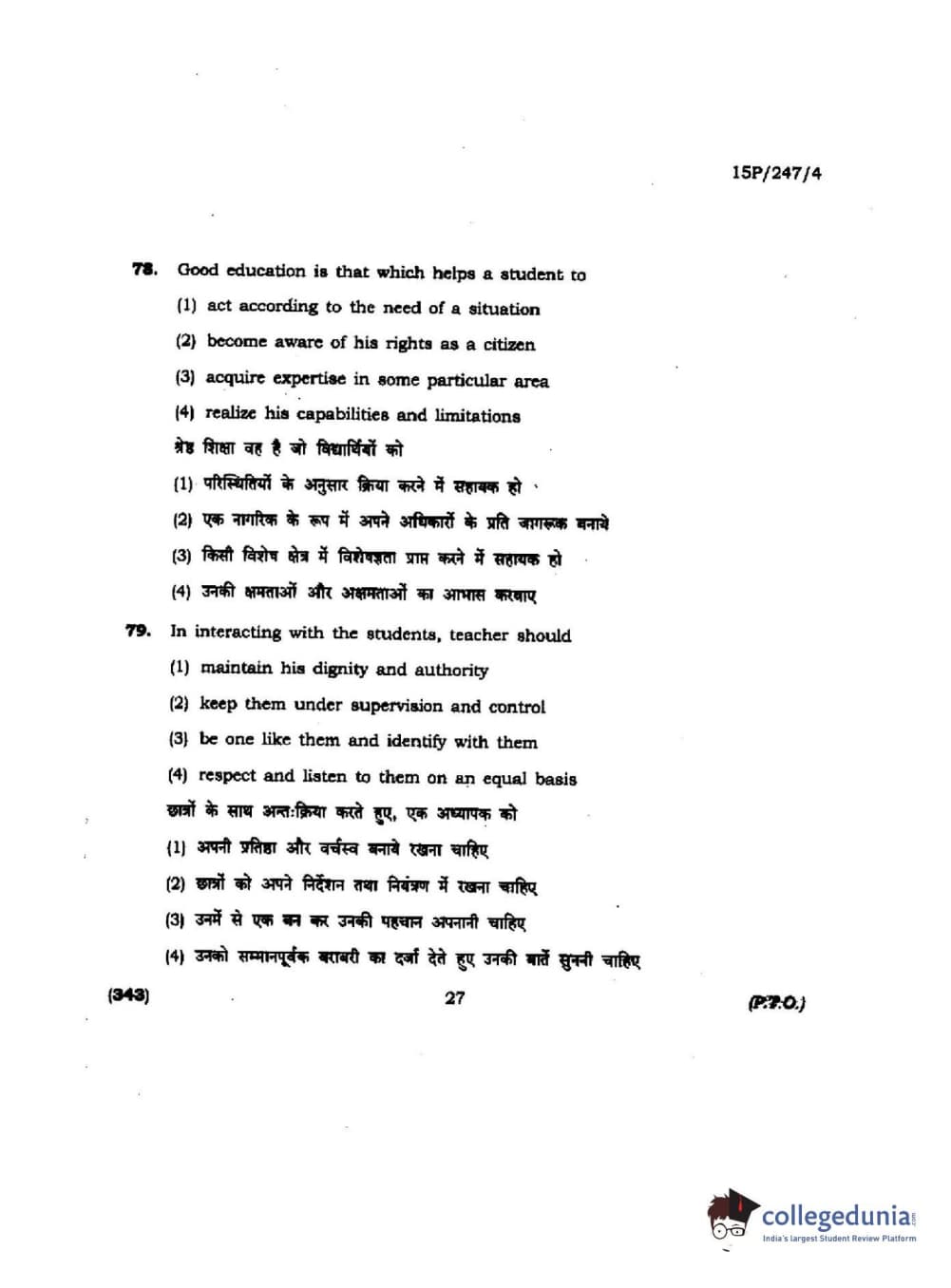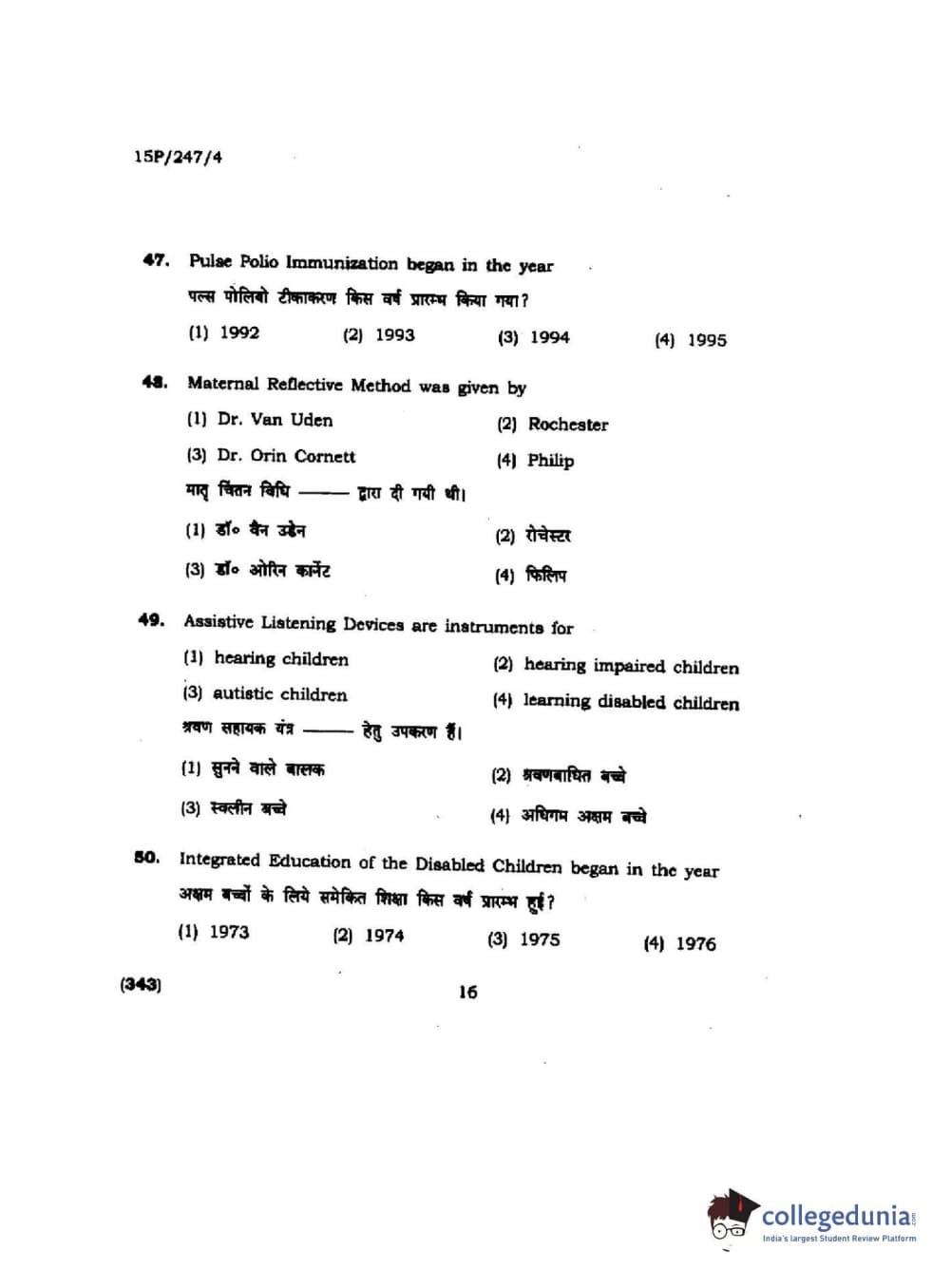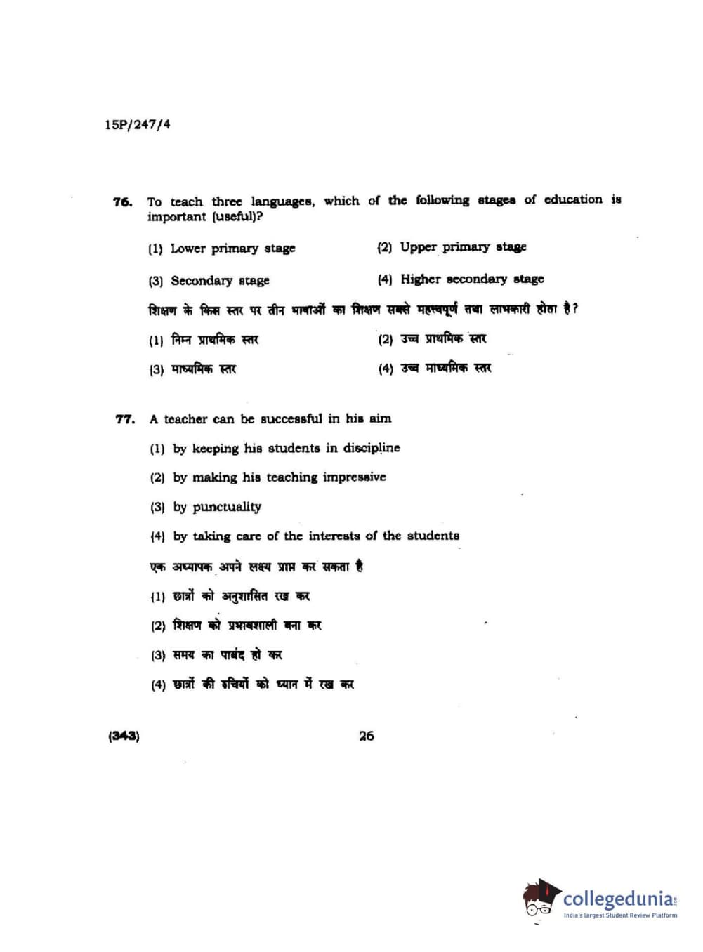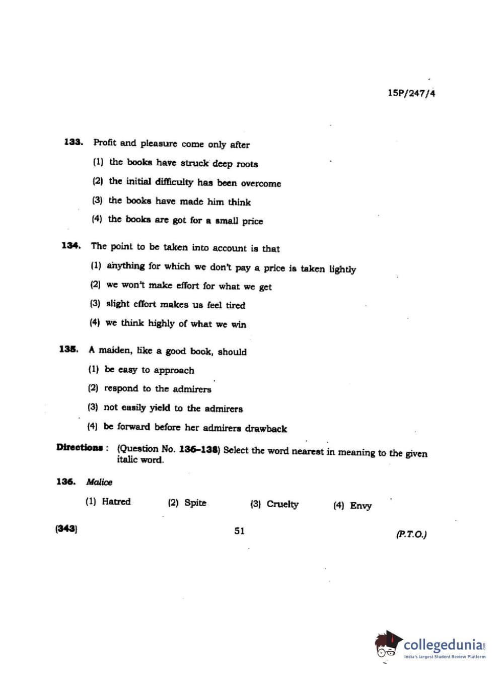 BHU PET 2015 M.Ed. (spl) Question paper with answer key pdf is available for download. The exam was successfully organized by Banaras Hindu University (BHU). The question paper comprised a total of 150 questions.