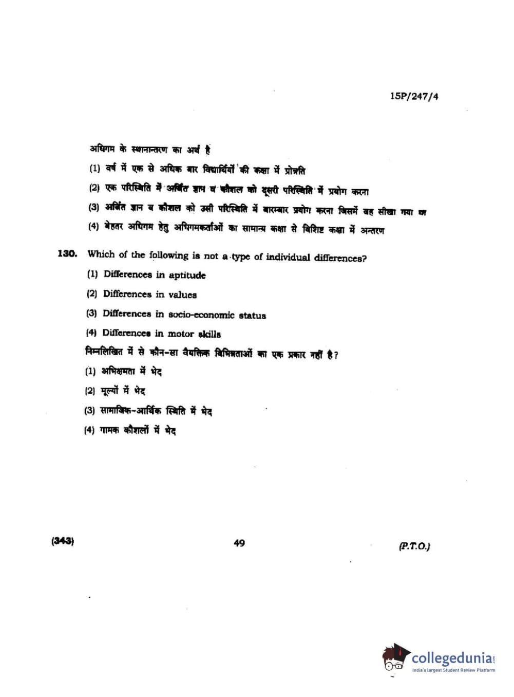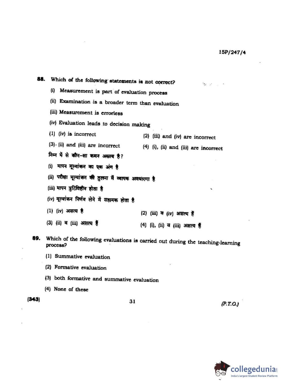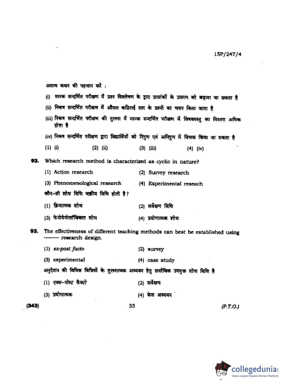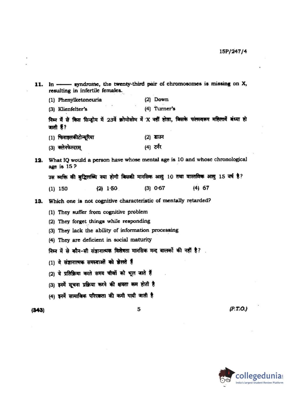 BHU PET 2015 M.Ed. (spl) Question paper with answer key pdf is available for download. The exam was successfully organized by Banaras Hindu University (BHU). The question paper comprised a total of 150 questions.