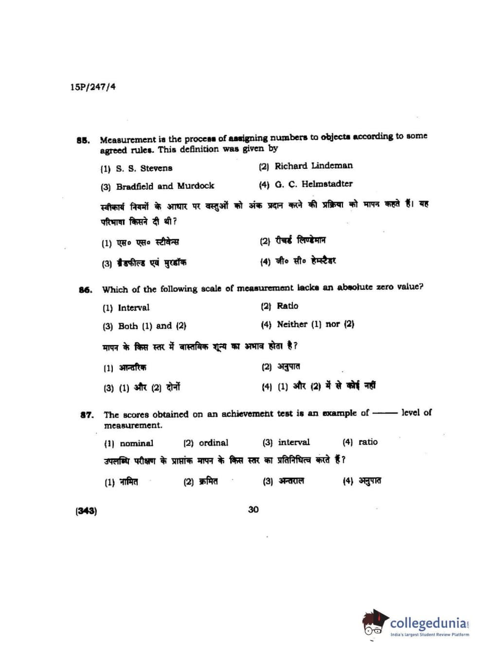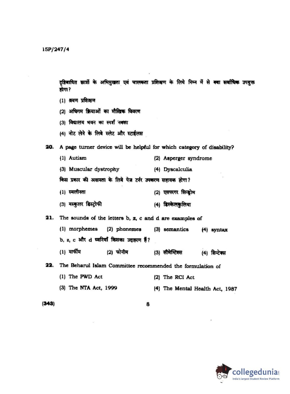 BHU PET 2015 M.Ed. (spl) Question Paper with Answer Key PDFs