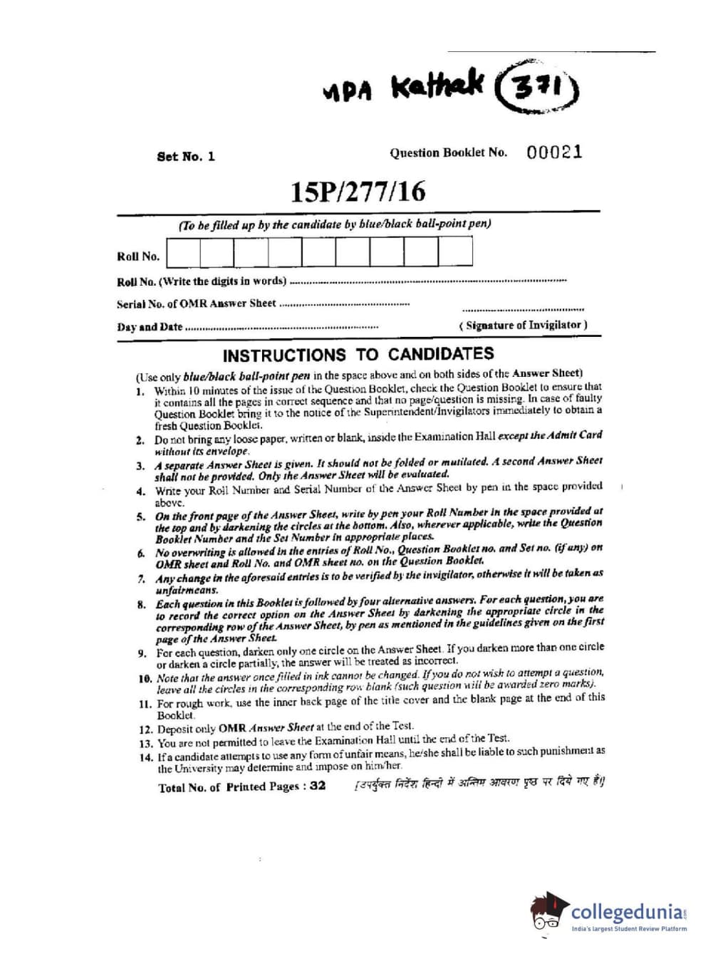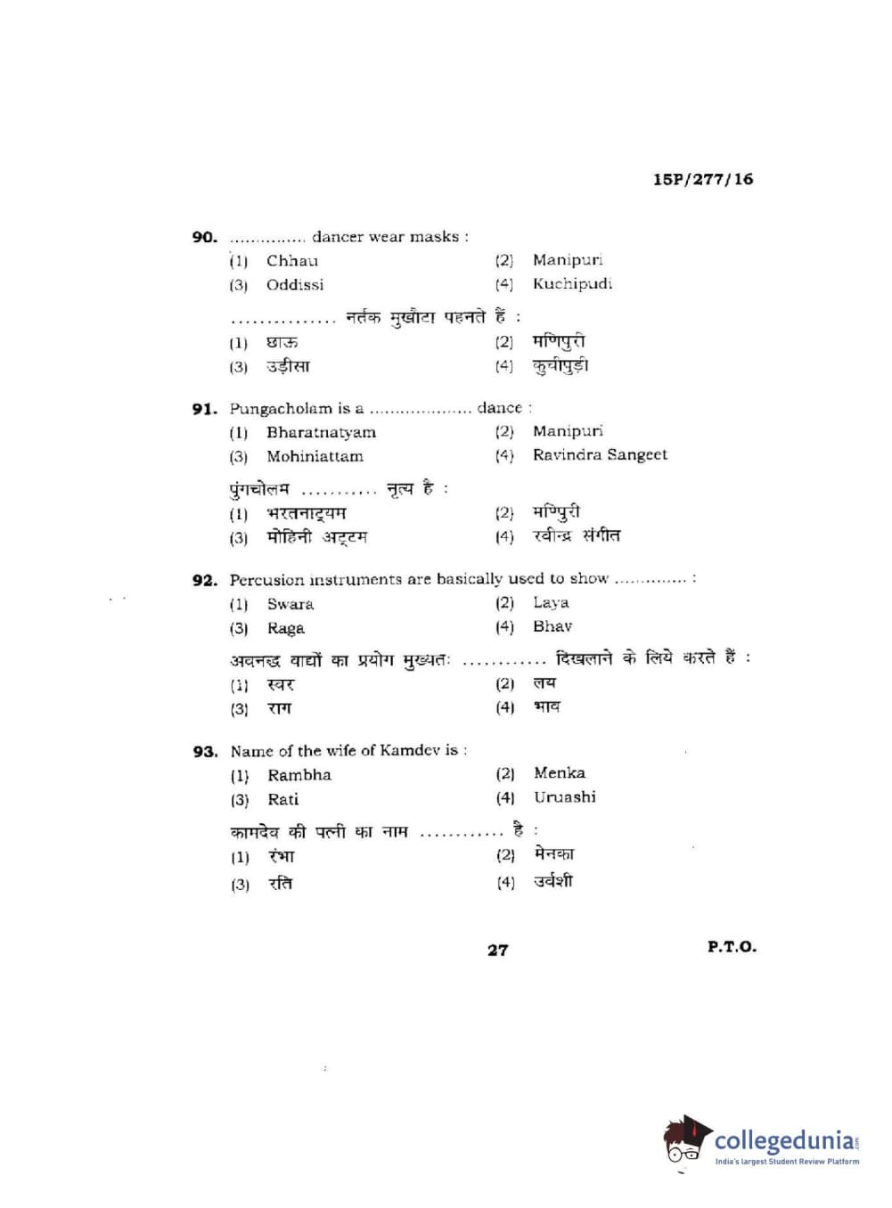 BHU PET 2015 MPA Kathak Question paper with answer key pdf is available for download. The exam was successfully organized by Banaras Hindu University (BHU). The question paper comprised a total of 100 questions.