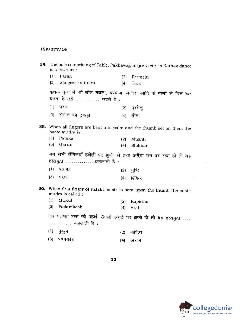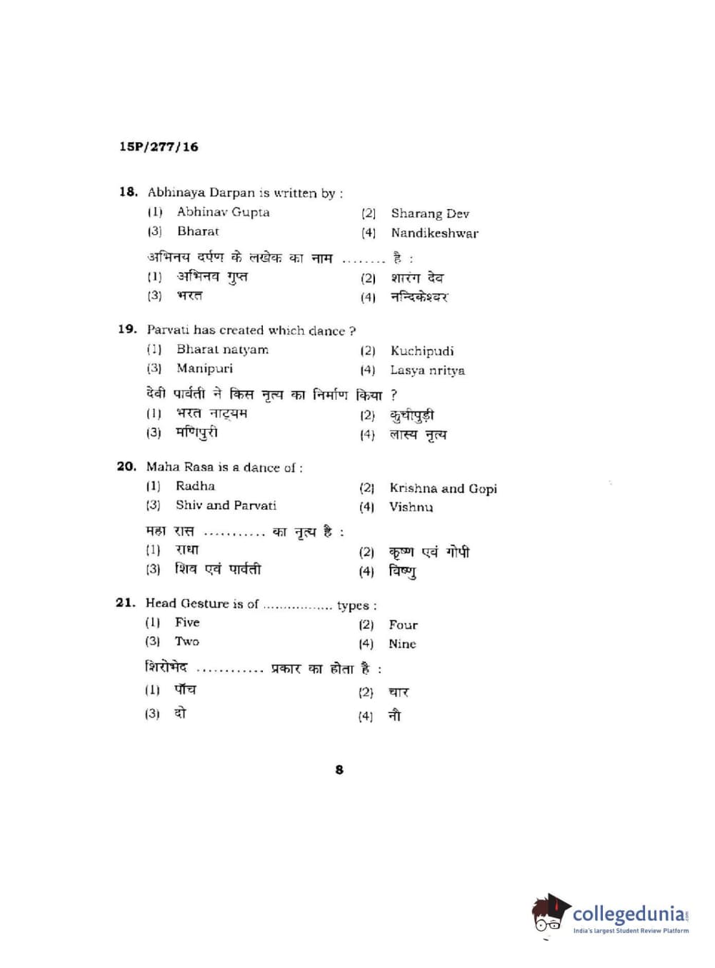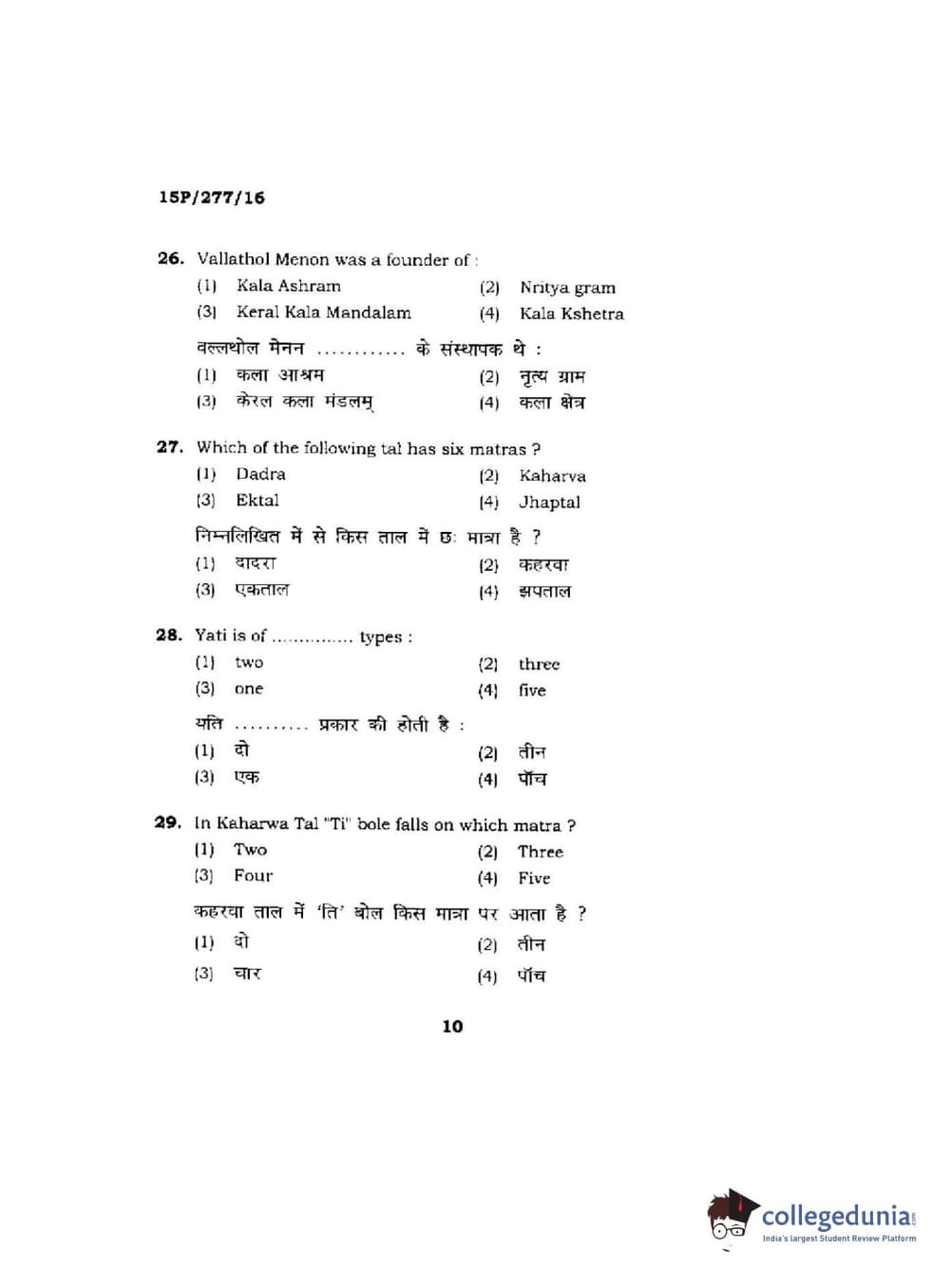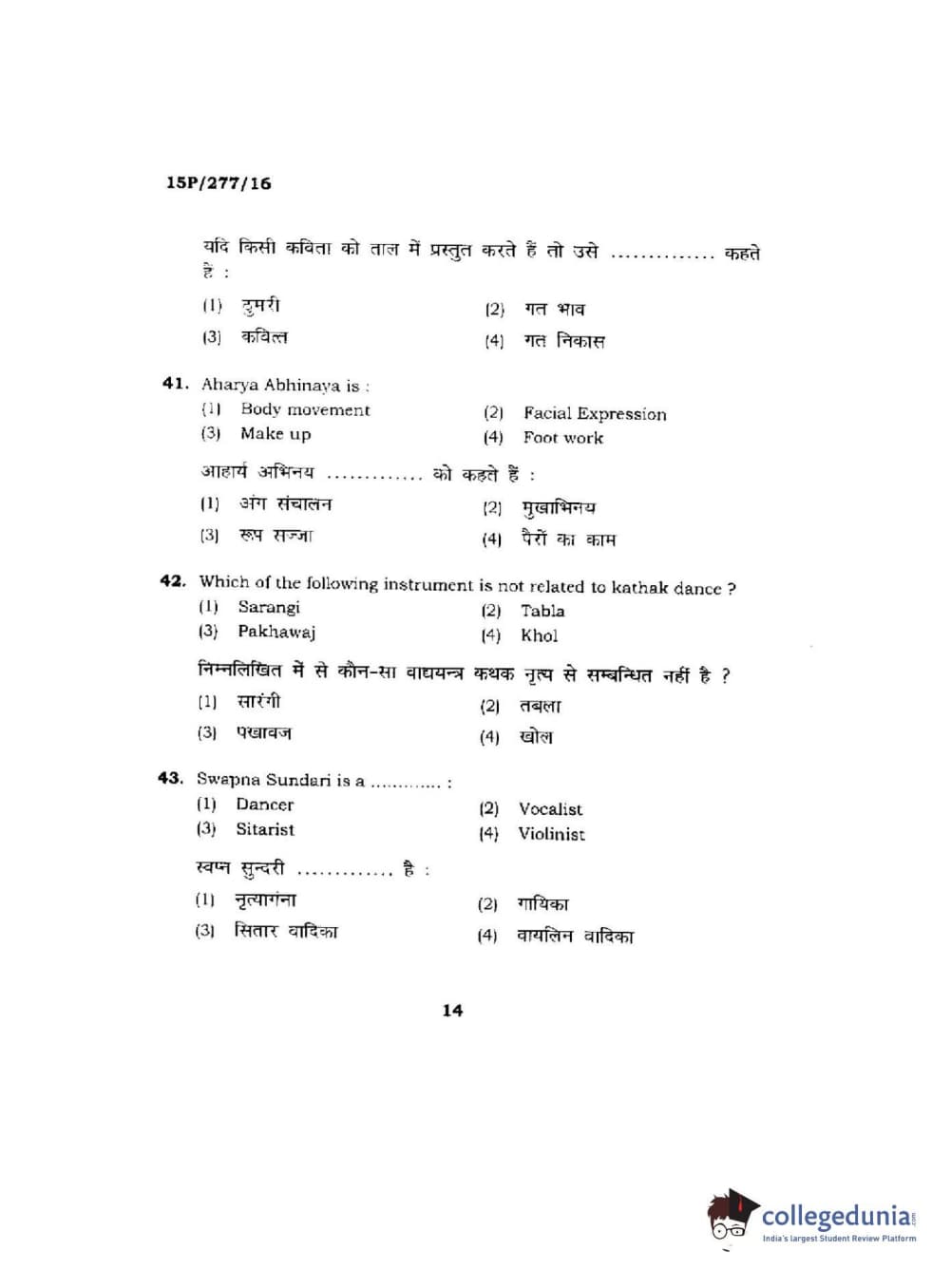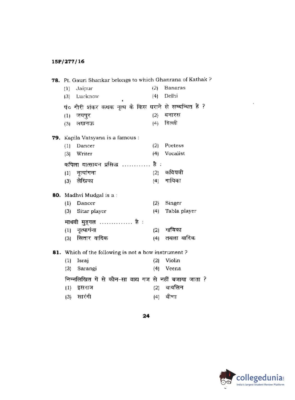 BHU PET 2015 MPA Kathak Question Paper with Answer Key PDFs