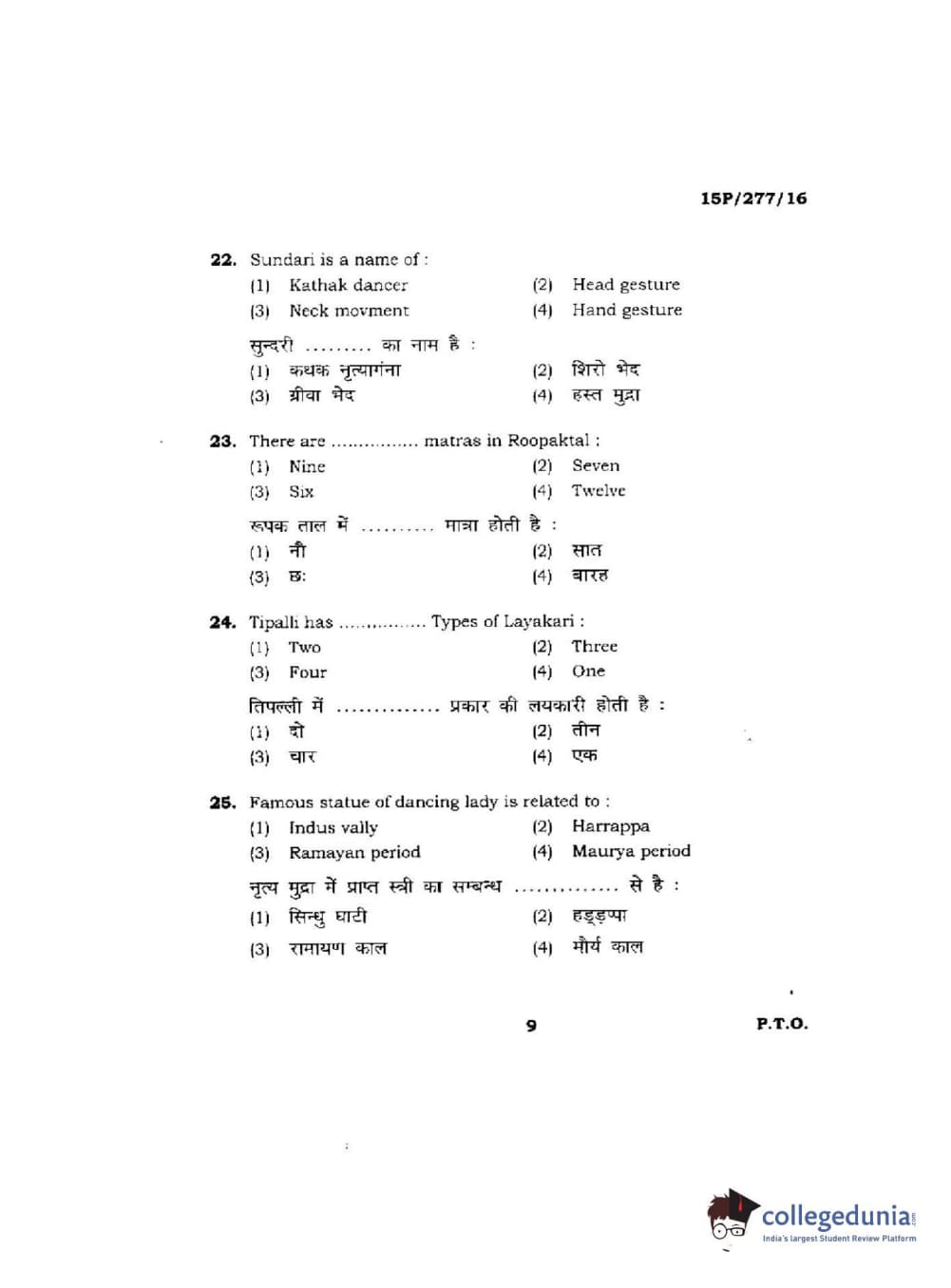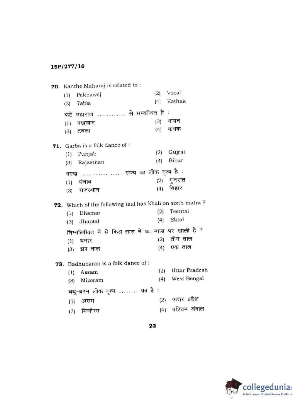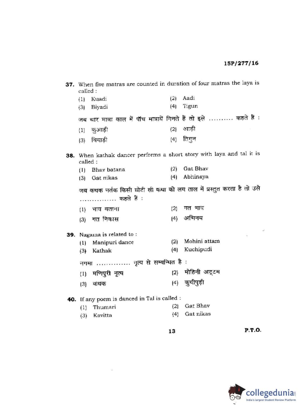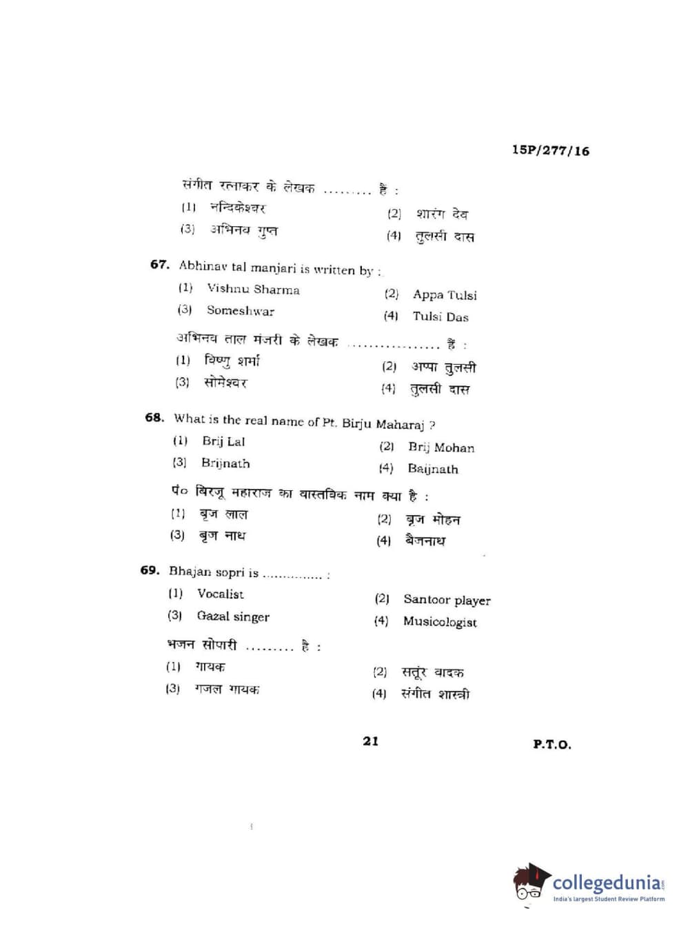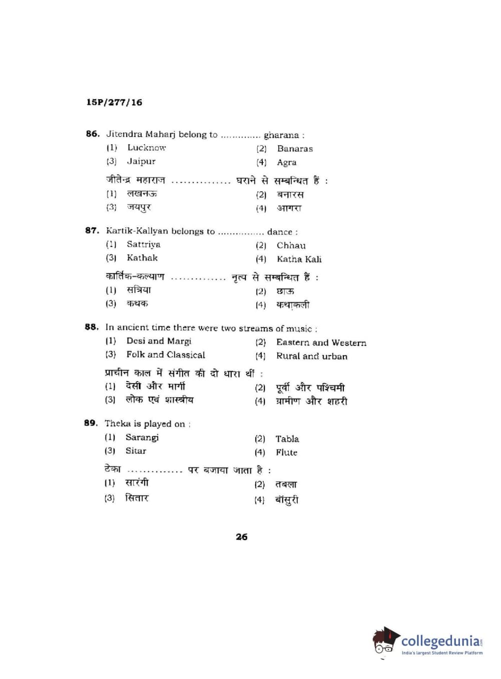 BHU PET 2015 MPA Kathak Question Paper with Answer Key PDFs