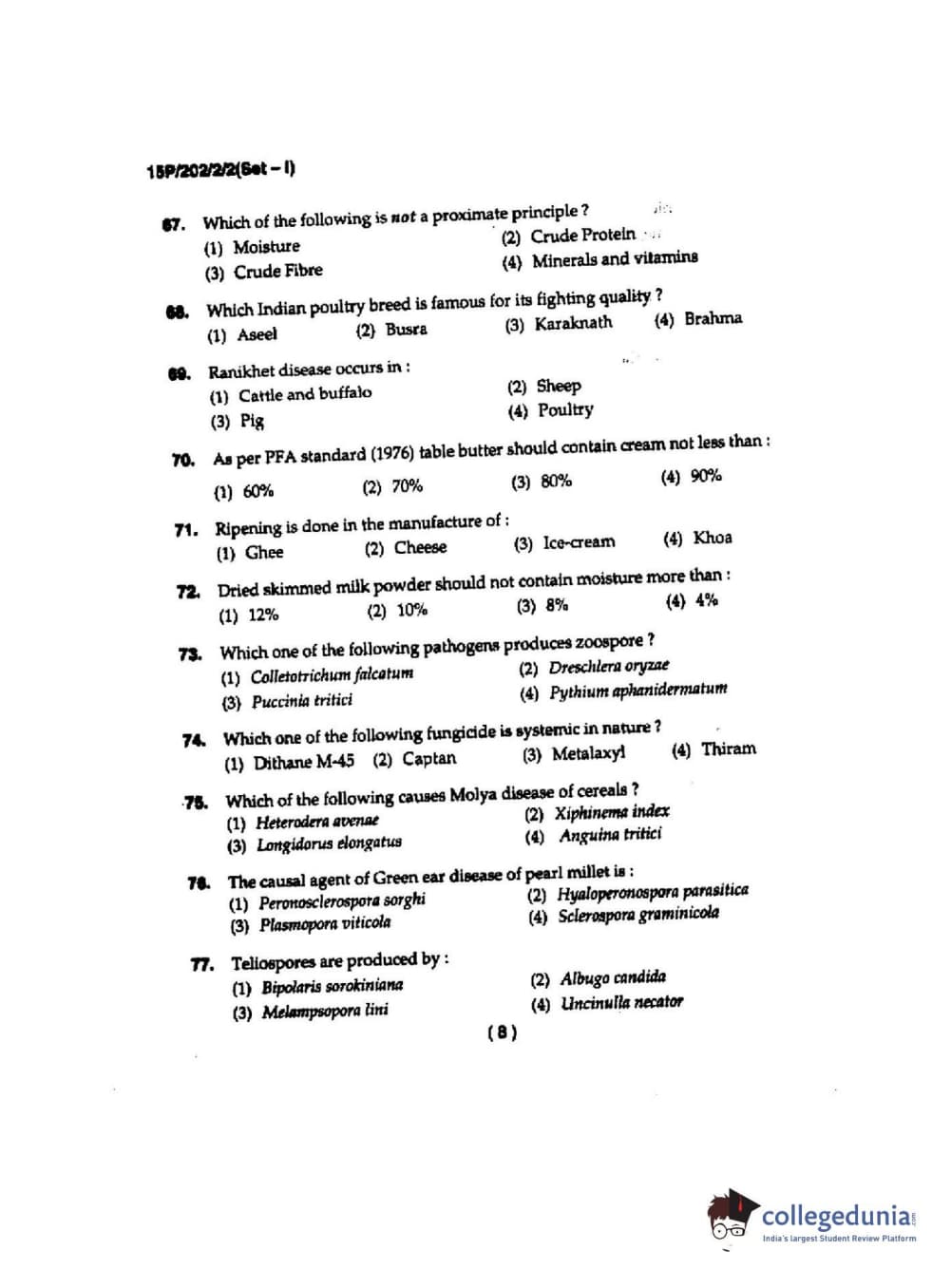 BHU PET 2015 M.Sc (Ag) Question Paper with Answer Key PDFs