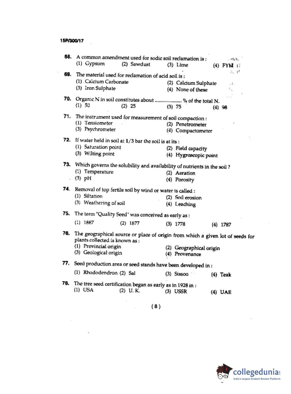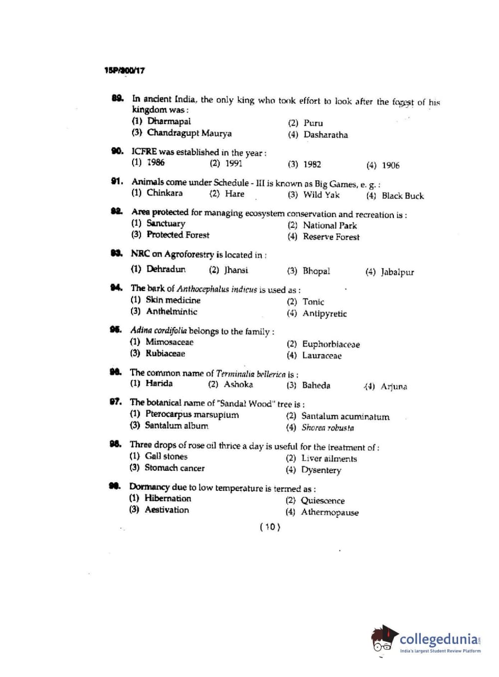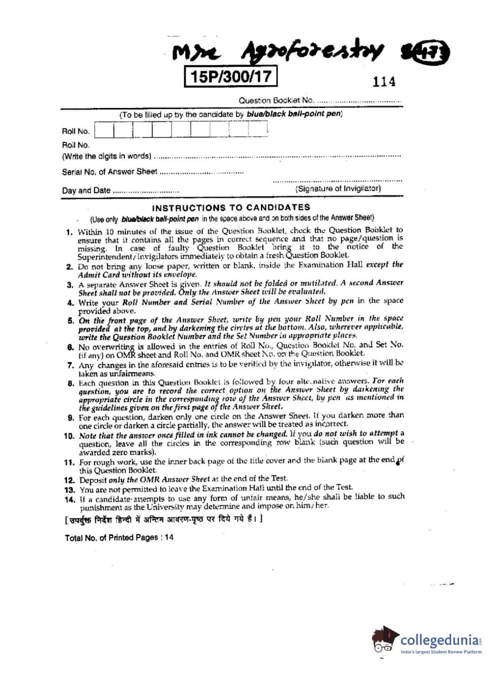 BHU PET 2015 M.Sc AgroForestry Question Paper with Answer Key PDFs