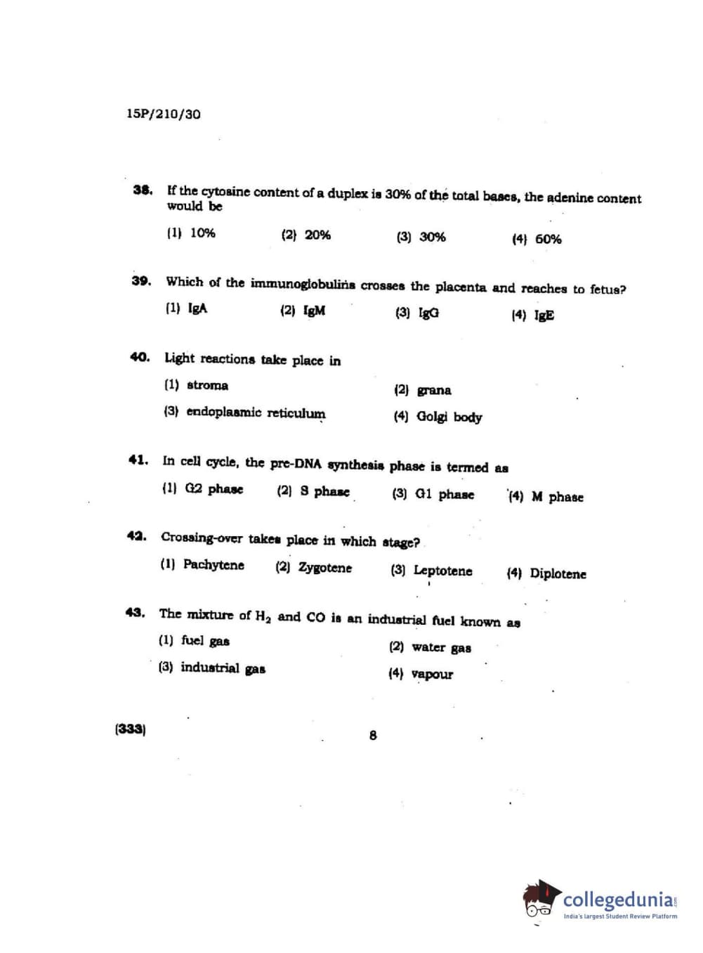 BHU PET 2015 M.Sc Biochemistry Question Paper with Answer Key PDFs