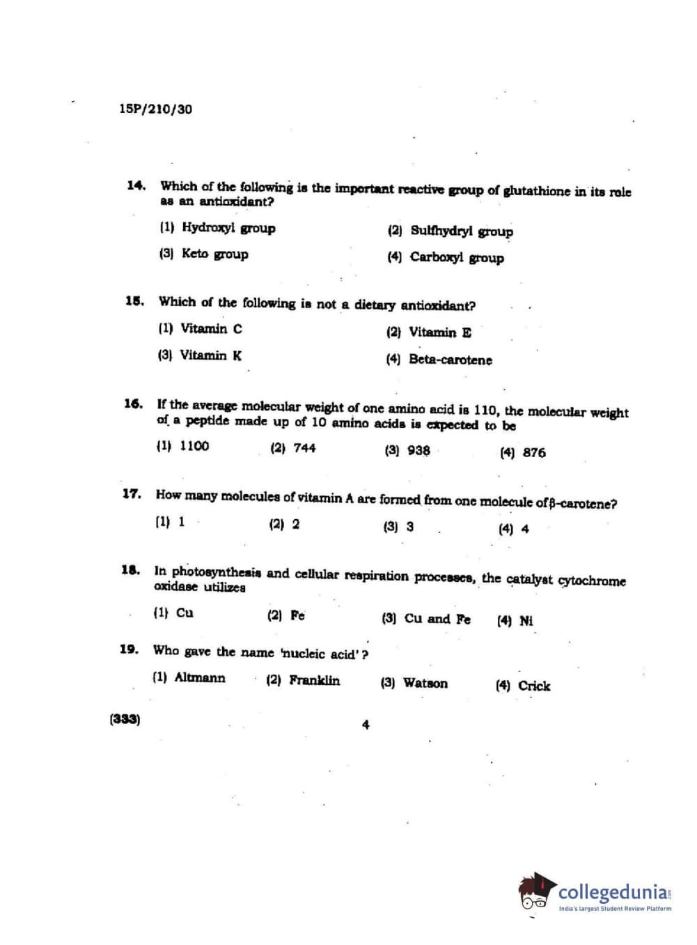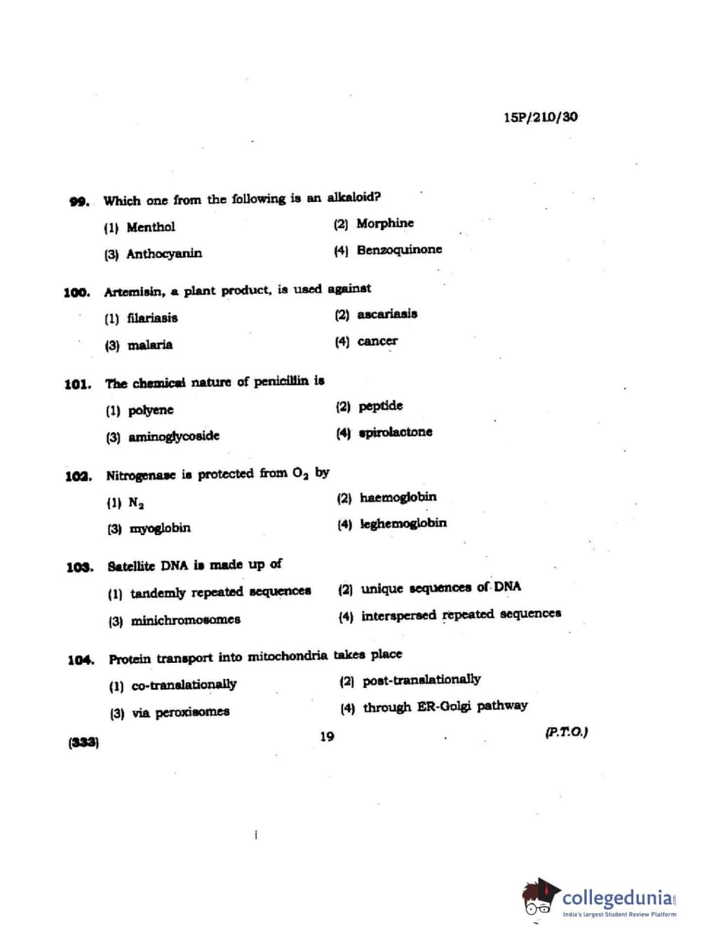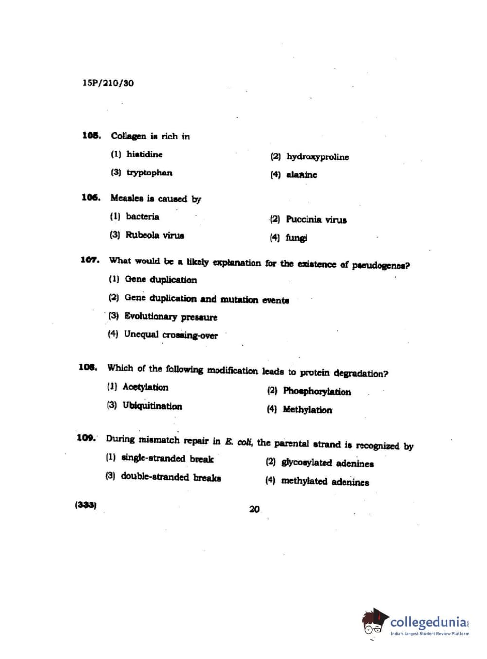 BHU PET 2015 M.Sc Biochemistry Question paper with answer key pdf is available for download. The exam was successfully organized by Banaras Hindu University (BHU). The question paper comprised a total of 150 questions.