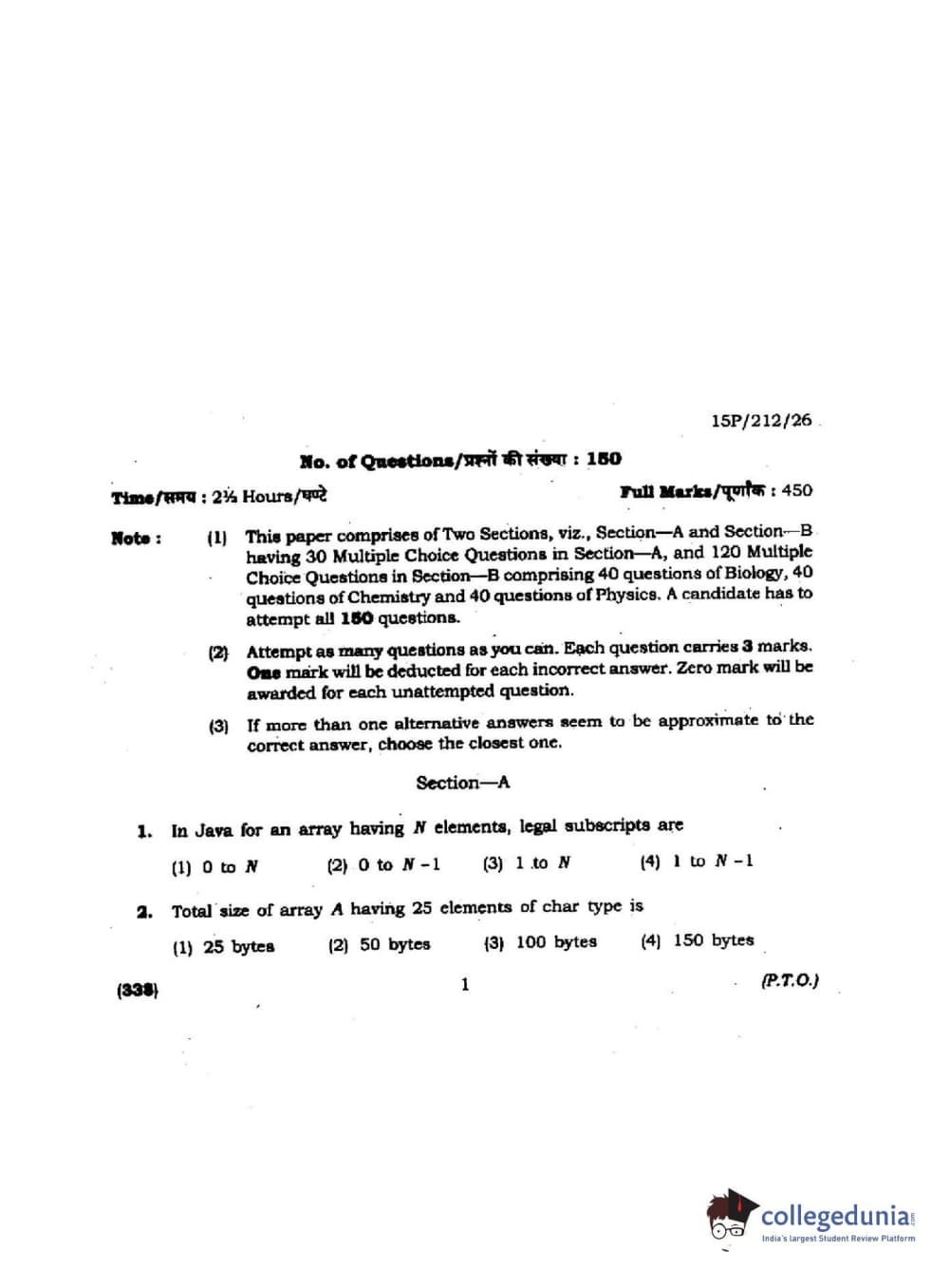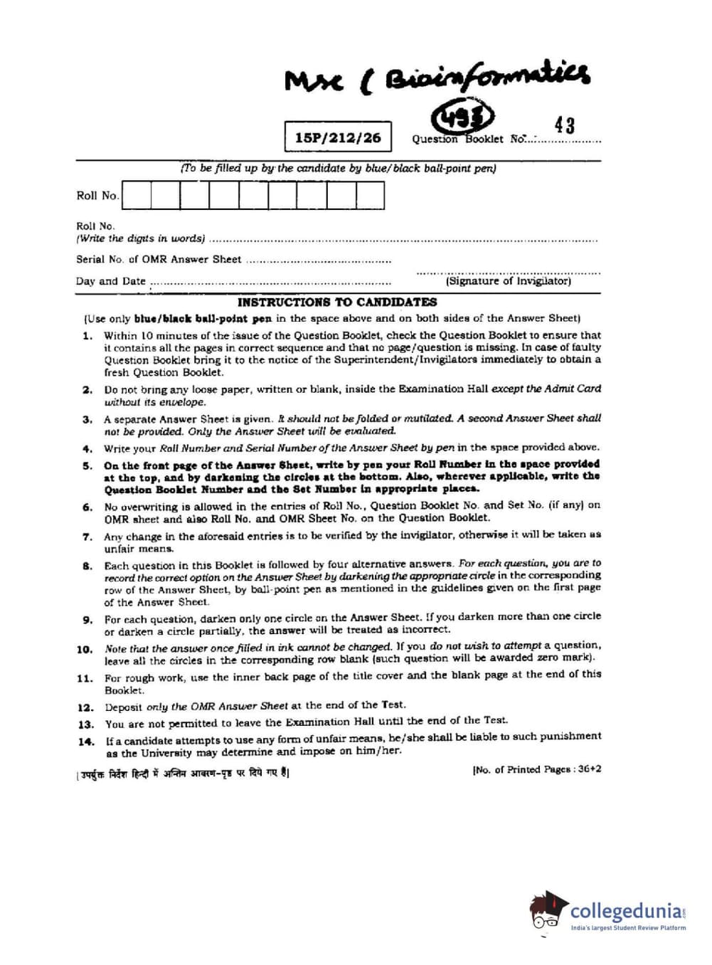 BHU PET 2015 M.Sc. Bioinformatics Question paper with answer key pdf is available for download. The exam was successfully organized by Banaras Hindu University (BHU). The question paper comprised a total of 150 questions.