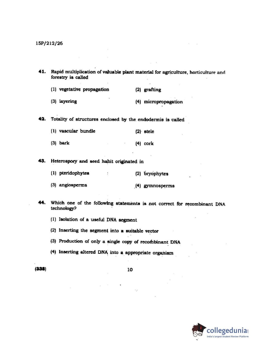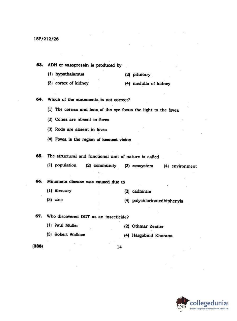 BHU PET 2015 M.Sc. Bioinformatics Question Paper with Answer Key PDFs