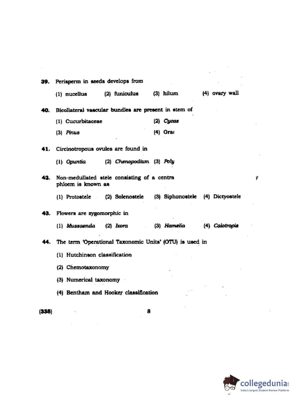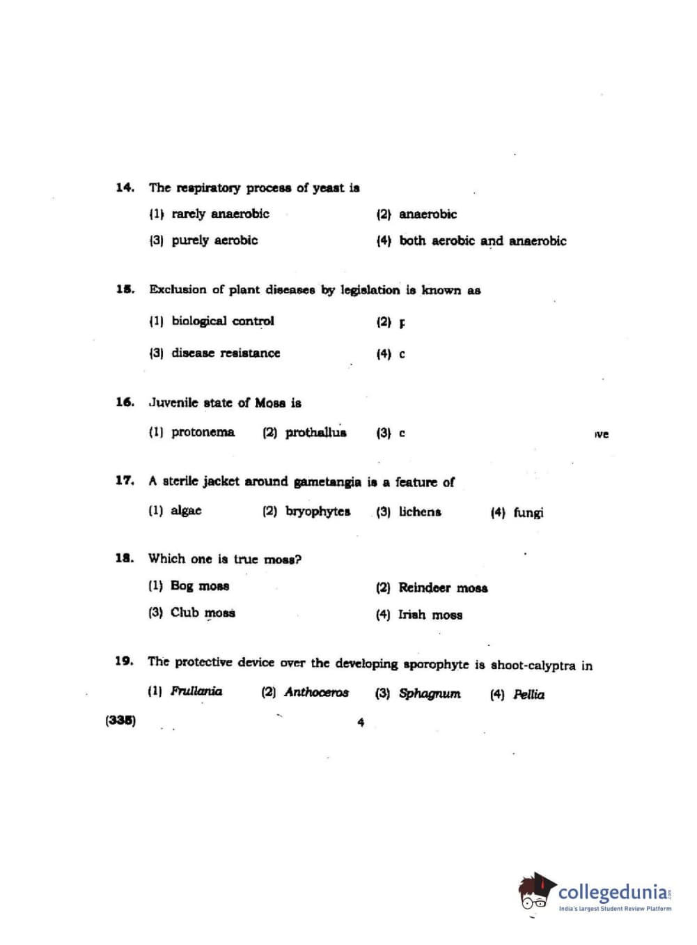BHU PET 2015 M.Sc. Botany Question Paper with Answer Key PDFs