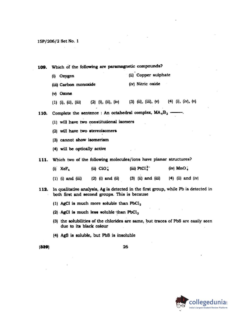 BHU PET 2015 M.sc Chemistry Question Paper with Answer Key PDFs