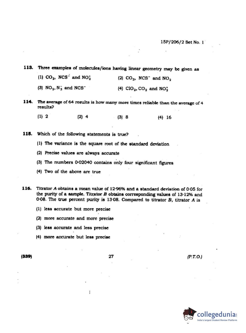 BHU PET 2015 M.sc Chemistry Question paper with answer key pdf is available for download. The exam was successfully organized by Banaras Hindu University (BHU). The question paper comprised a total of 150 questions.
