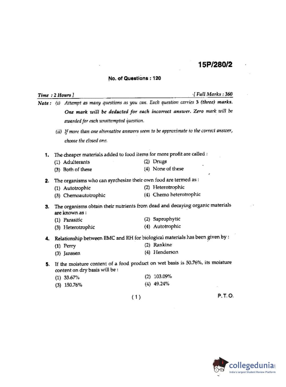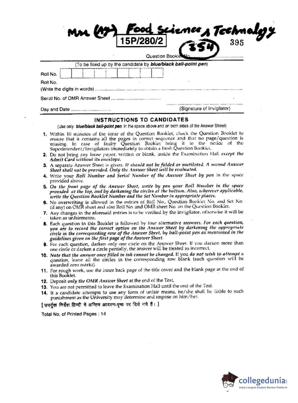 BHU PET 2015 M.Sc Food Science &Technology Question paper with answer key pdf is available for download. The exam was successfully organized by Banaras Hindu University (BHU). The question paper comprised a total of 120 questions.