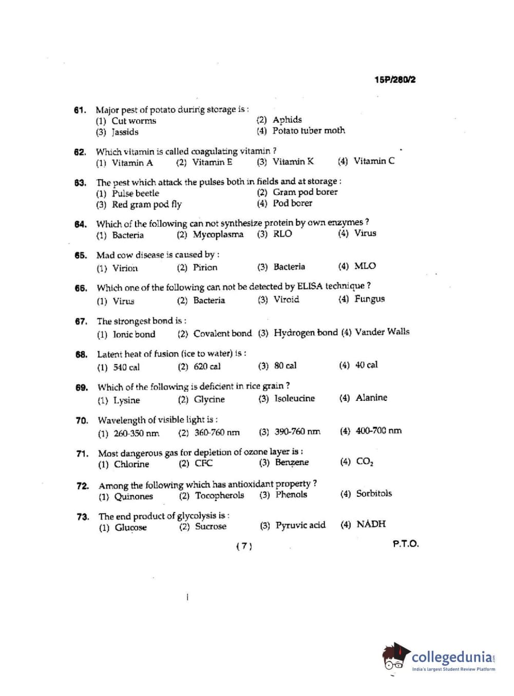 | BHU PET 2015 M.Sc Food Science &Technology Question Paper PDF | BHU PET 2015 M.Sc Food Science &Technology Answer Key PDF |