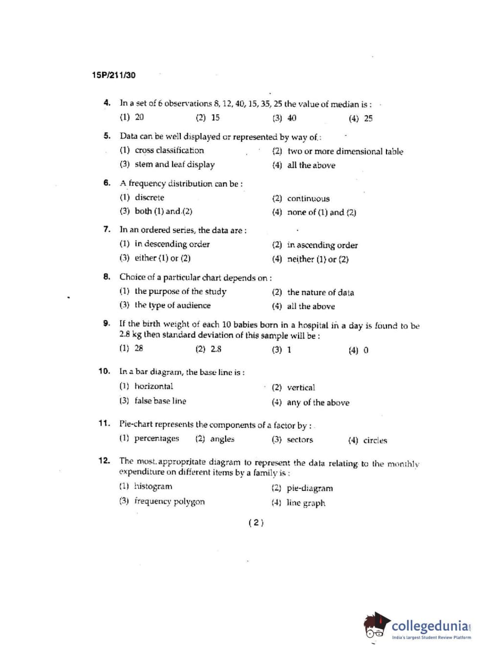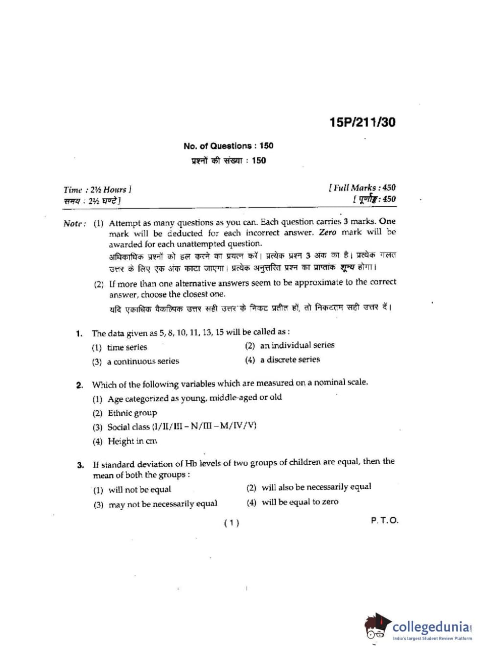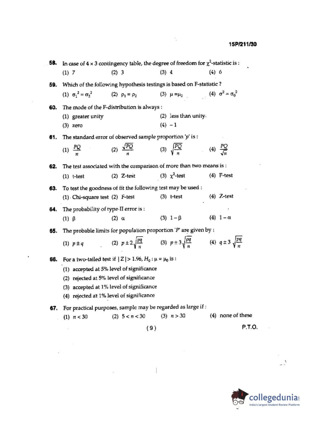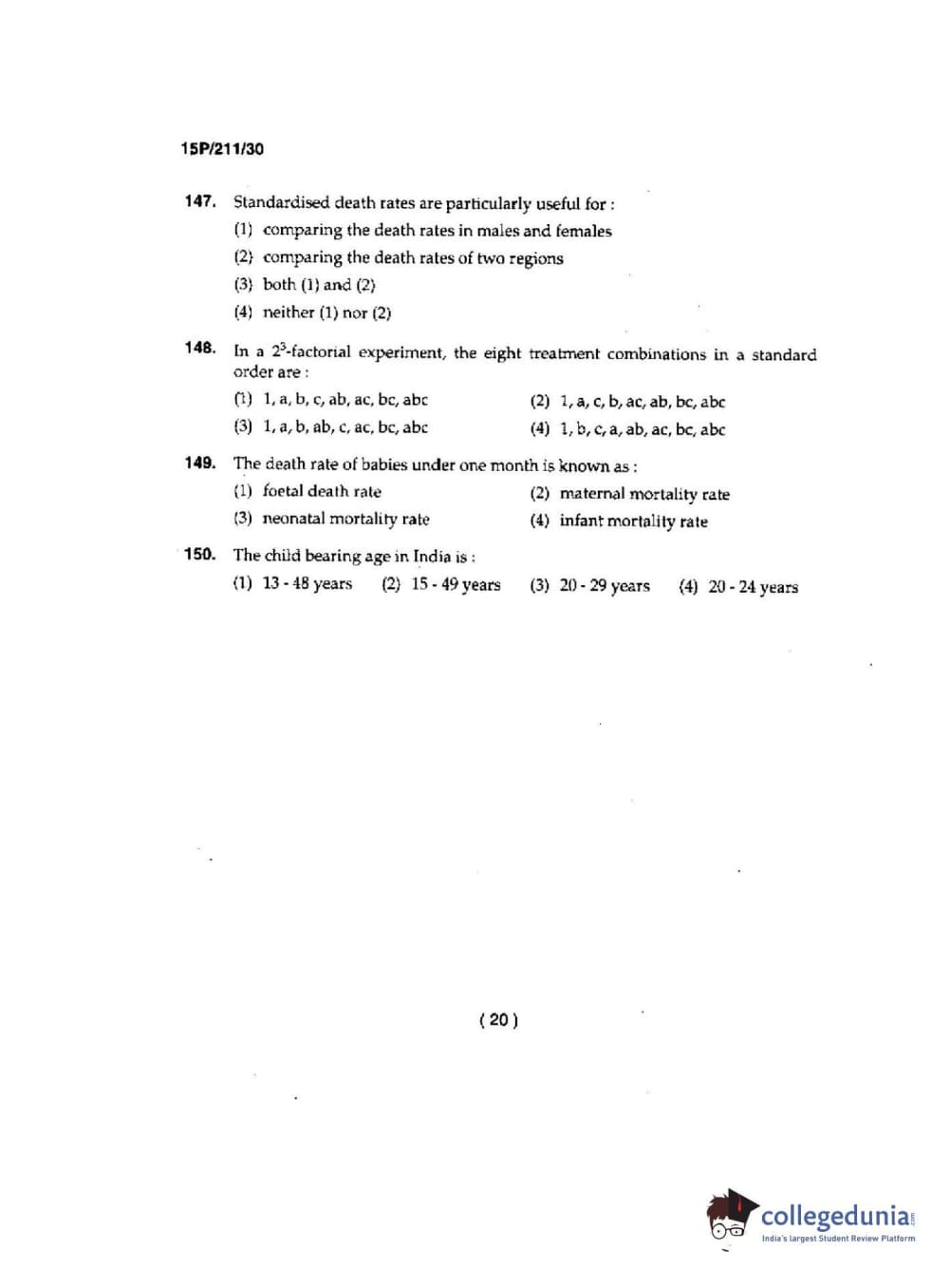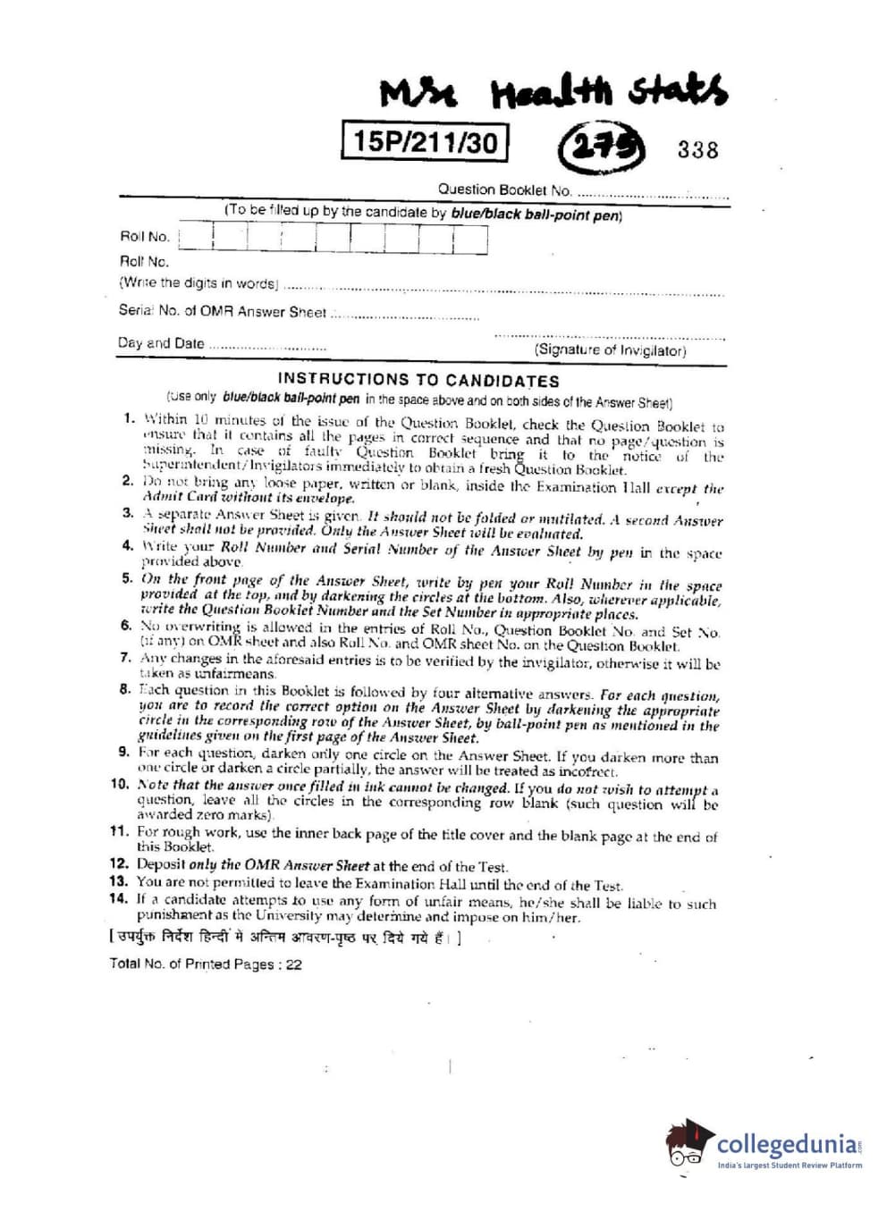 BHU PET 2015 M.Sc. Health Statistics Question paper with answer key pdf is available for download. The exam was successfully organized by Banaras Hindu University (BHU). The question paper comprised a total of 150 questions.