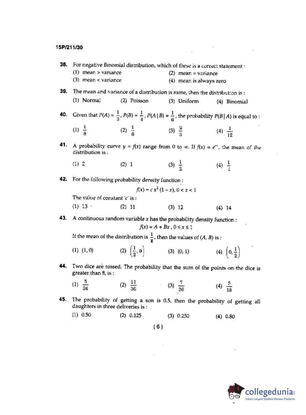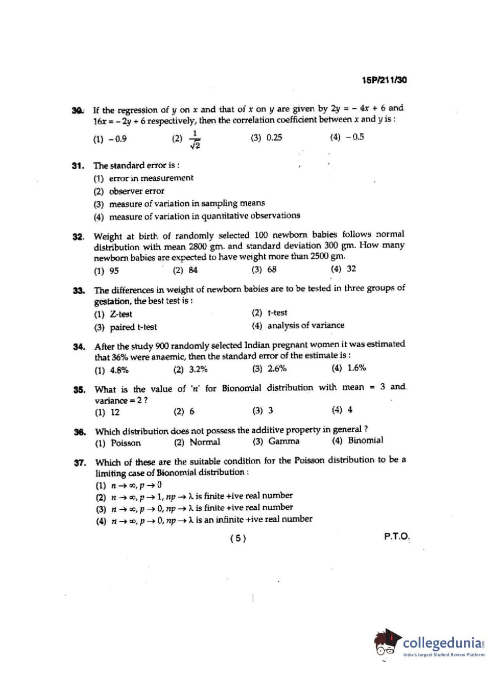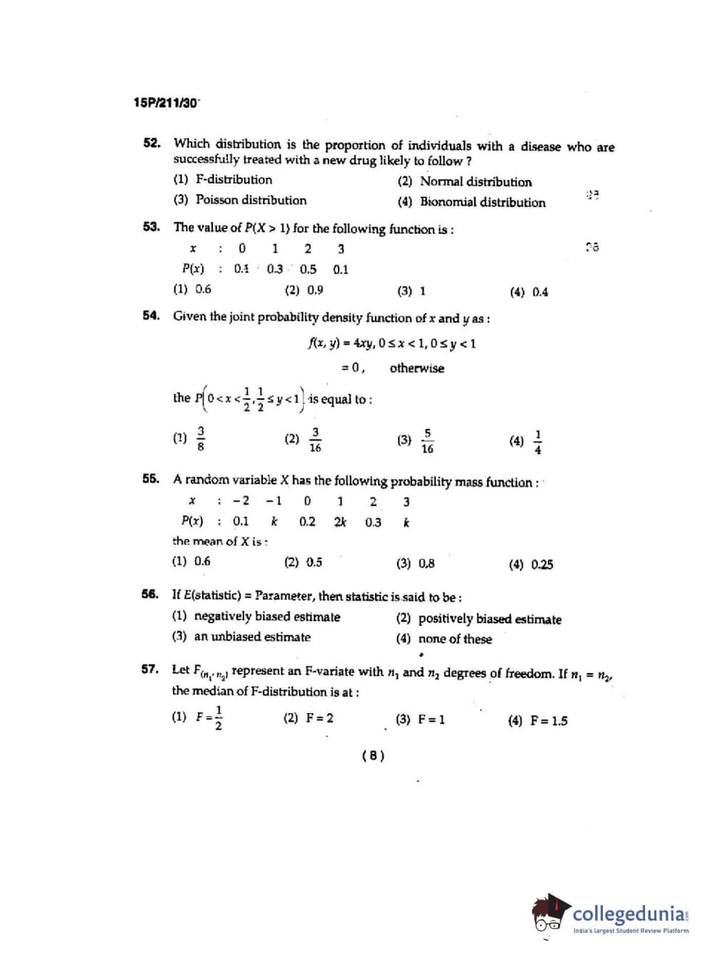 BHU PET 2015 M.Sc. Health Statistics Question Paper with Answer Key PDFs