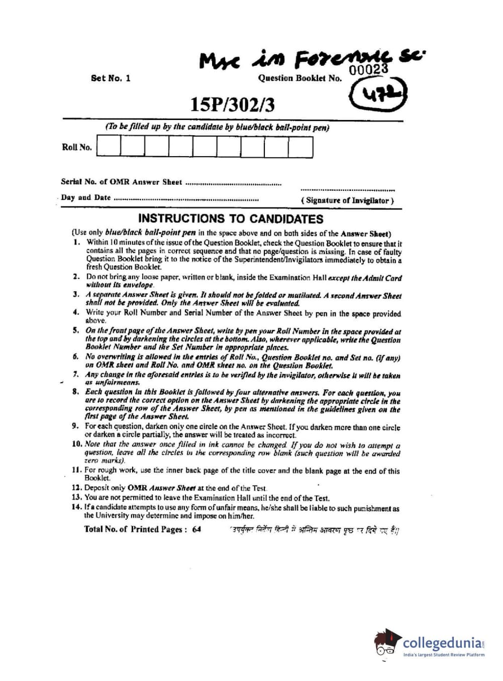 | BHU PET 2015 M.Sc. in Forensic Science Question Paper PDF | BHU PET 2015 M.Sc. in Forensic Science Answer Key PDF |