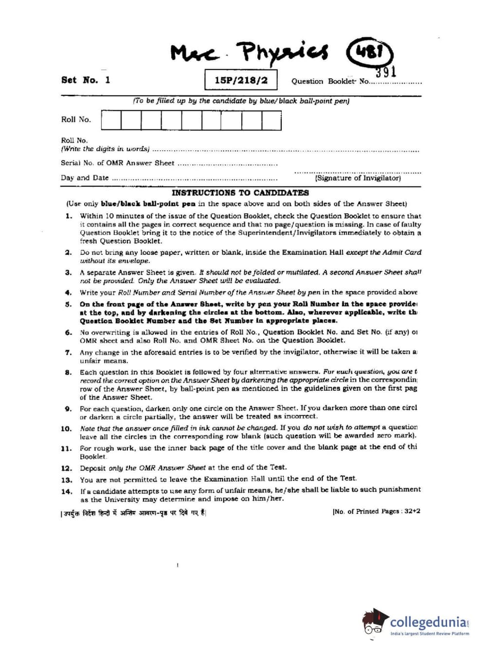 | BHU PET 2015 M.Sc.Physics Question Paper PDF | BHU PET 2015 M.Sc.Physics Answer Key PDF |
