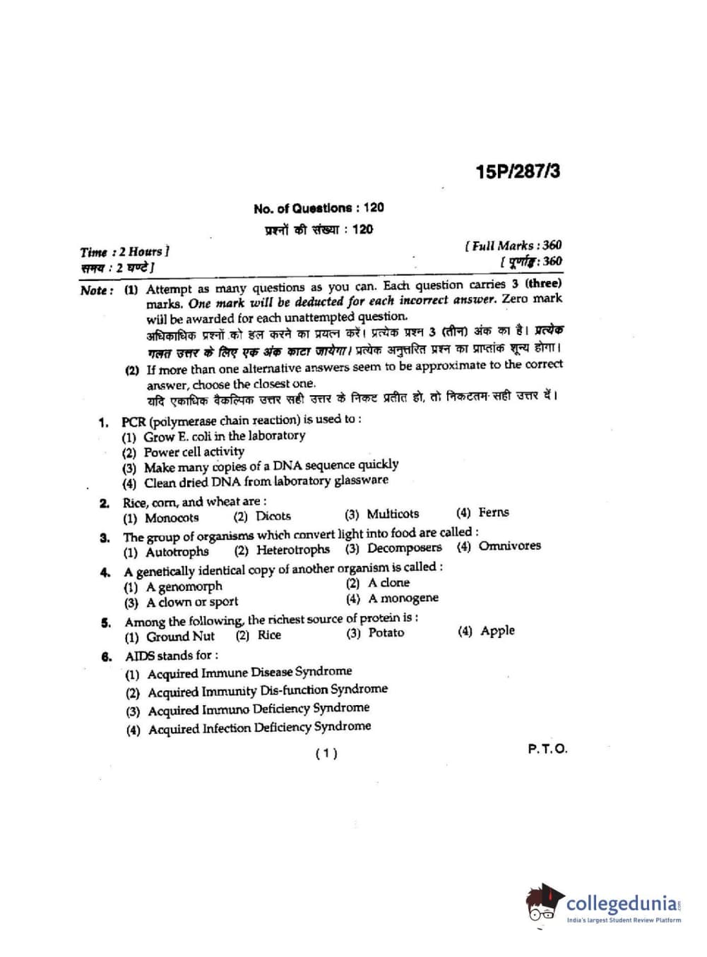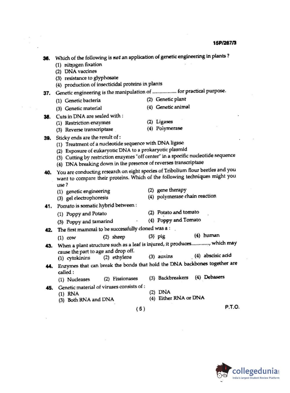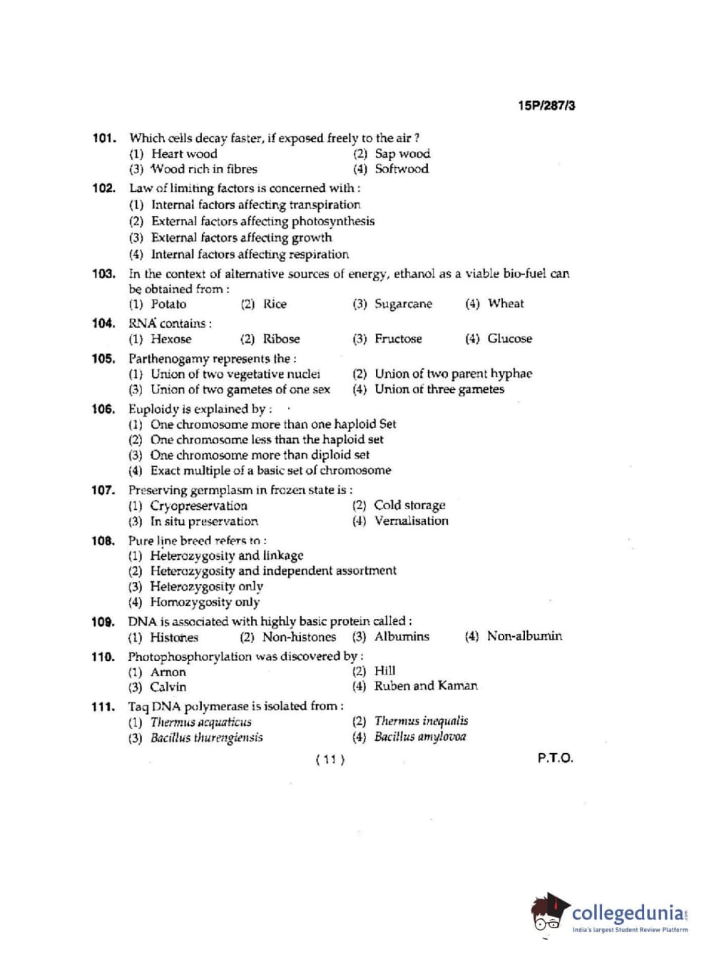 | BHU PET 2015 M.Sc. Plant Biotechnology Question Paper PDF | BHU PET 2015 M.Sc. Plant Biotechnology Answer Key PDF |