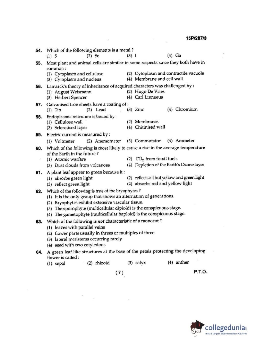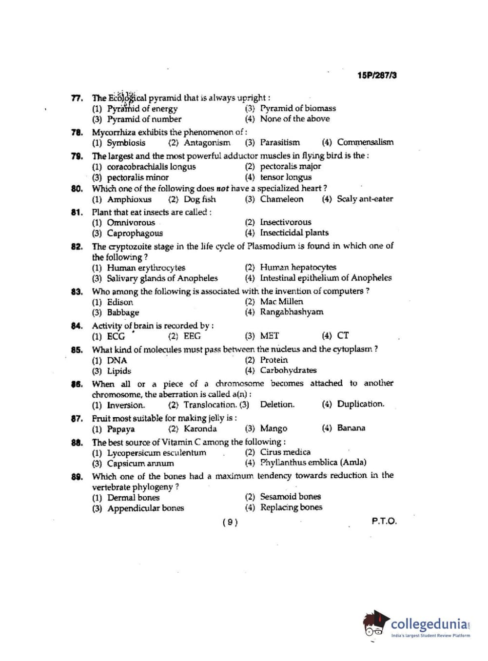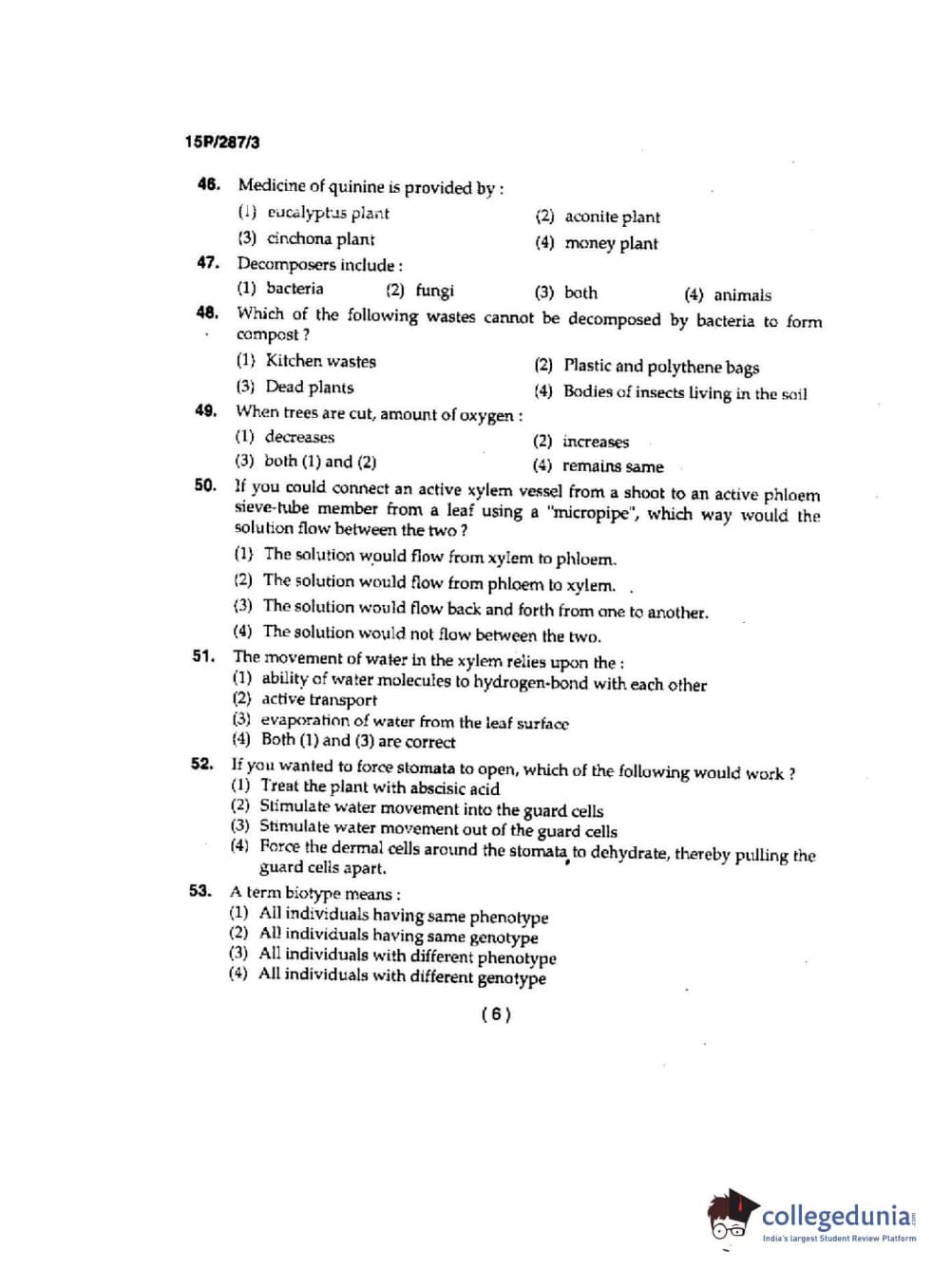 | BHU PET 2015 M.Sc. Plant Biotechnology Question Paper PDF | BHU PET 2015 M.Sc. Plant Biotechnology Answer Key PDF |