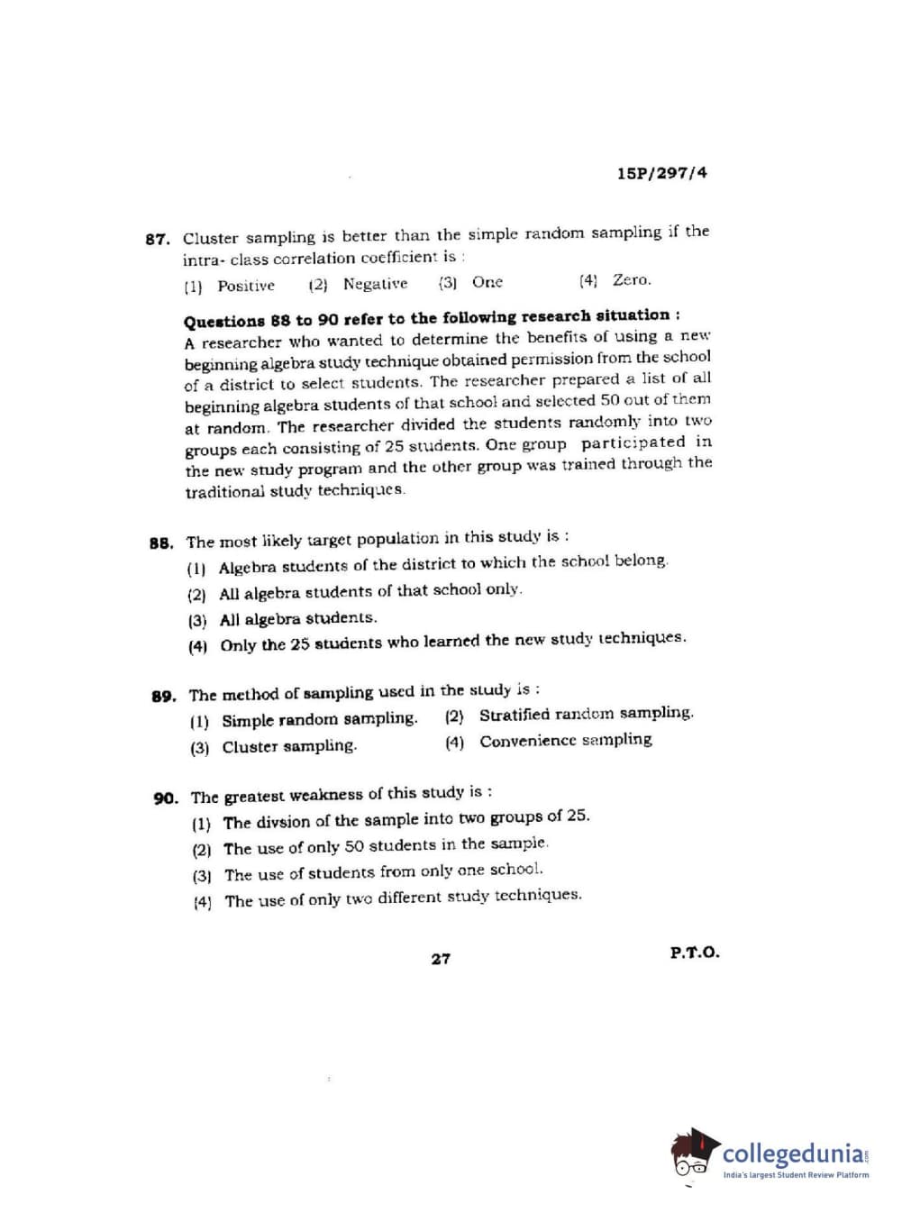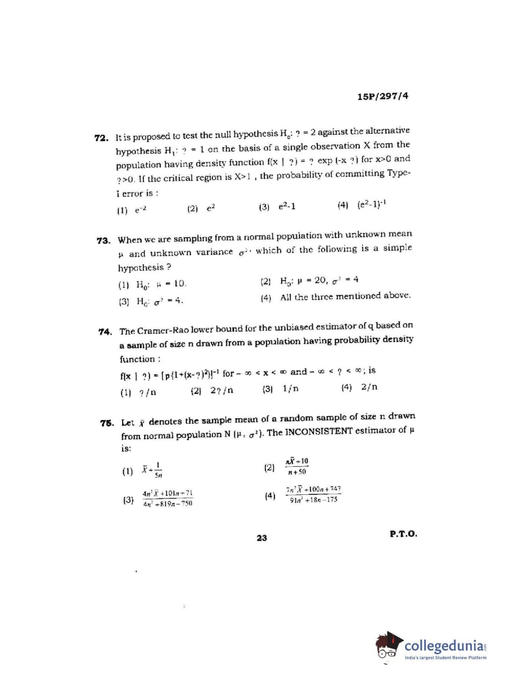 BHU PET 2015 M.Sc. Stat & Commpution Question paper with answer key pdf is available for download. The exam was successfully organized by Banaras Hindu University (BHU). The question paper comprised a total of 150 questions.