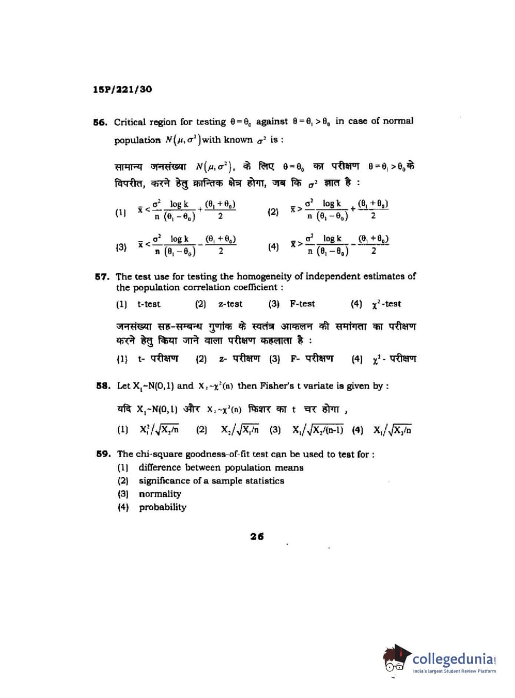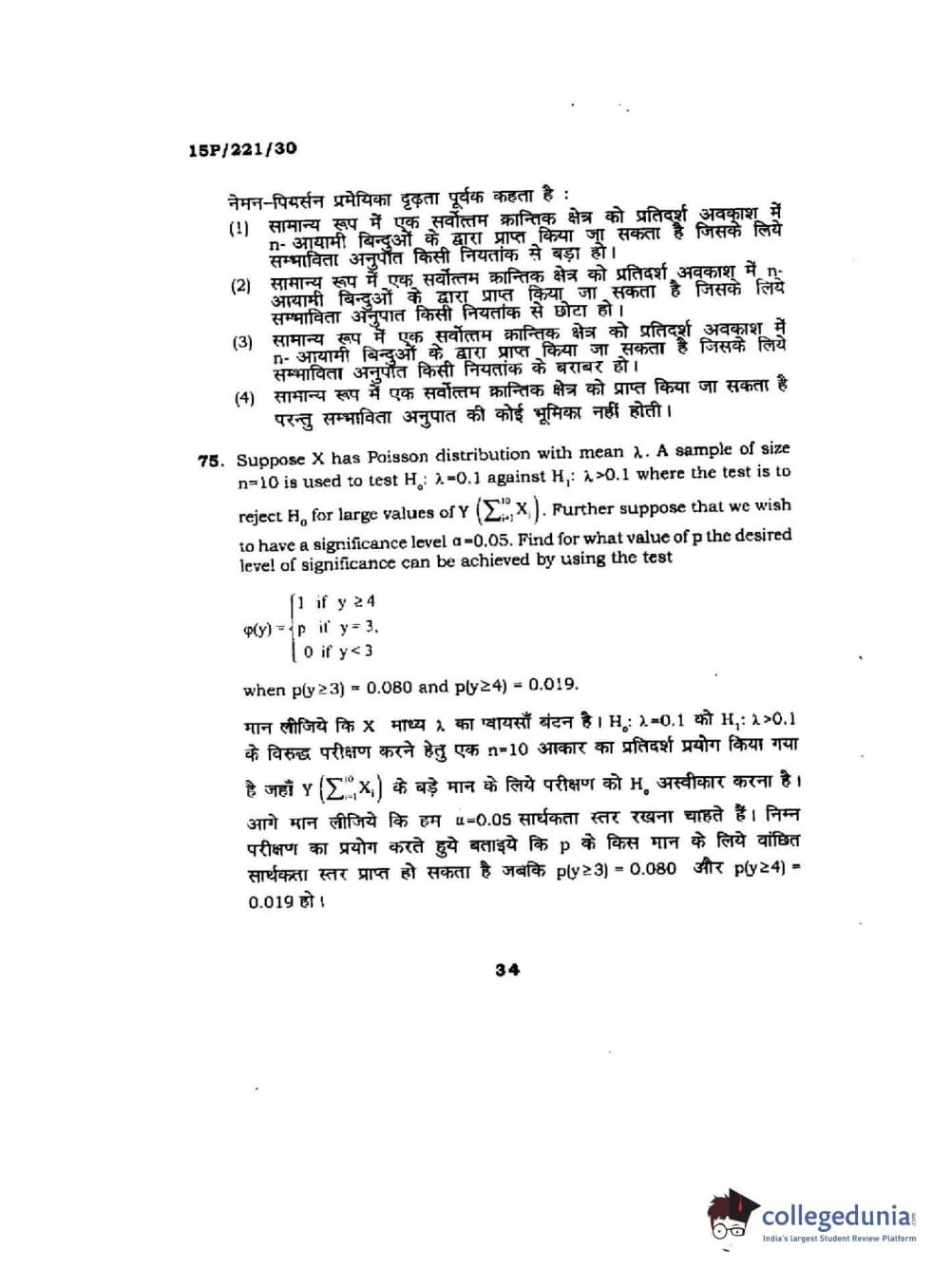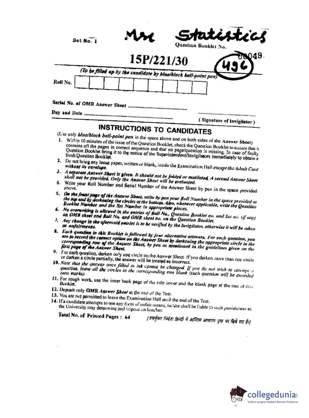 | BHU PET 2015 M.Sc. Statistics Question Paper PDF | BHU PET 2015 M.Sc. Statistics Answer Key PDF |