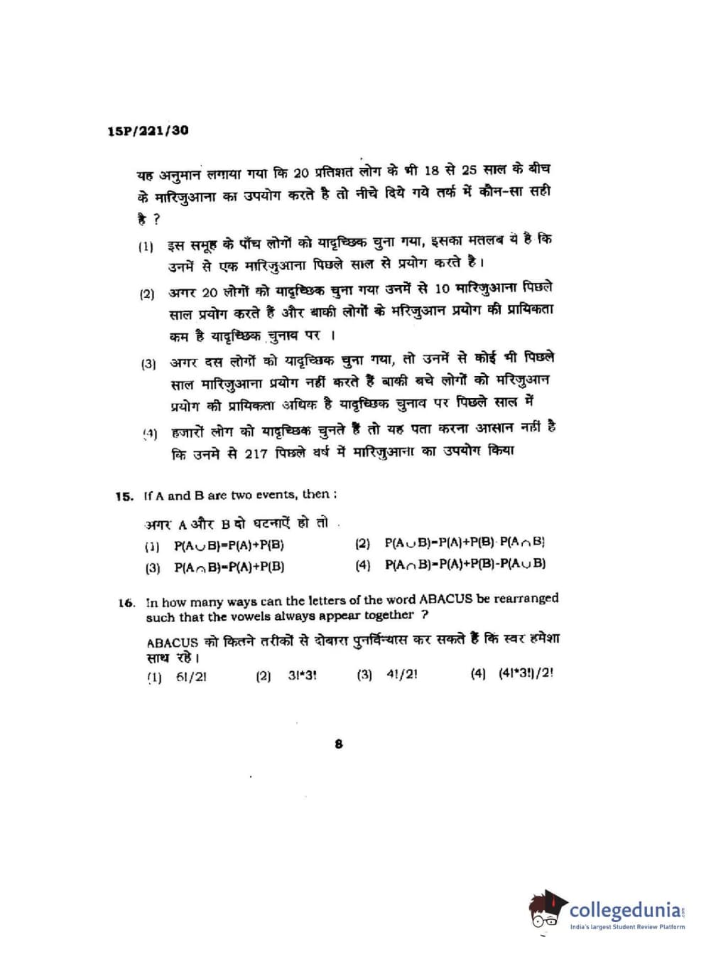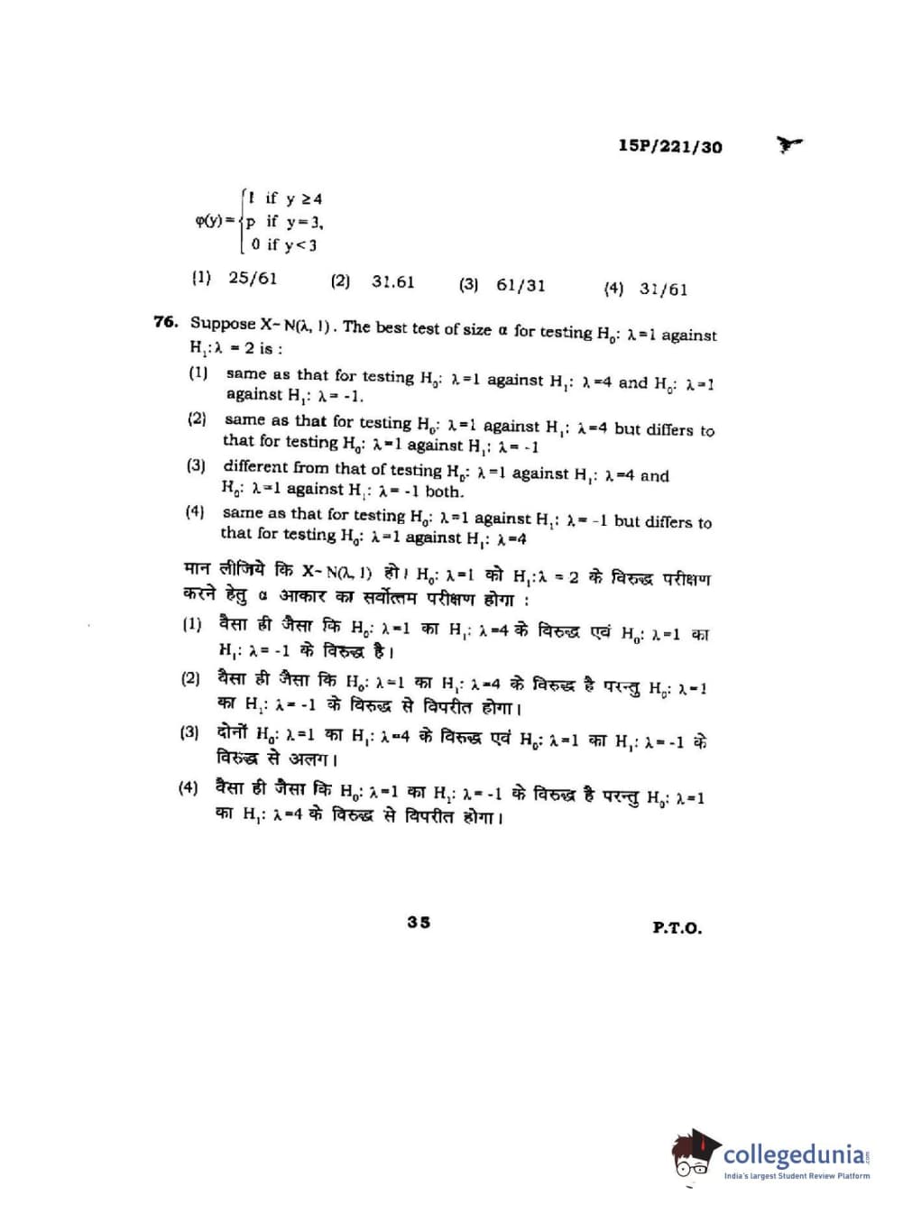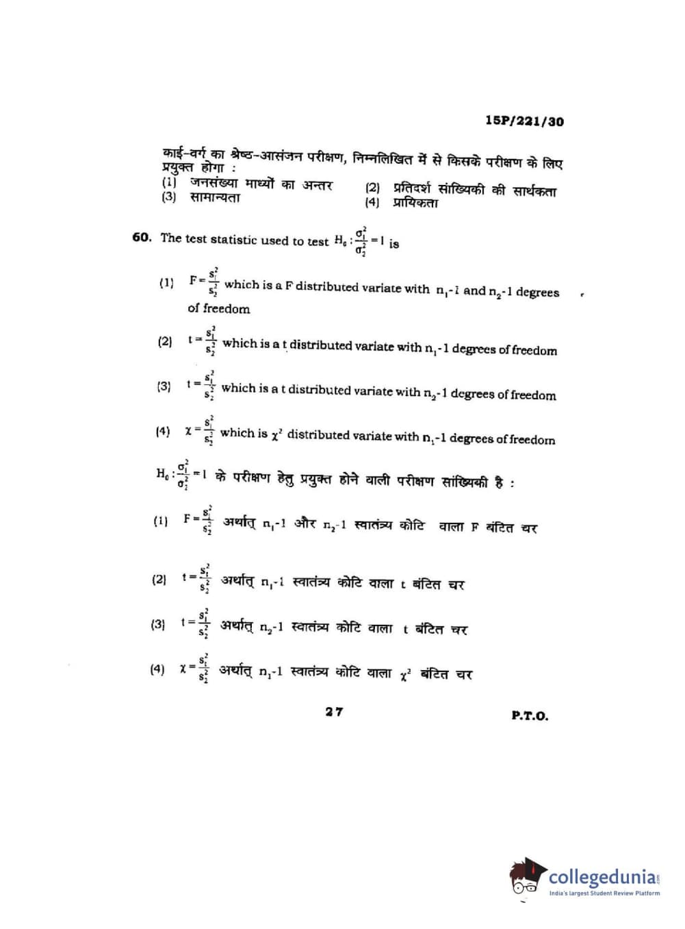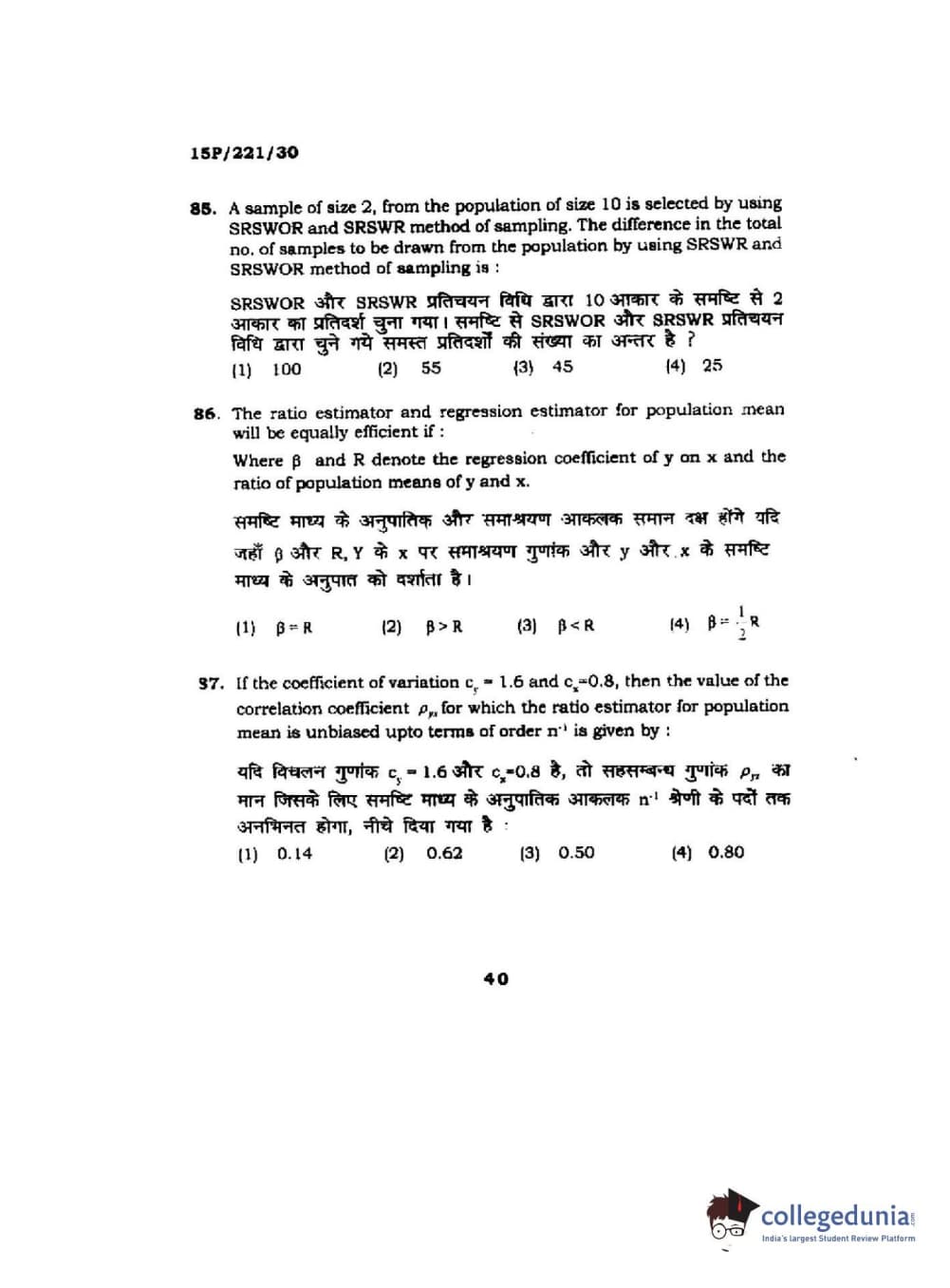 | BHU PET 2015 M.Sc. Statistics Question Paper PDF | BHU PET 2015 M.Sc. Statistics Answer Key PDF |