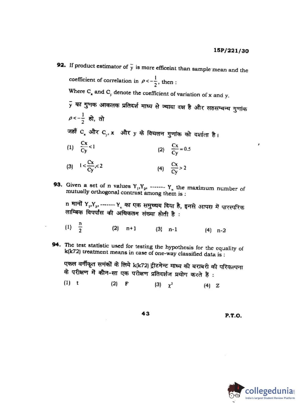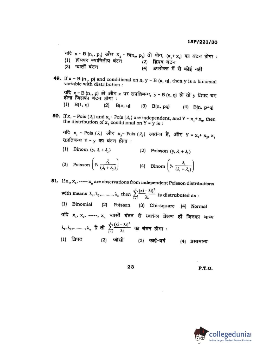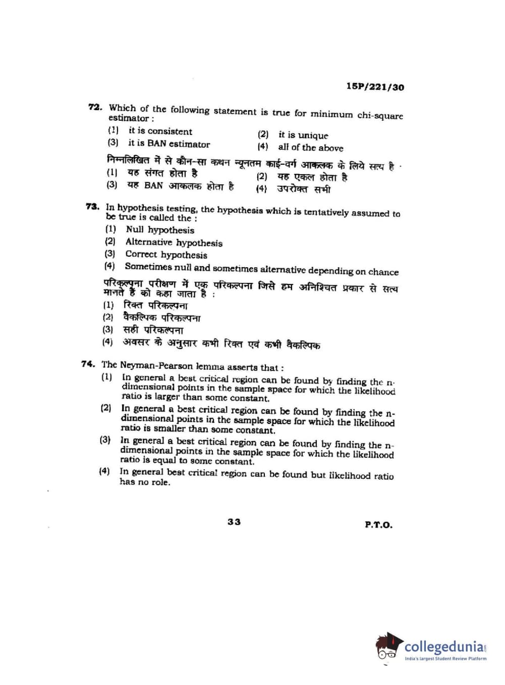 BHU PET 2015 M.Sc. Statistics Question paper with answer key pdf is available for download. The exam was successfully organized by Banaras Hindu University (BHU). The question paper comprised a total of 150 questions.