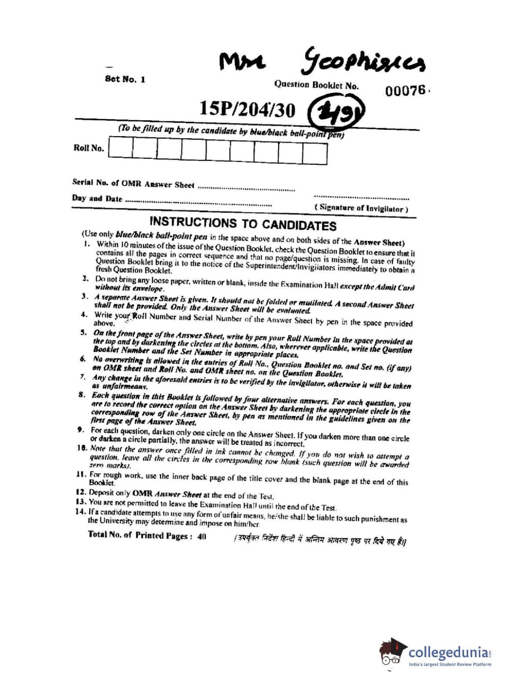 BHU PET 2015 M.Sc (Tech) Geophysics Question paper with answer key pdf is available for download. The exam was successfully organized by Banaras Hindu University (BHU). The question paper comprised a total of 150 questions.