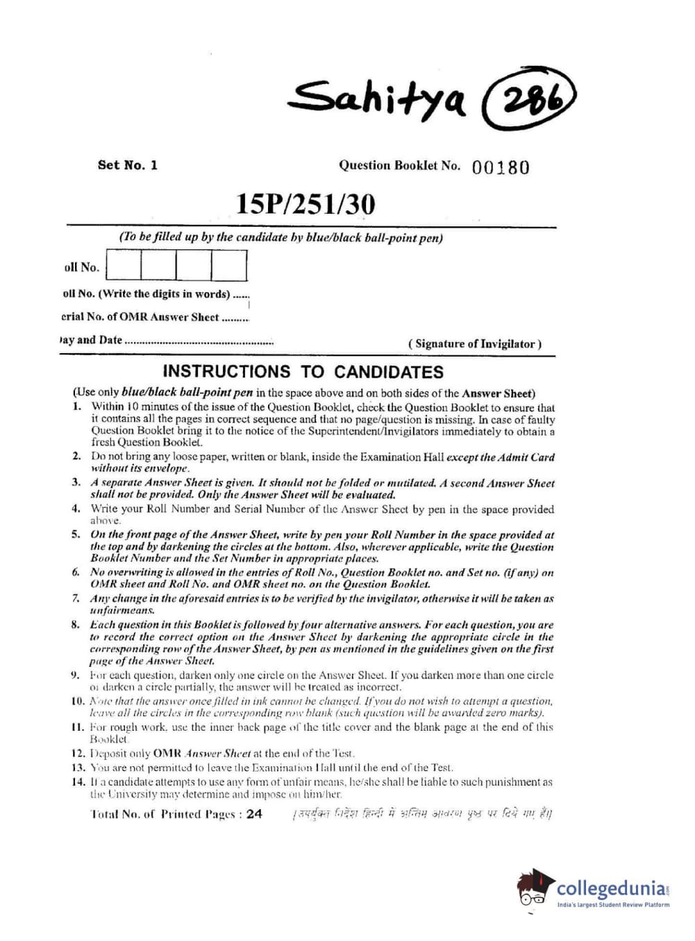 BHU PET 2015 SAHITYA Question paper with answer key pdf is available for download. The exam was successfully organized by Banaras Hindu University (BHU). The question paper comprised a total of 150 questions.